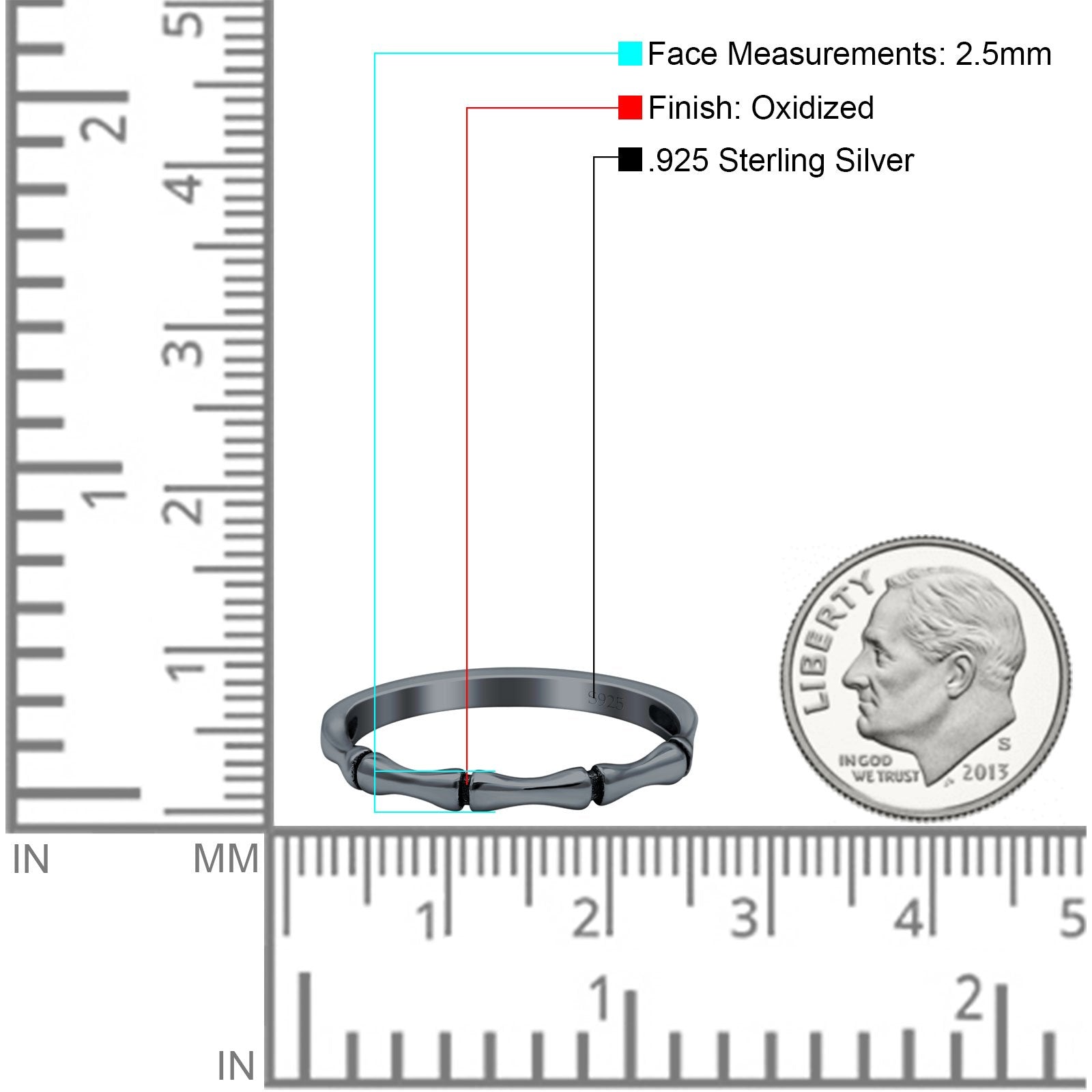 Bamboo Ring Oxidized Band Solid 925 Sterling Silver Thumb Ring (2.5mm)