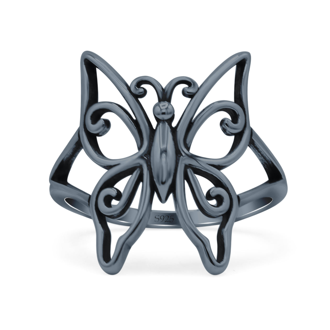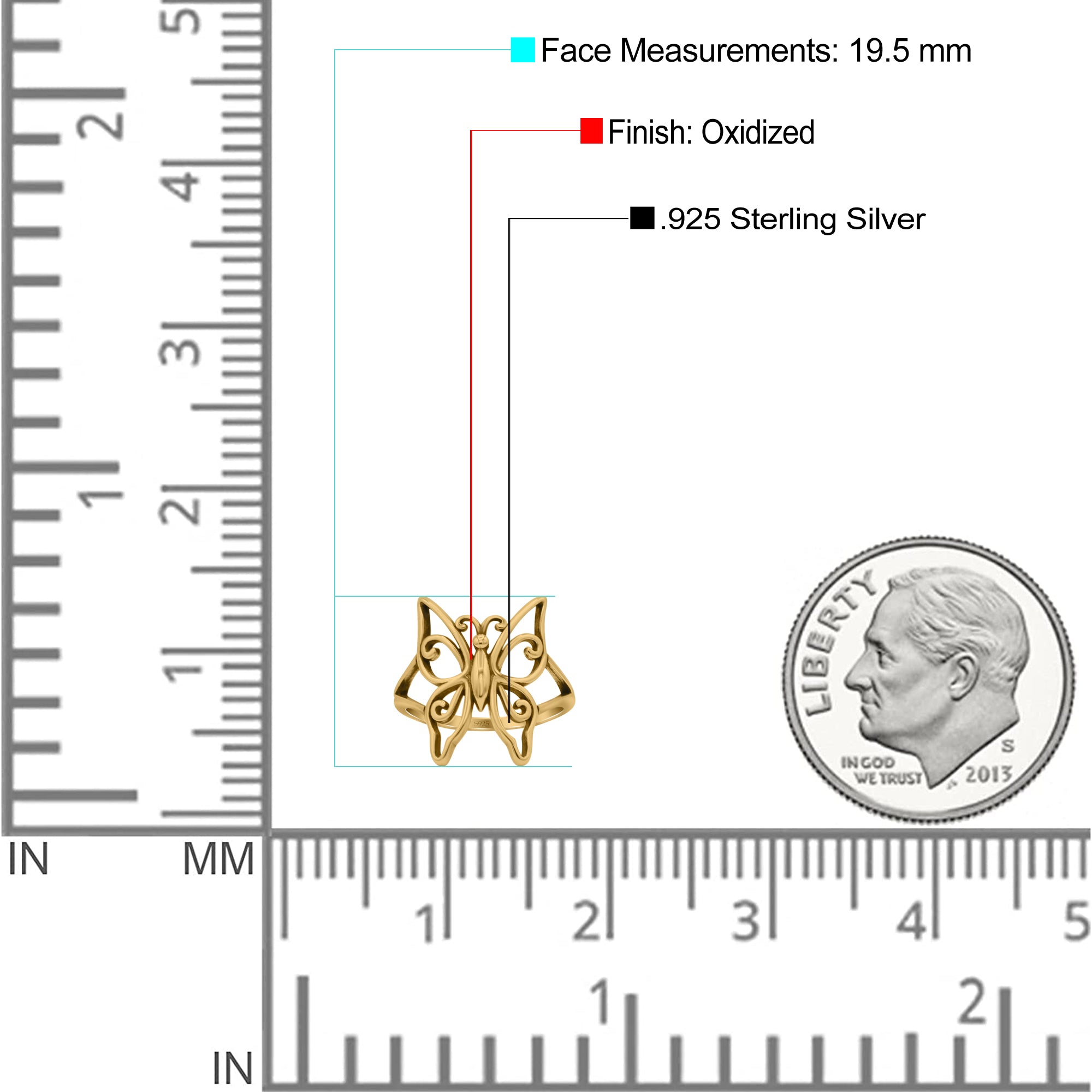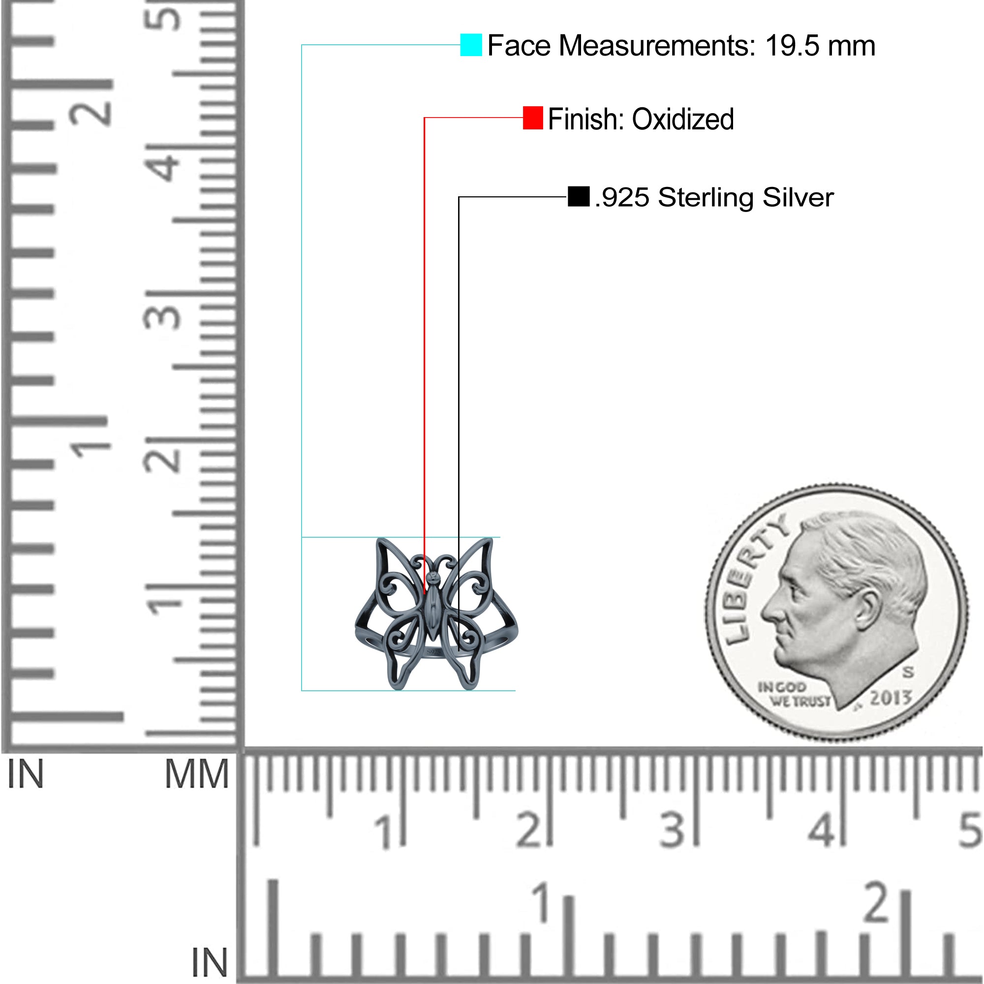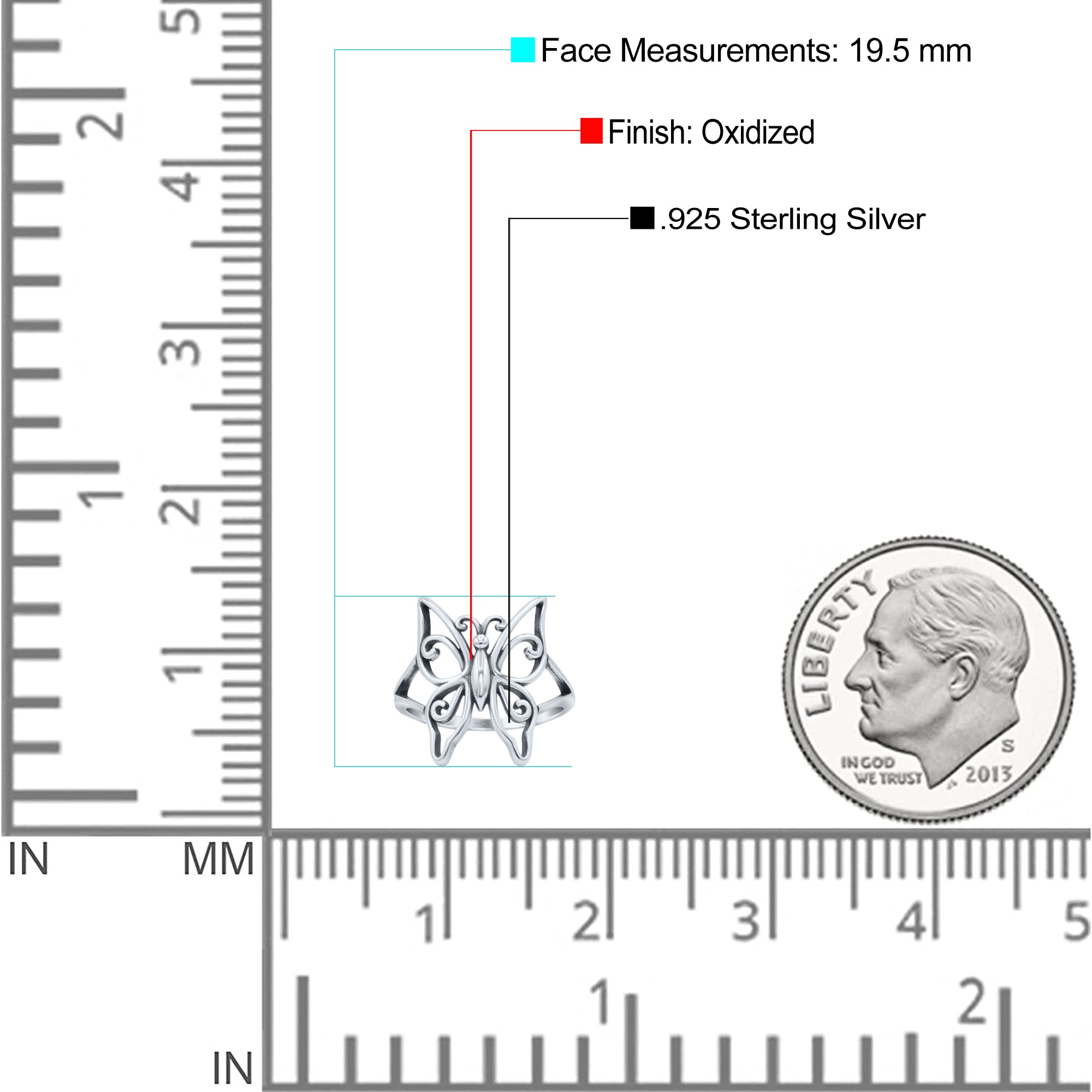Beautiful Filigree Butterfly Designer Statement Fashionable Oxidized Band Solid 925 Sterling Silver Thumb Ring (19.5mm)