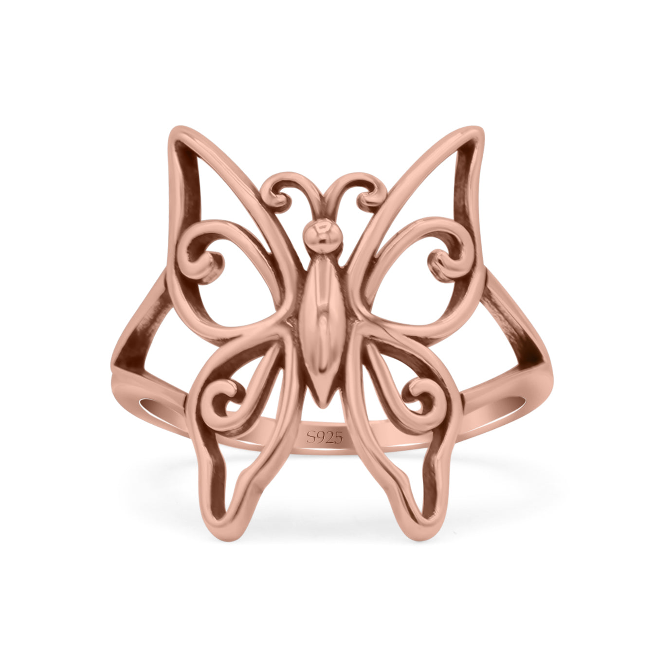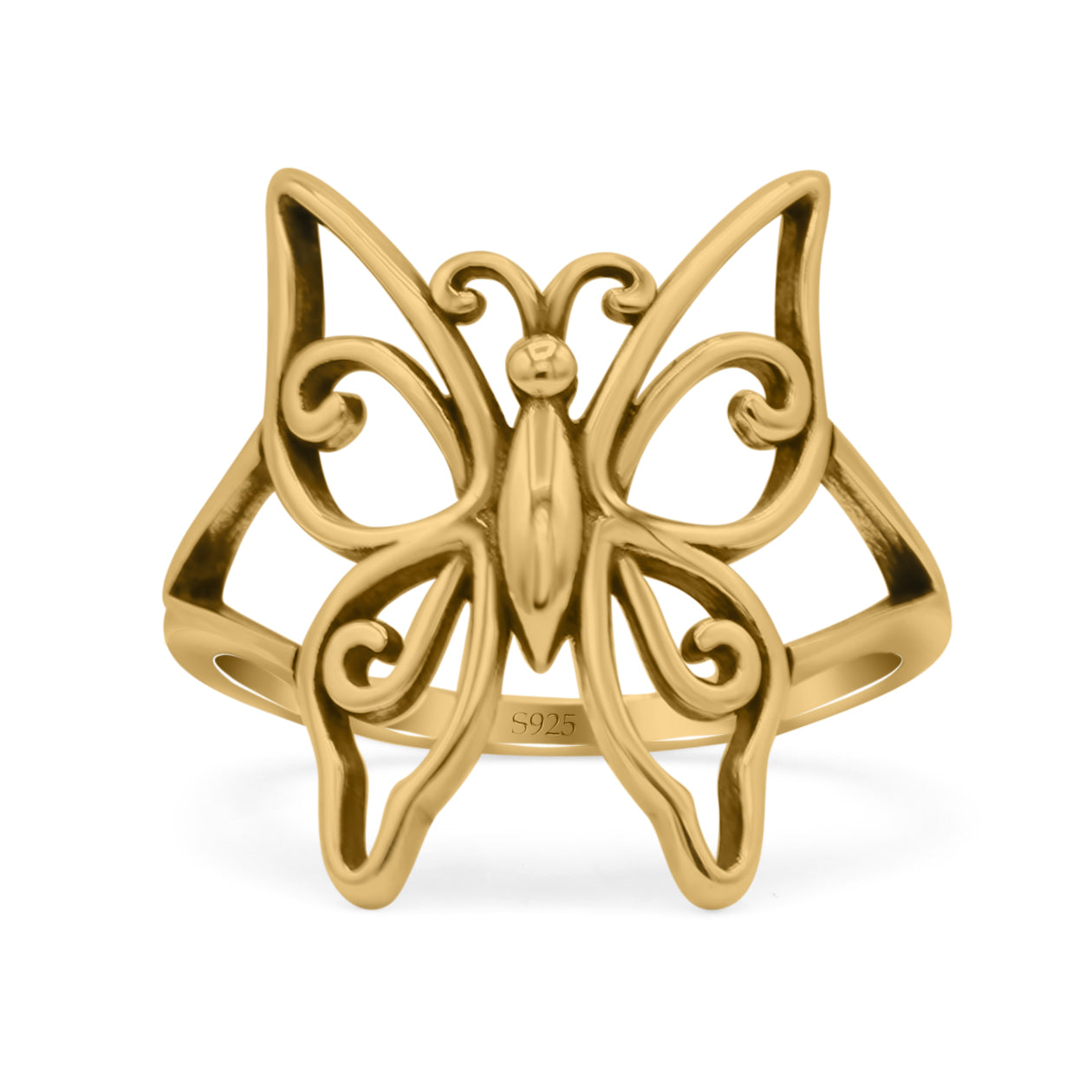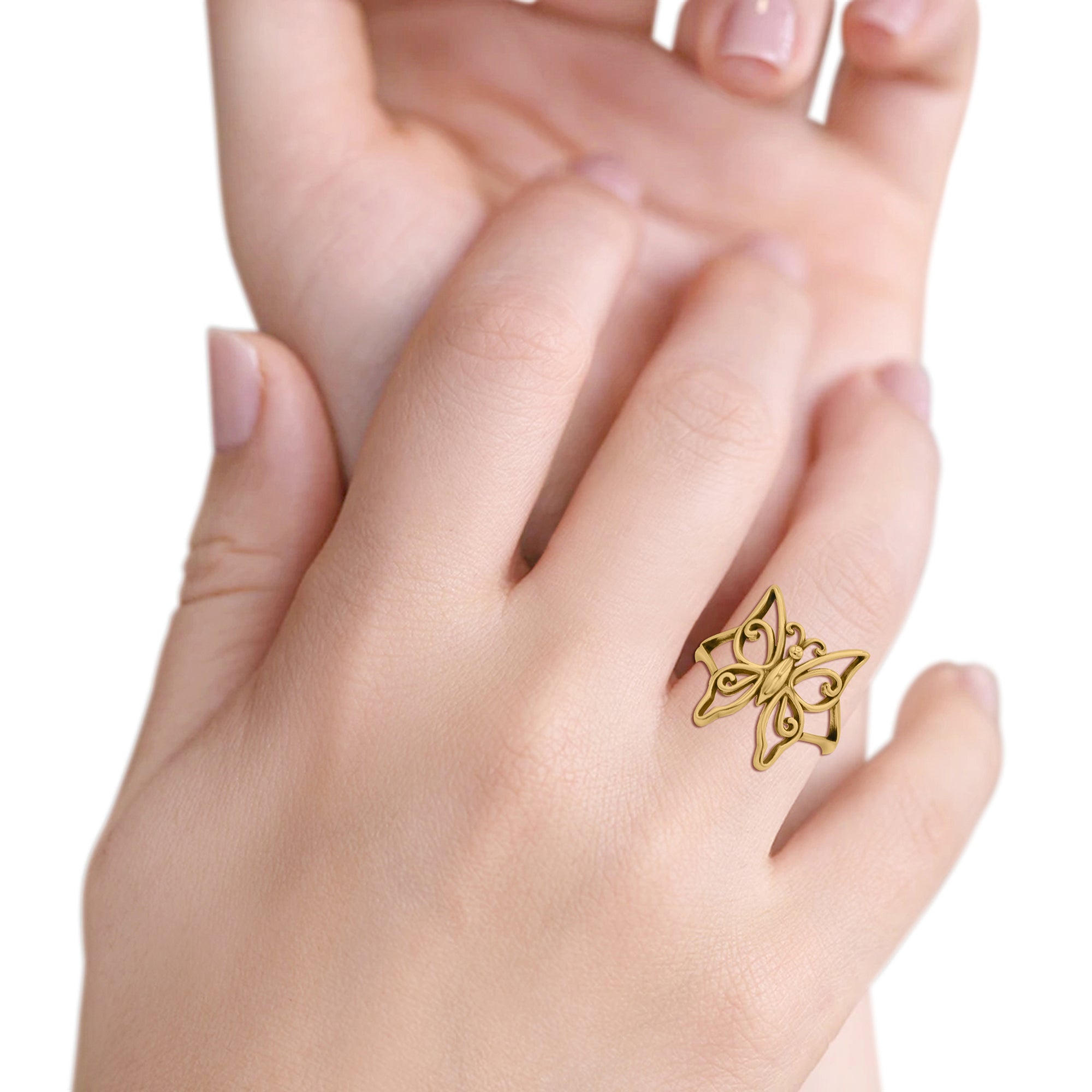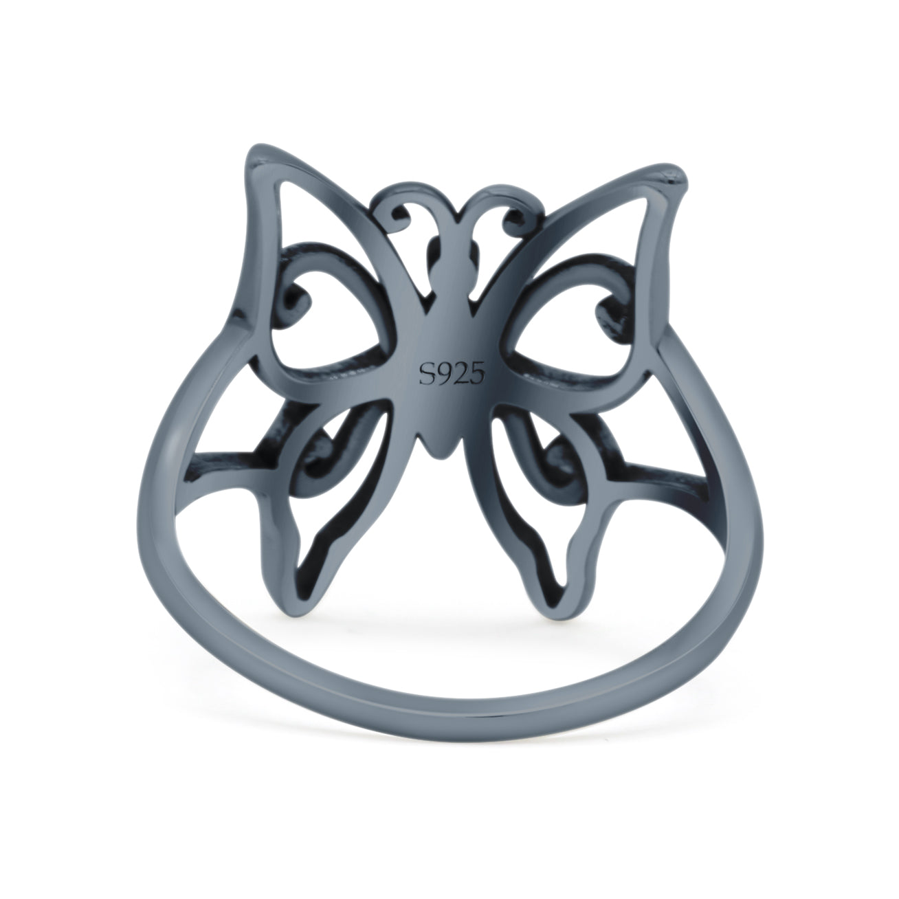 Beautiful Filigree Butterfly Designer Statement Fashionable Oxidized Band Solid 925 Sterling Silver Thumb Ring (19.5mm)