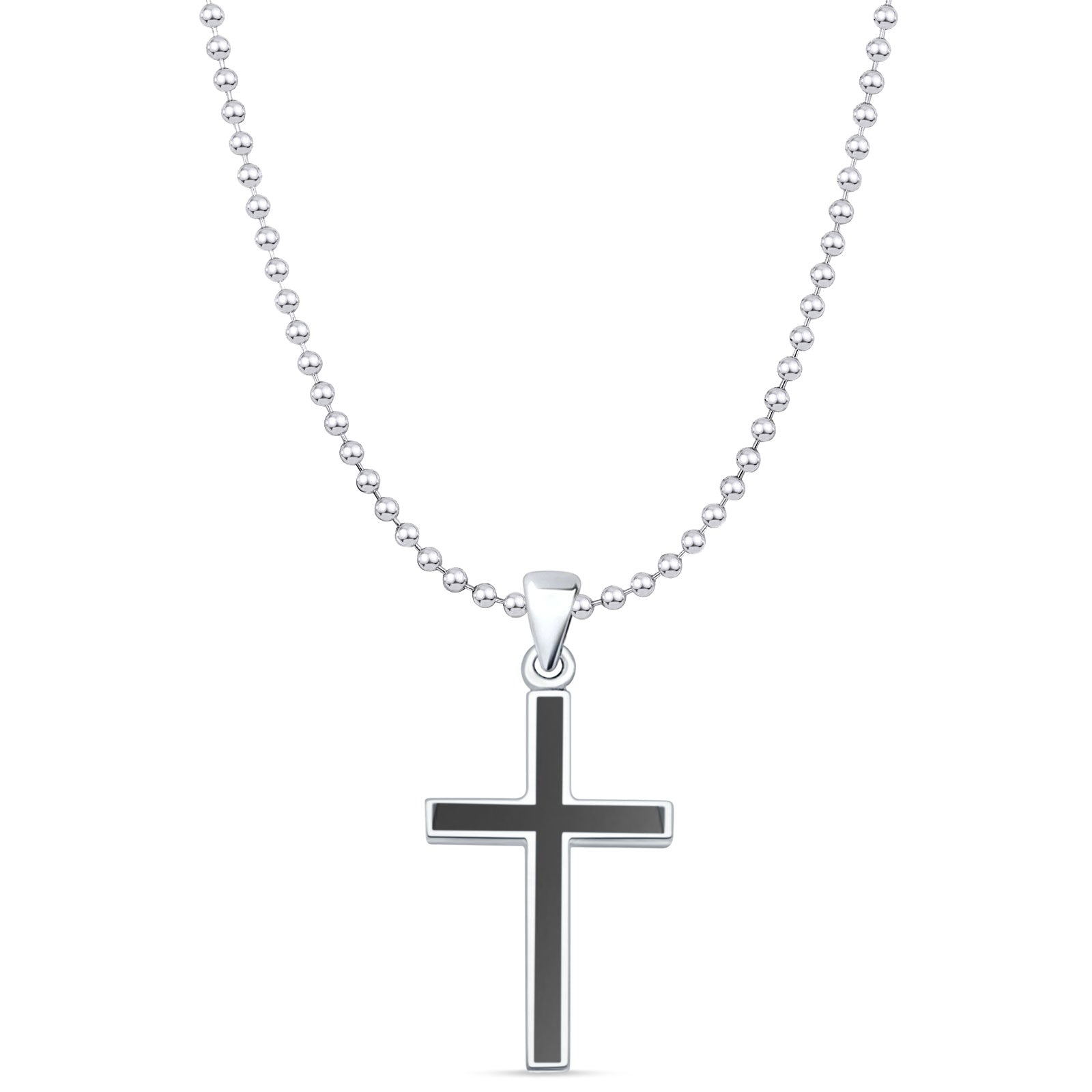 Black Onyx Cross Pendant Bead Chain Necklace 925 Sterling Silver
