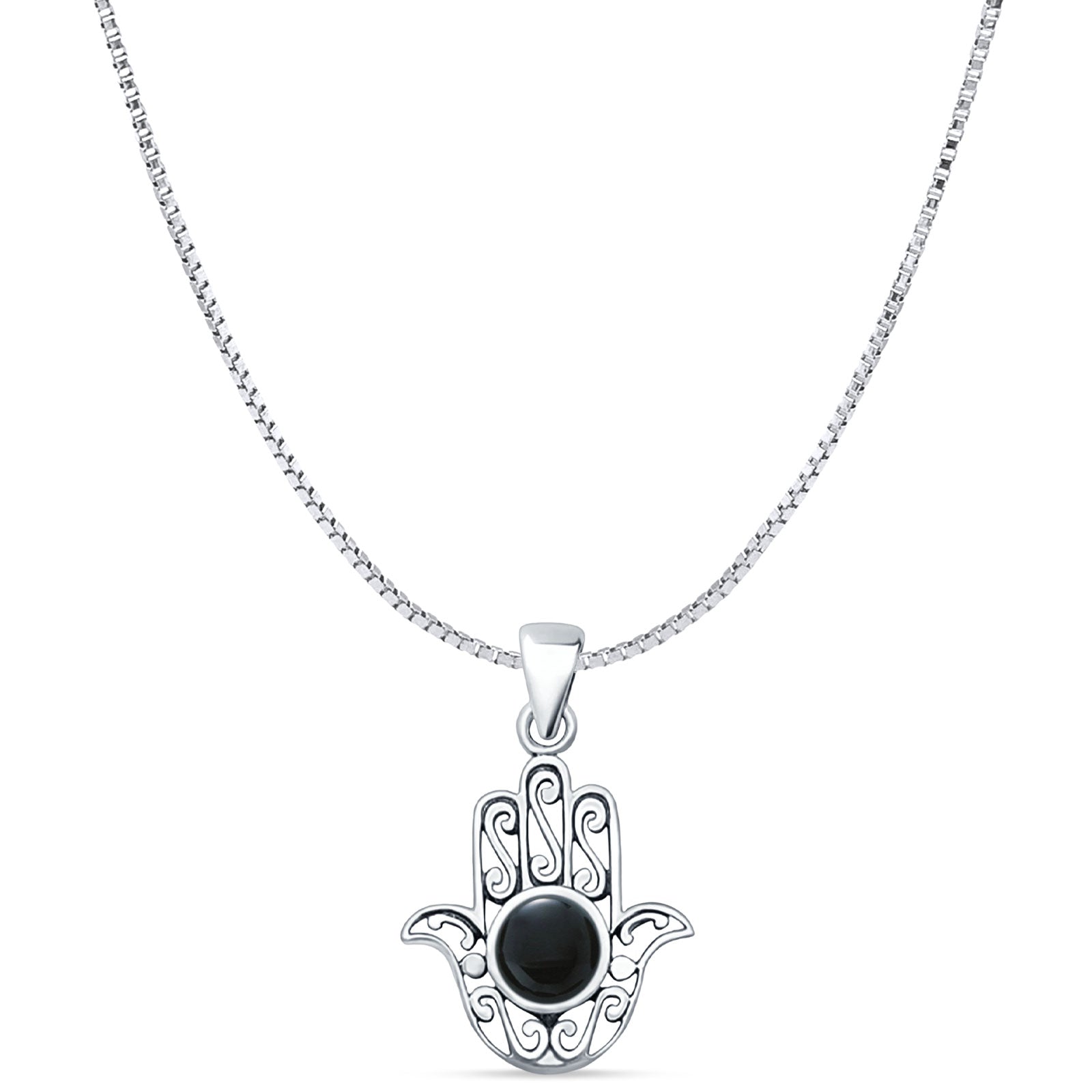 Black Onyx Hand Of Hamsa Pendant Box Chain Necklace Oxidized 925 Sterling Silver