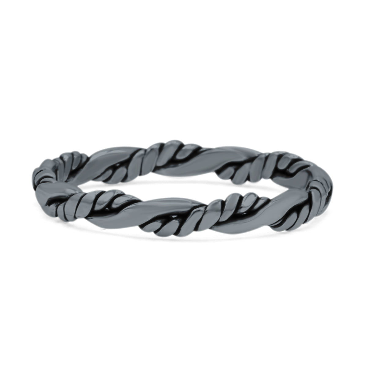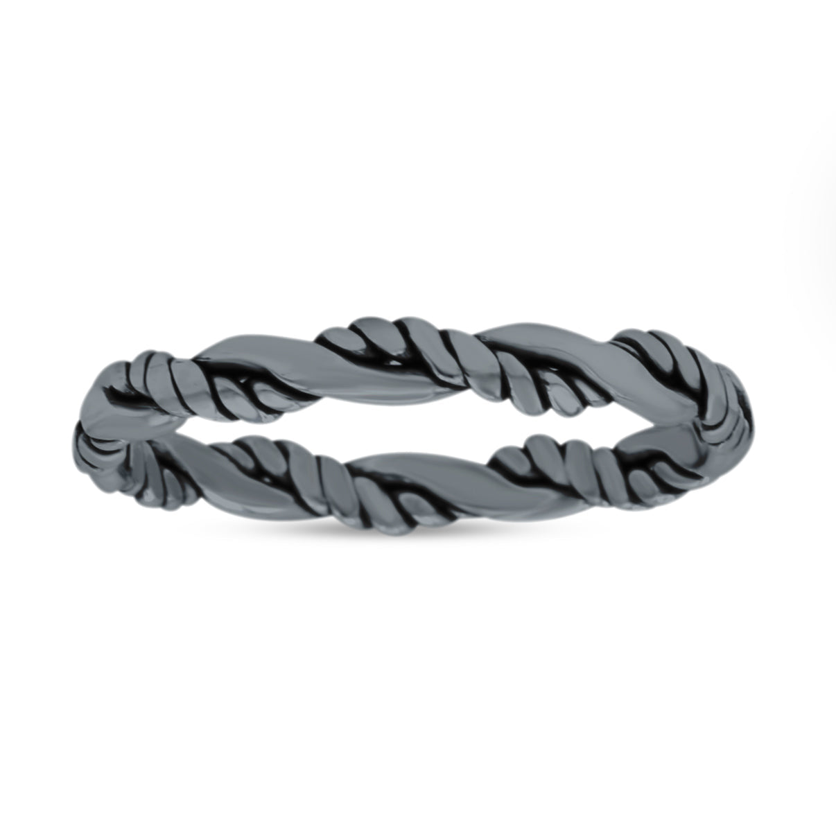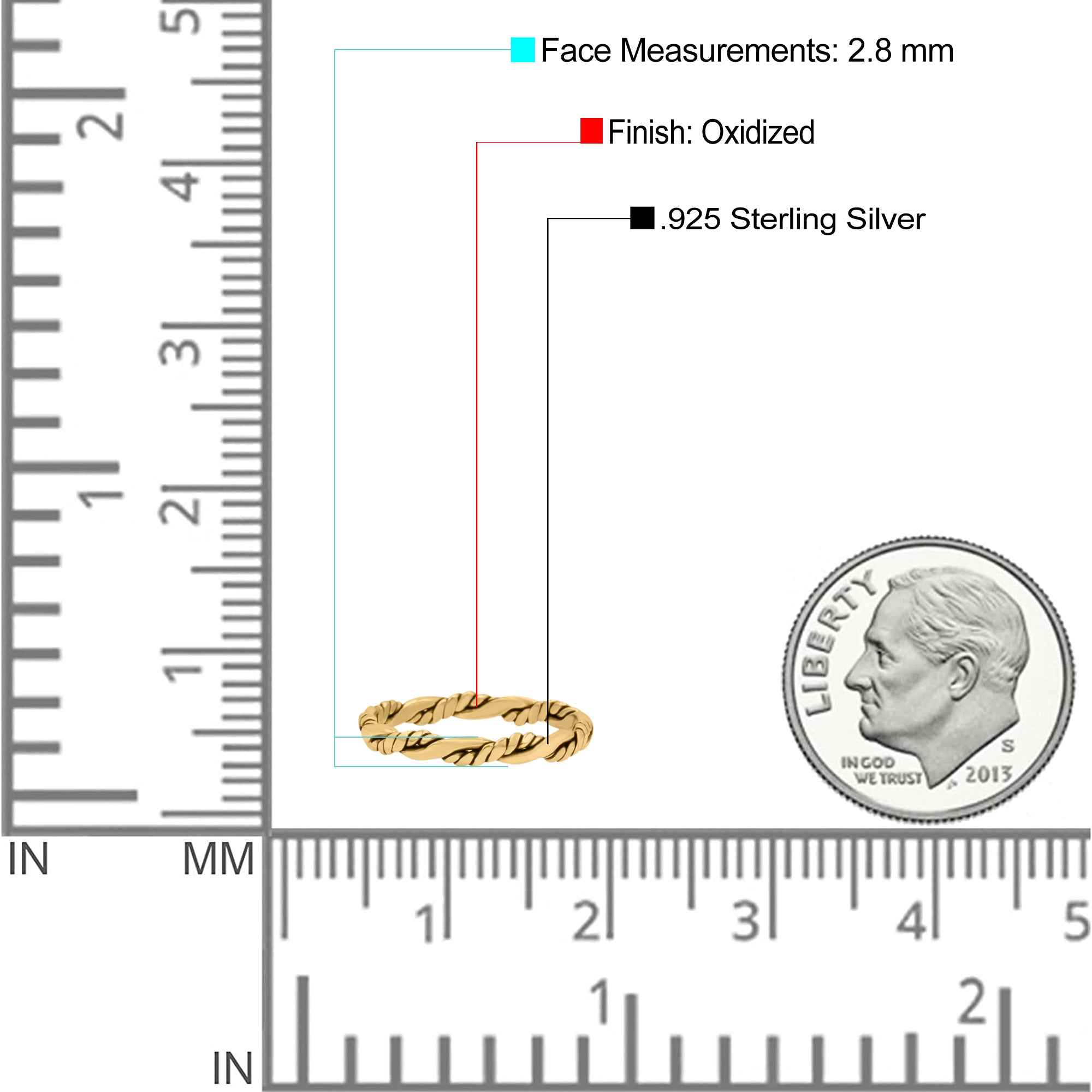 Braided Twisted Rope Dainty Double Band Oxidized Band Thumb Ring (2.8mm)