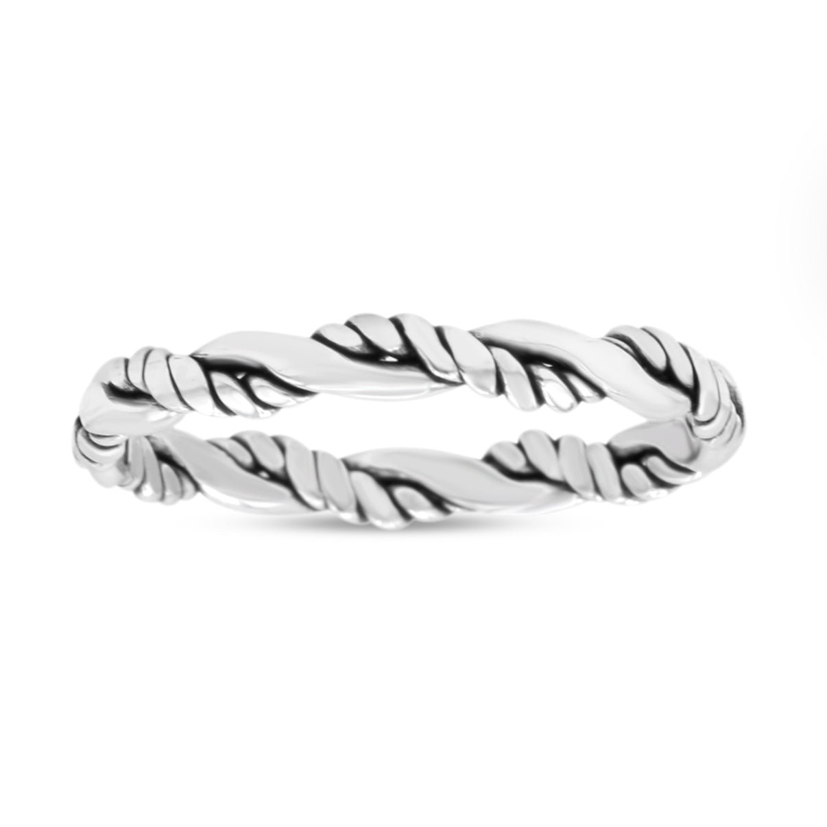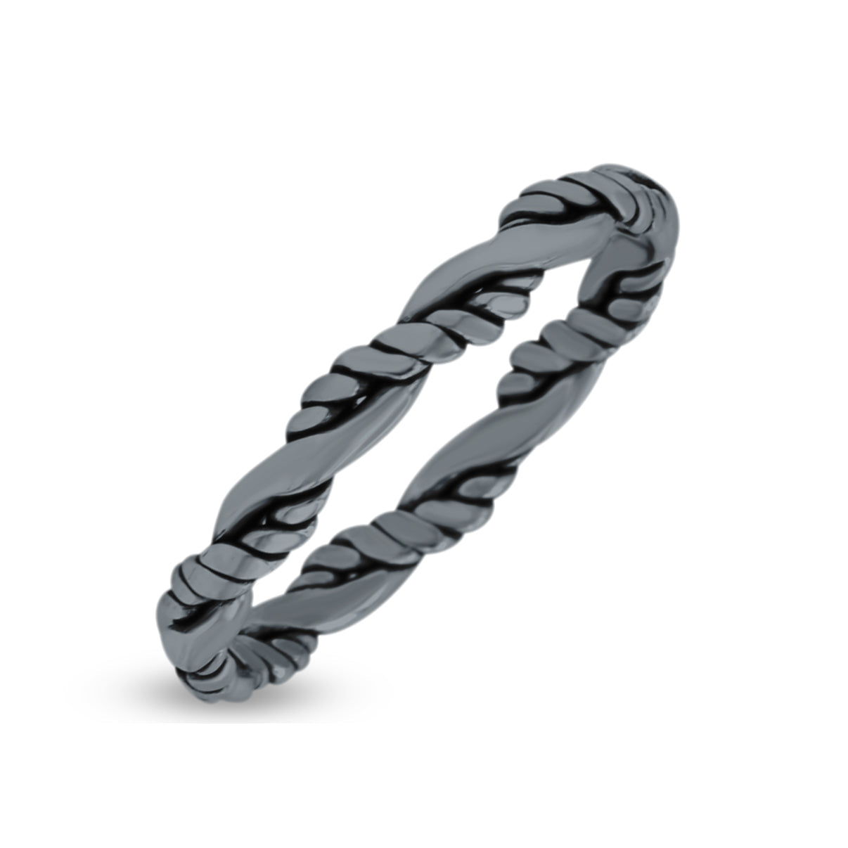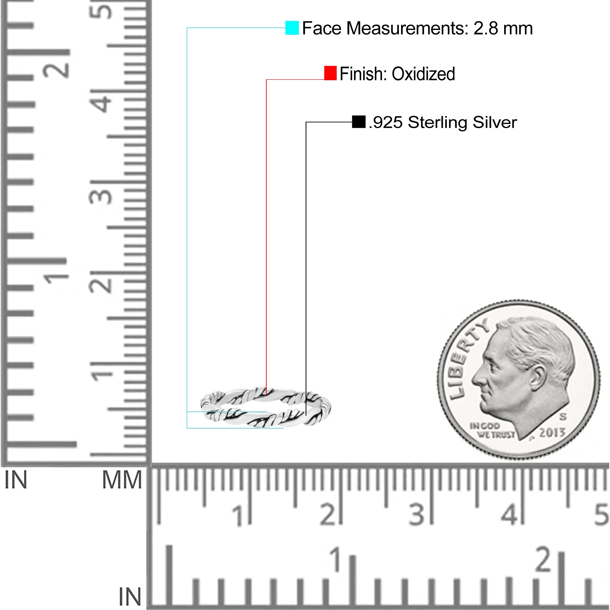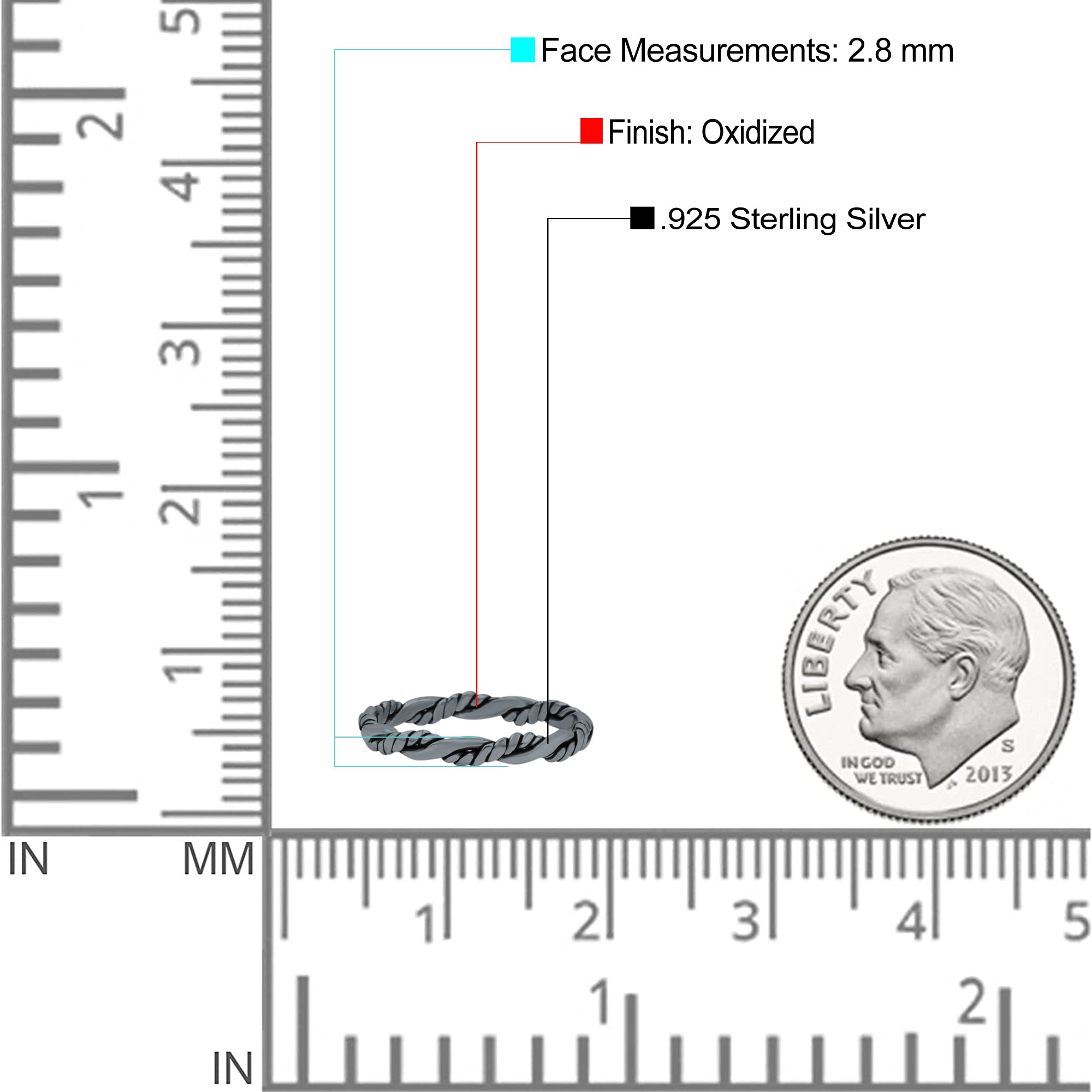 Braided Twisted Rope Dainty Double Band Oxidized Band Thumb Ring (2.8mm)