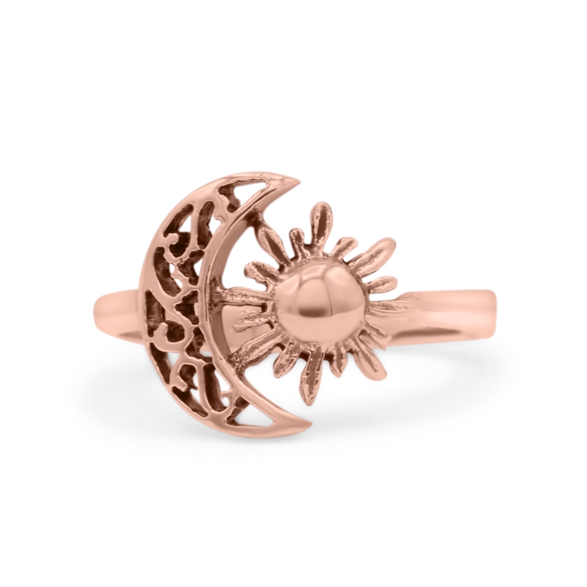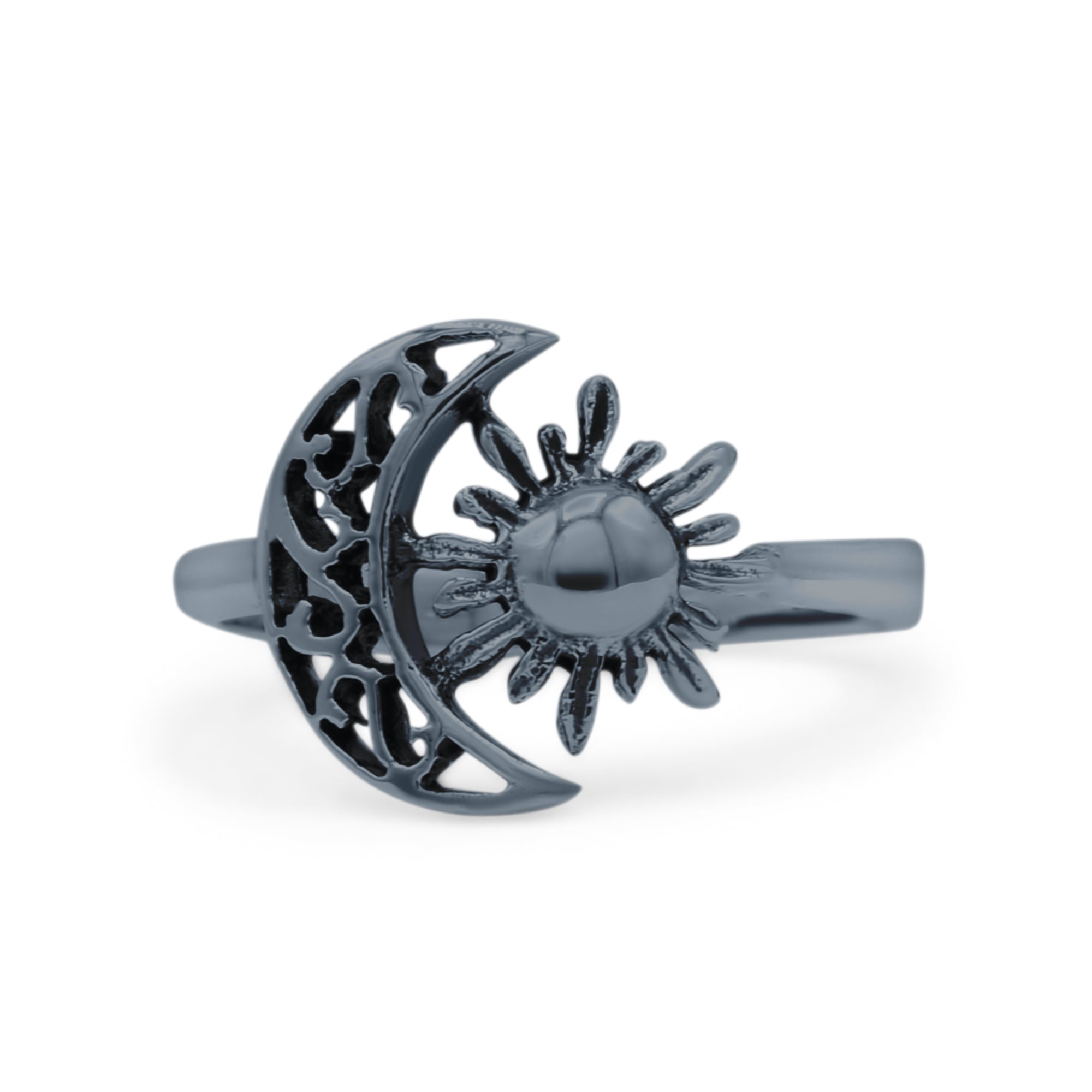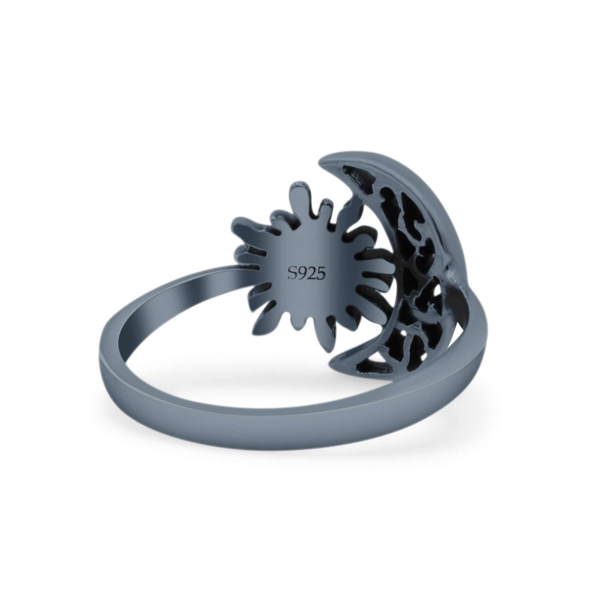 Celestial Moon And Sun Filigree Crescent Affectionate Fashion Oxidized Ring Band Thumb Ring (11.2mm)