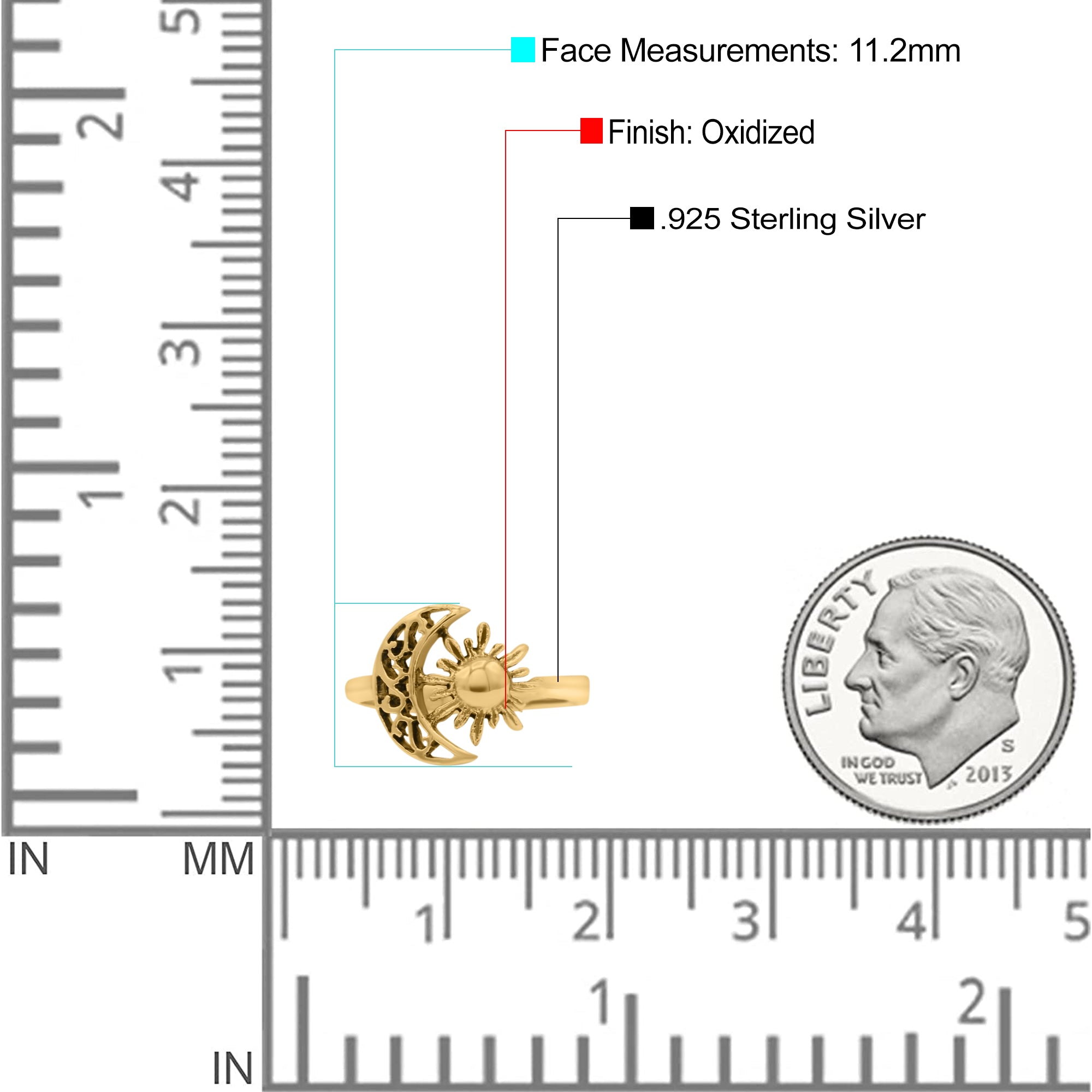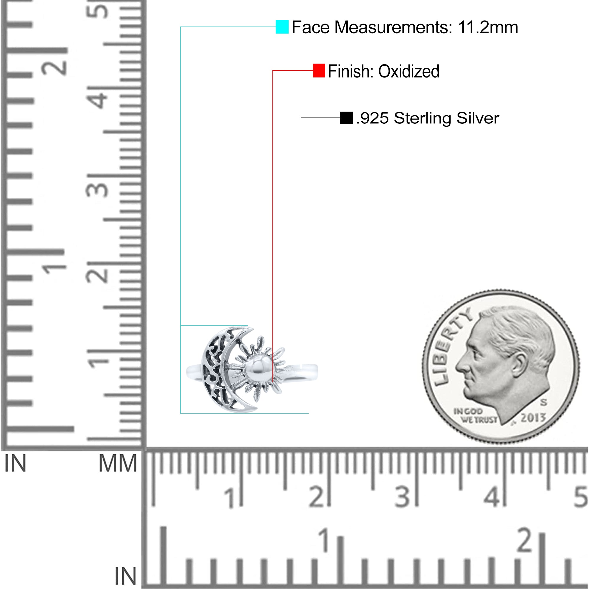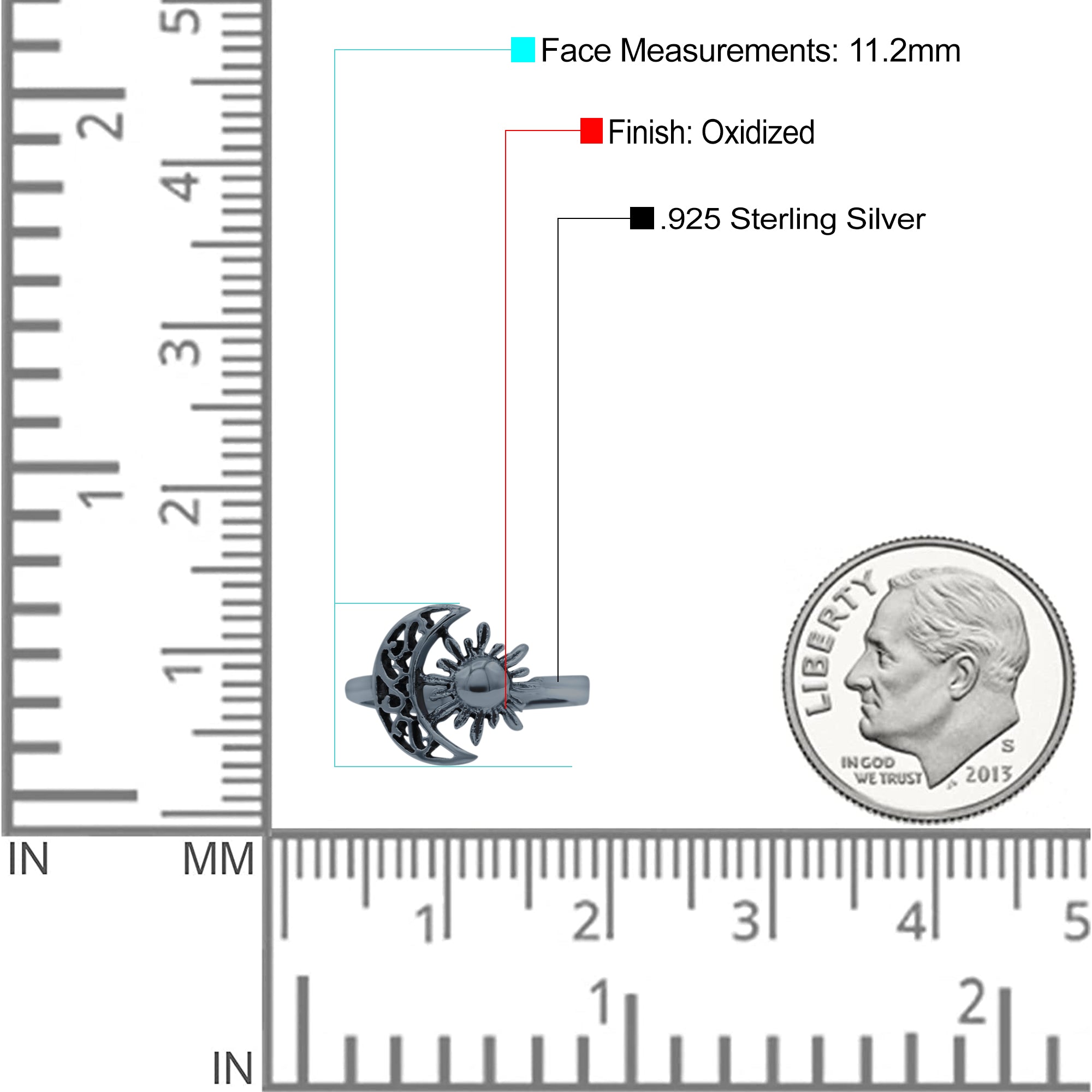 Celestial Moon And Sun Filigree Crescent Affectionate Fashion Oxidized Ring Band Thumb Ring (11.2mm)