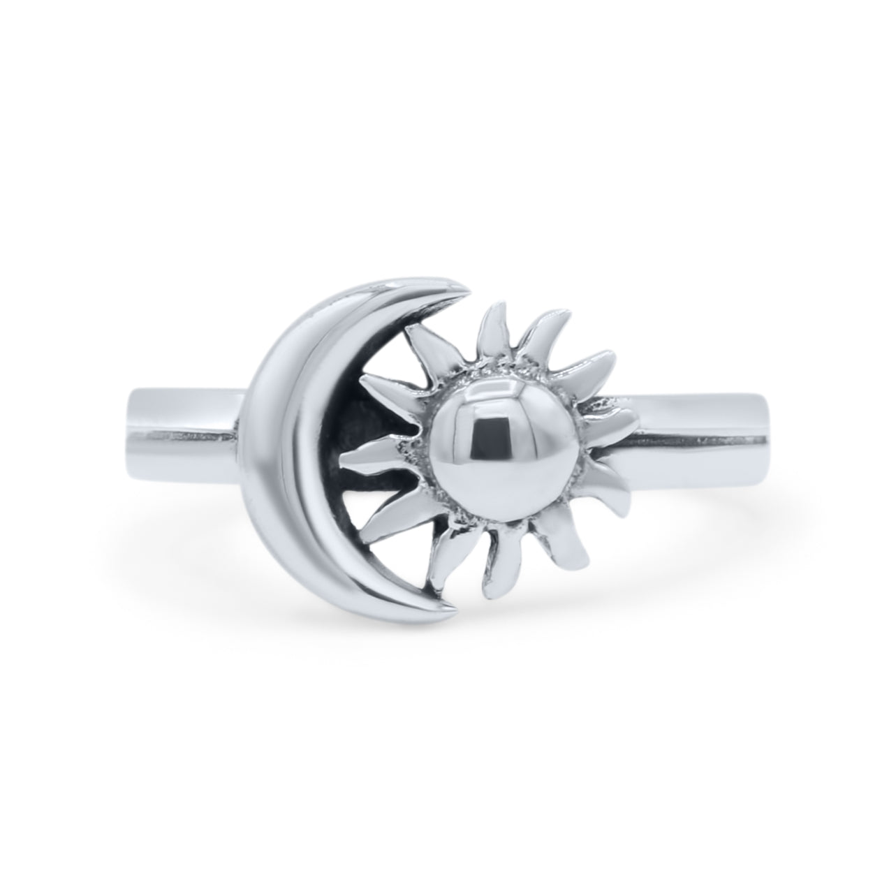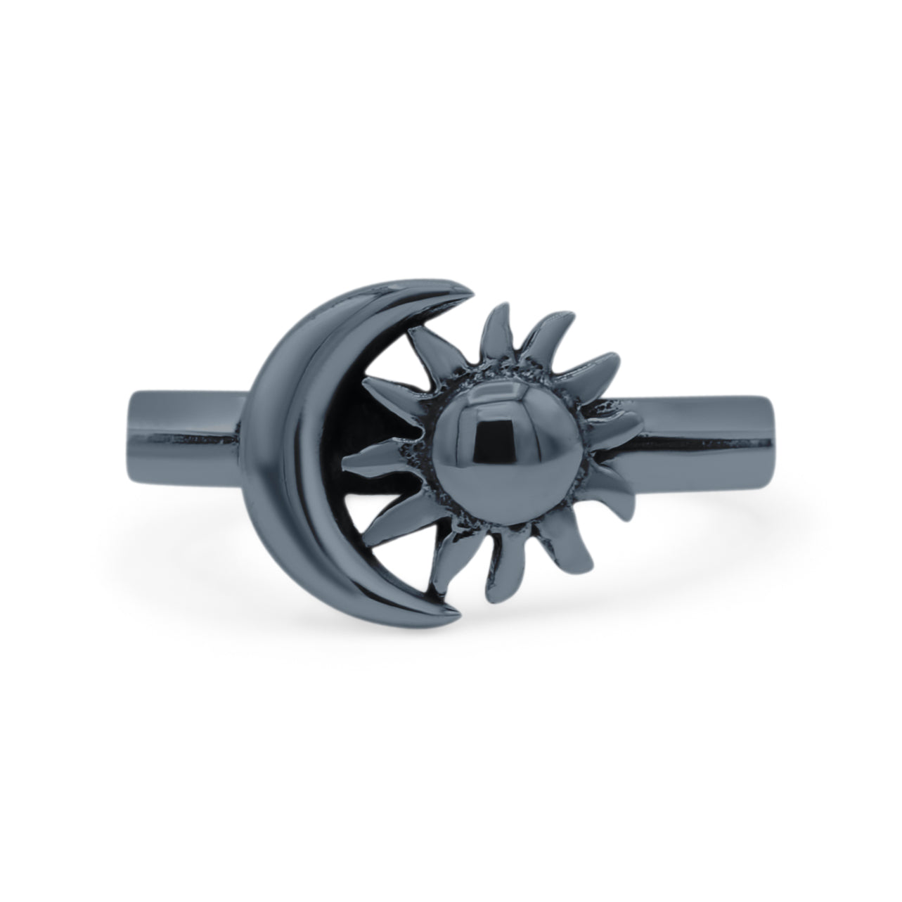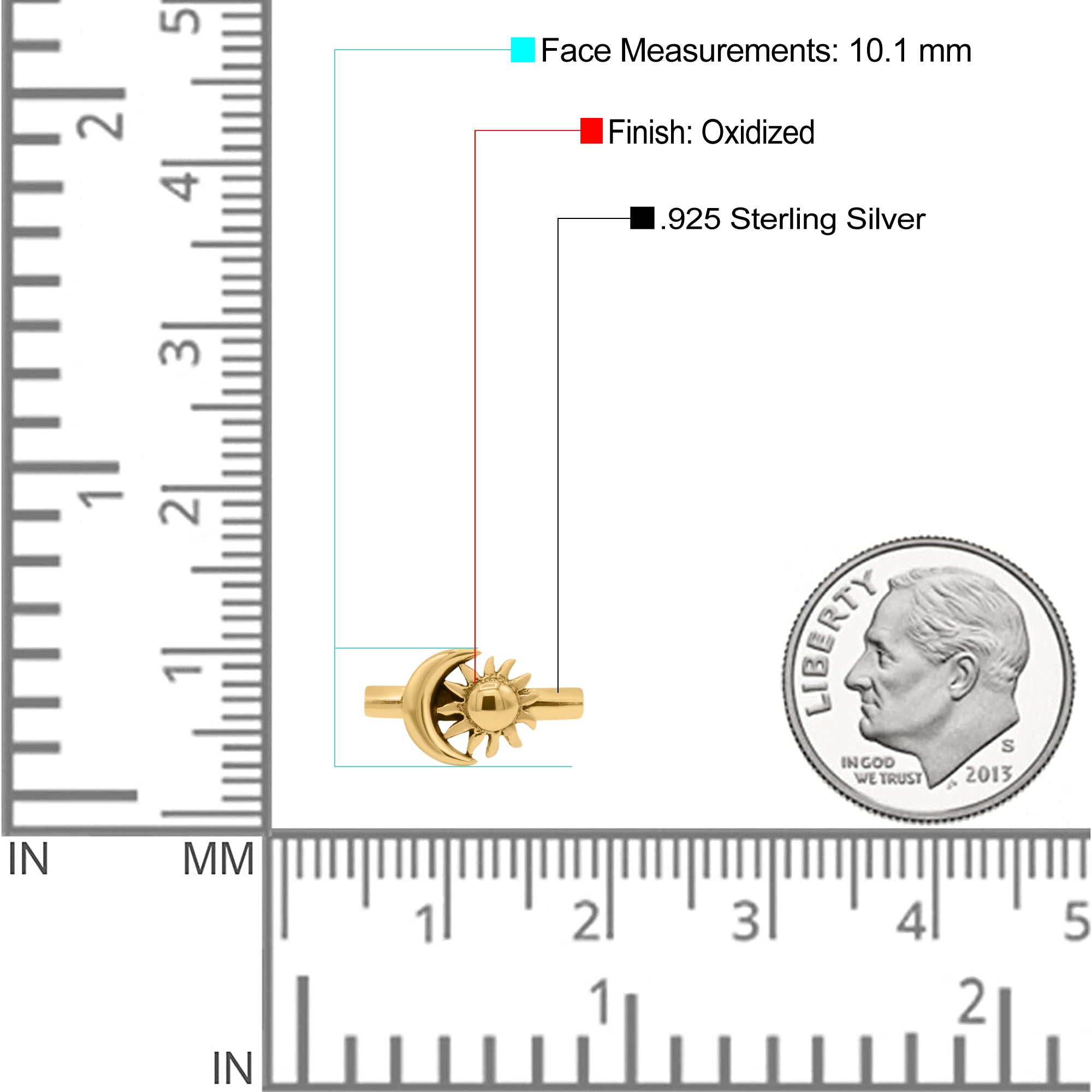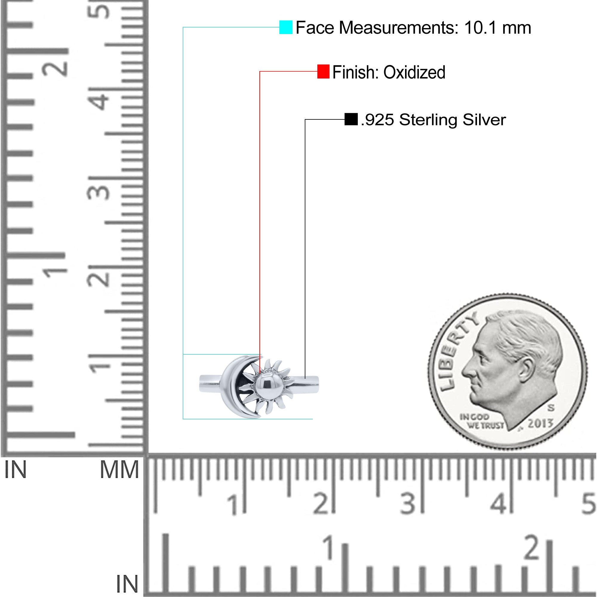 Celestial Sun & Moon Fashionable Universe Cute Oxidized Band Thumb Ring (10.1mm)