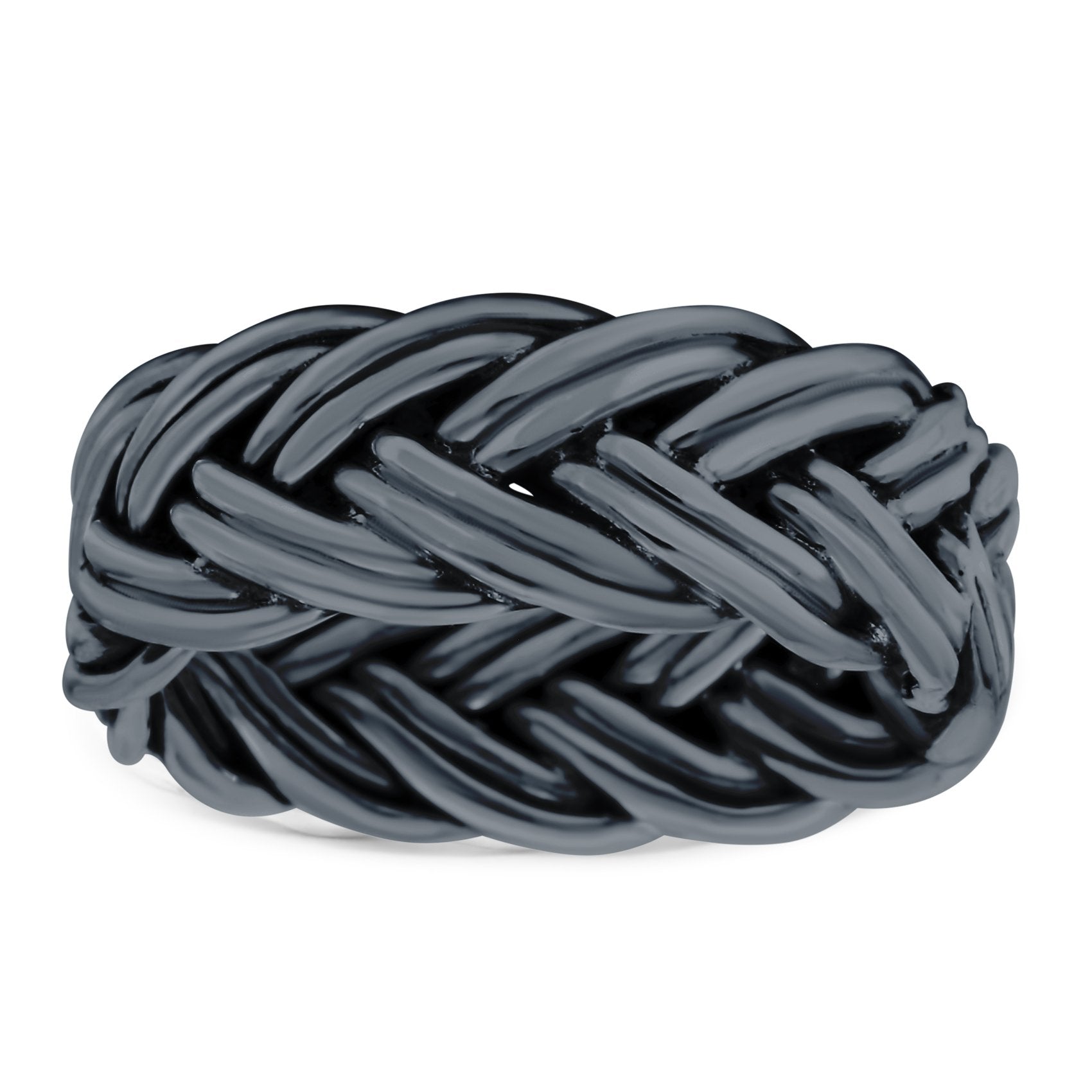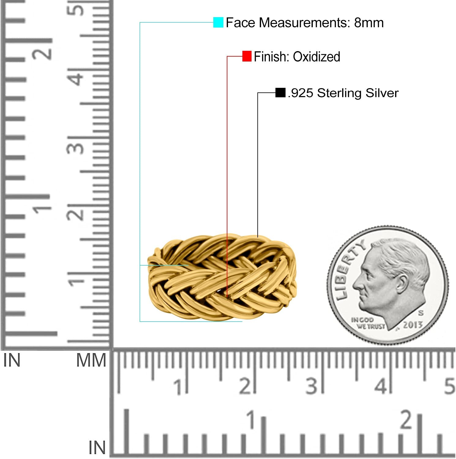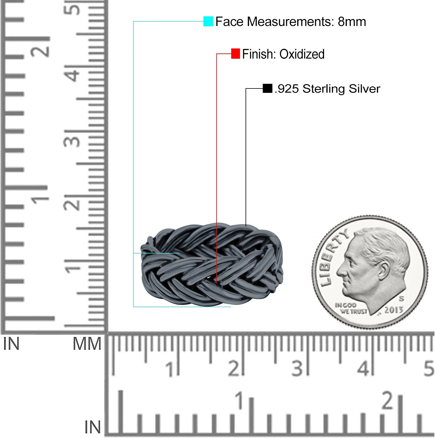 Celtic Braided Ring Oxidized Band Solid 925 Sterling Silver (8mm)