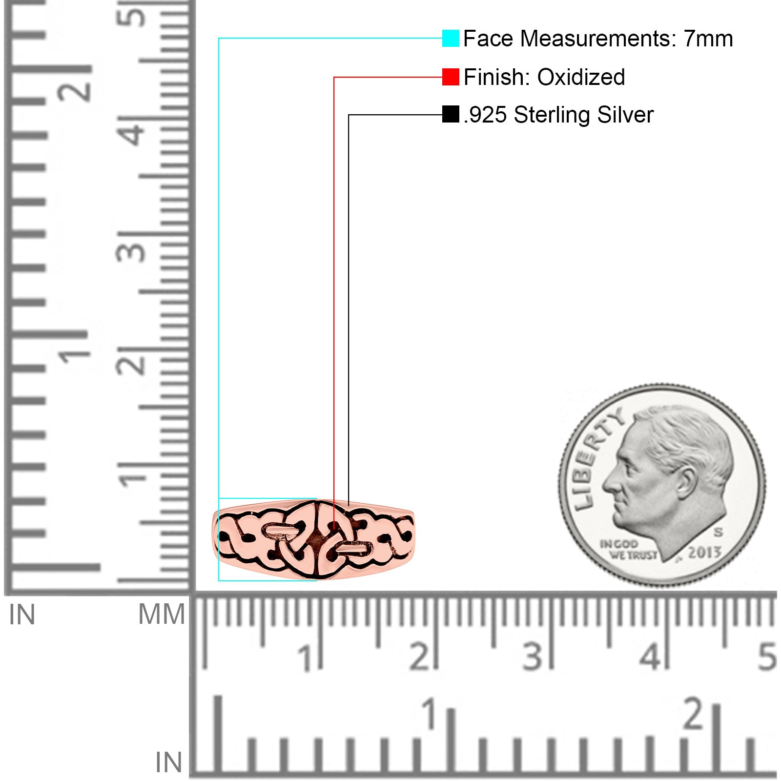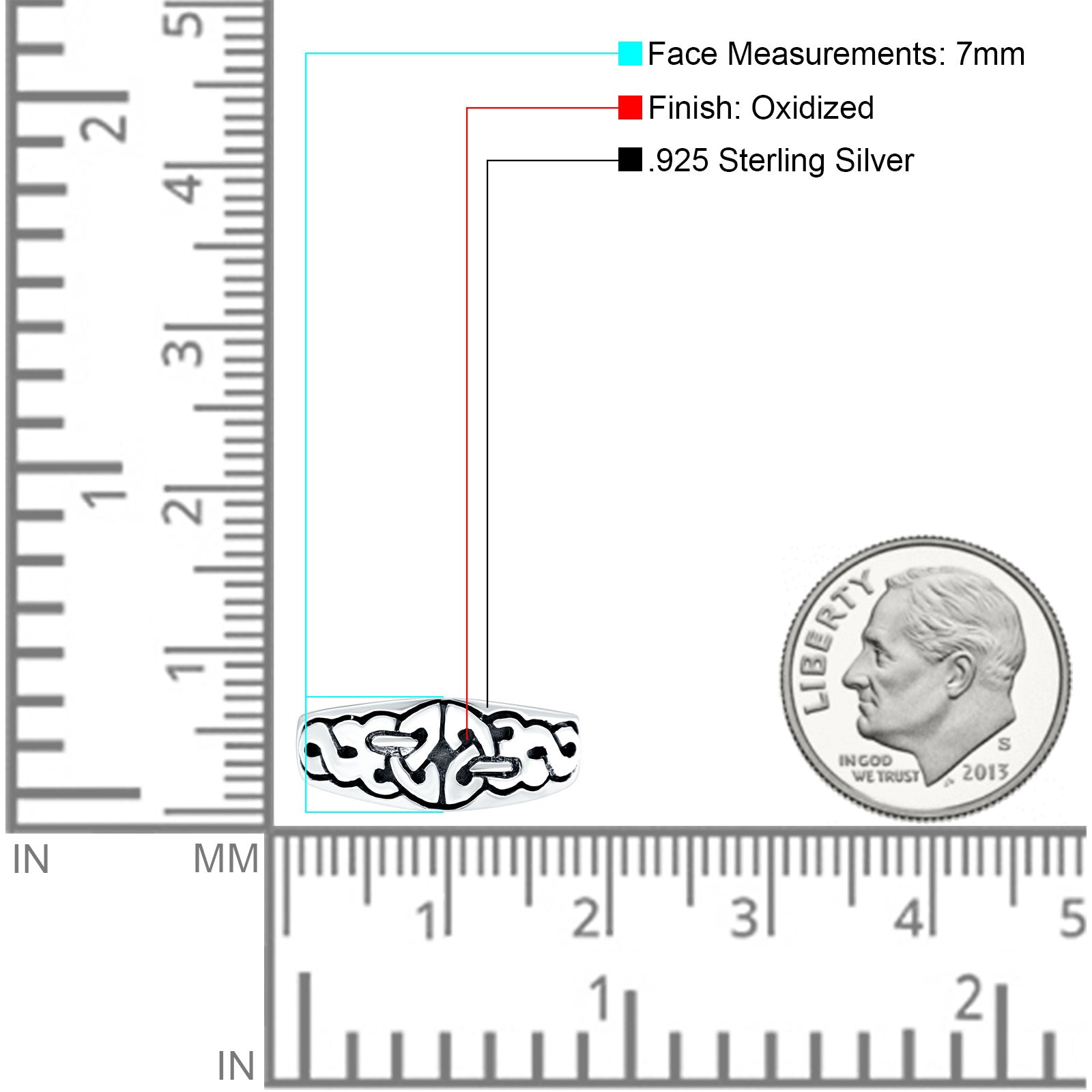 Celtic Oxidized Band Solid 925 Sterling Silver Thumb Ring (7mm)