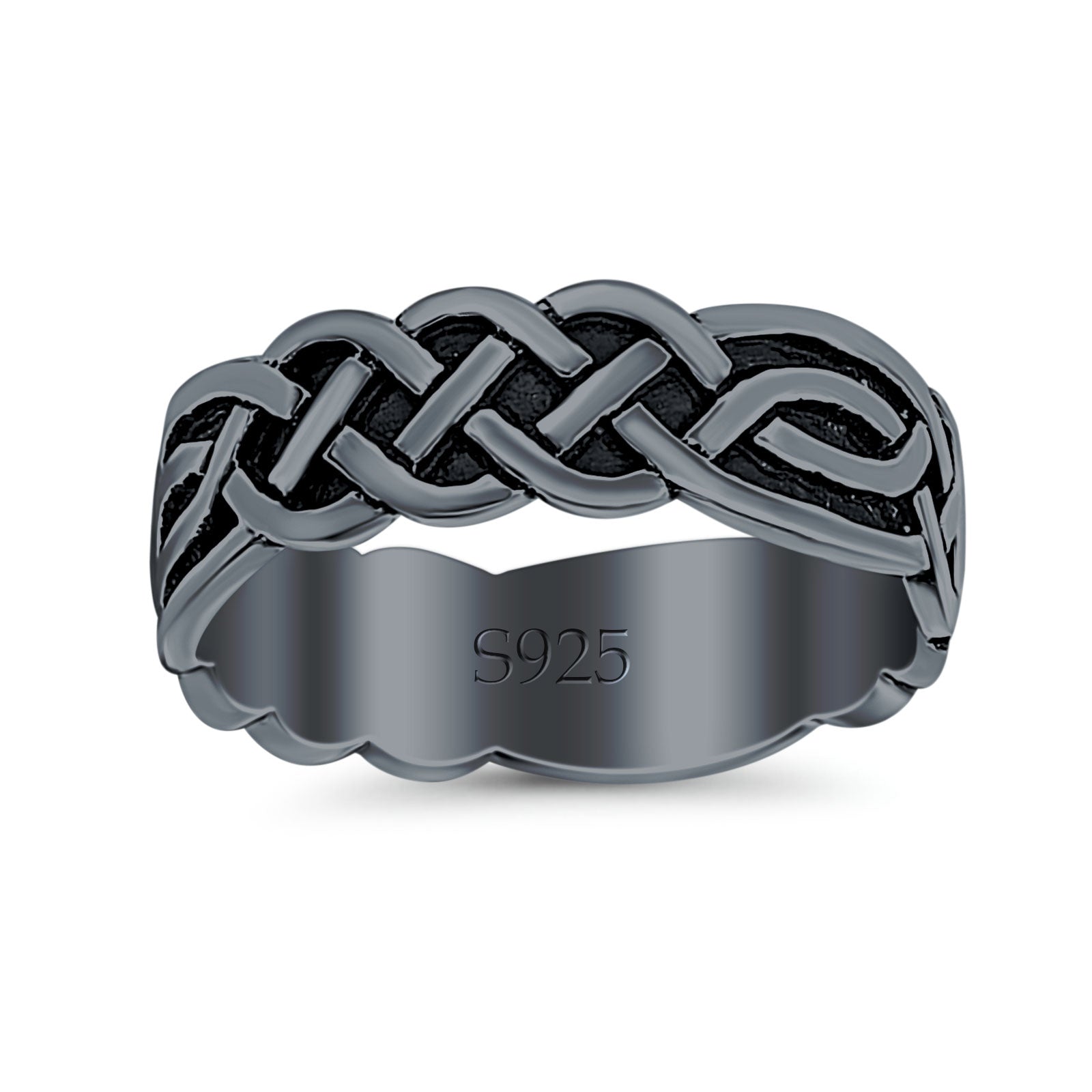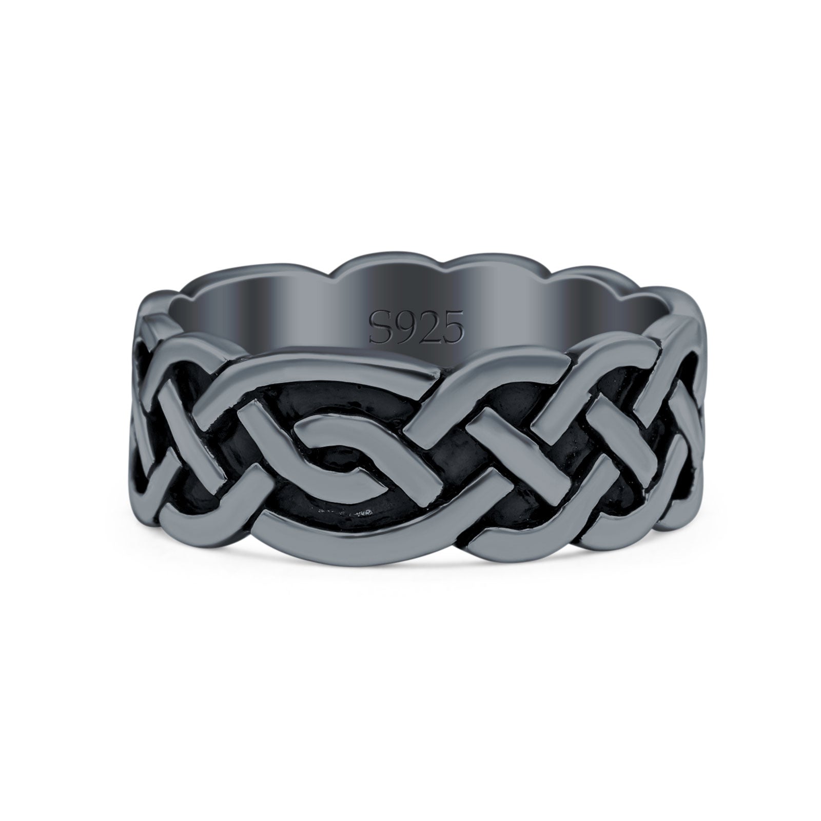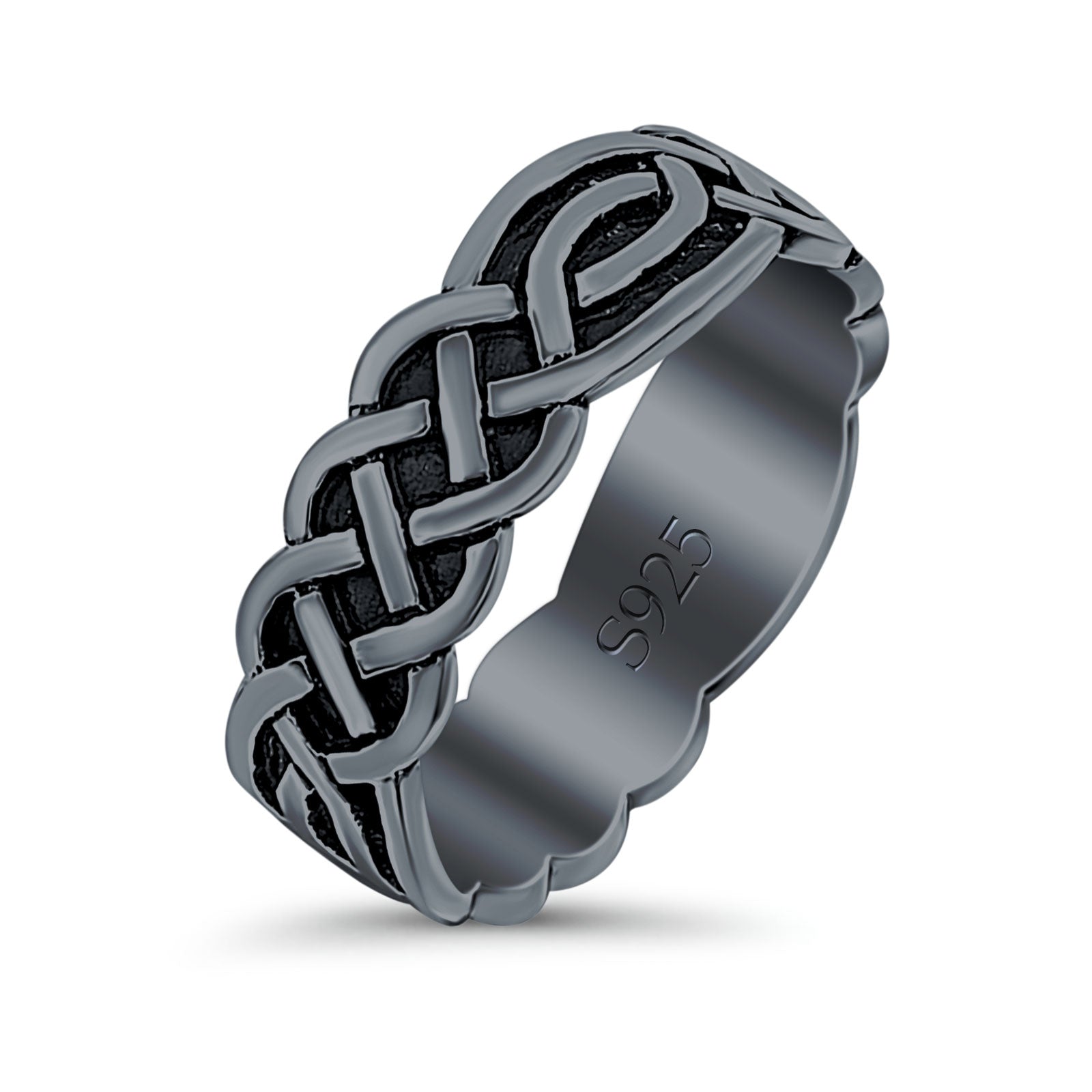 Celtic Oxidized Band Solid 925 Sterling Silver Thumb Ring (8mm)