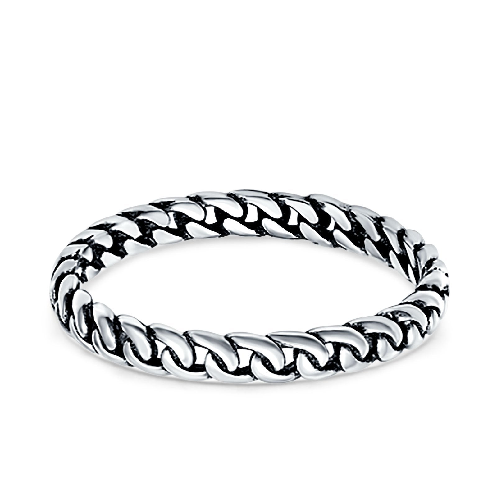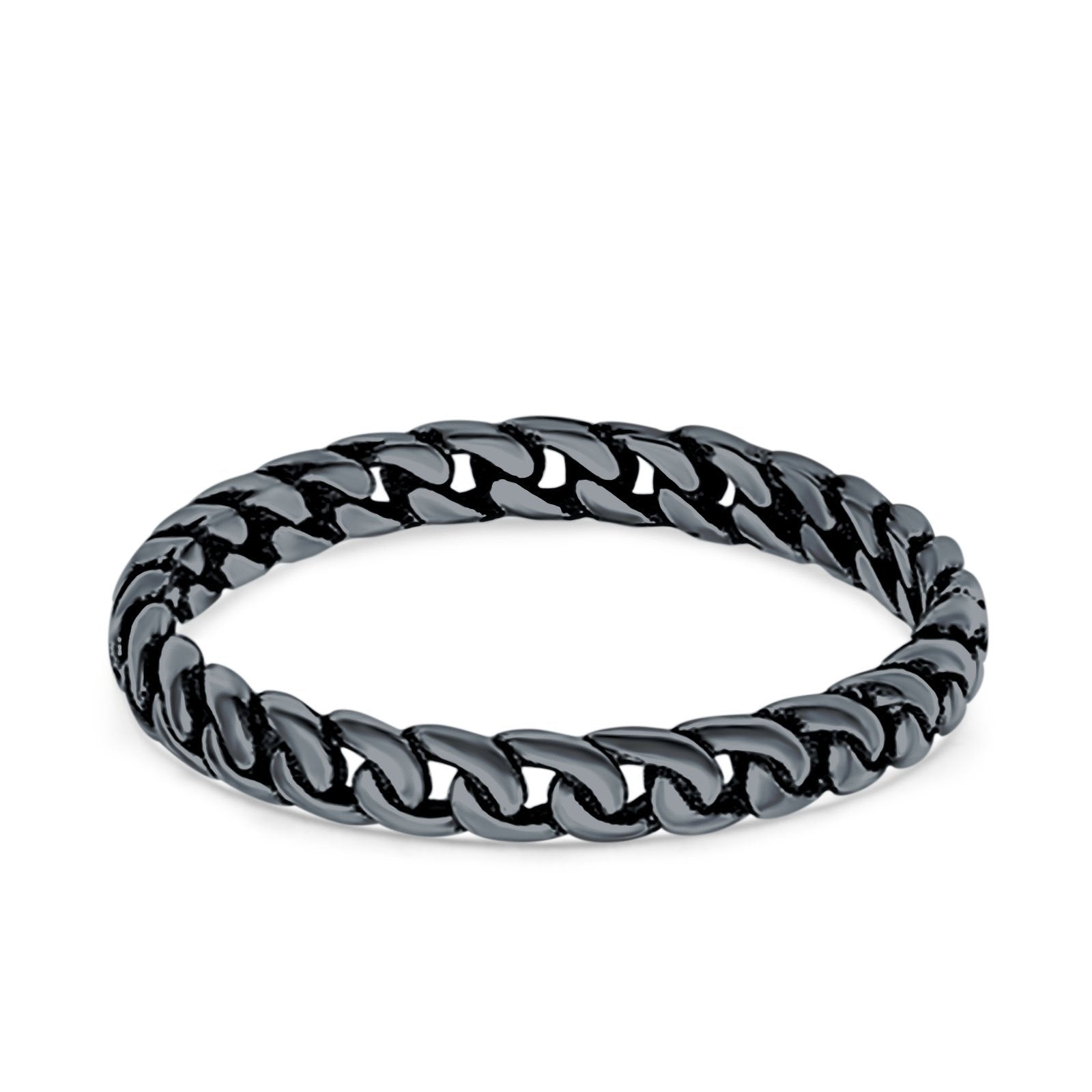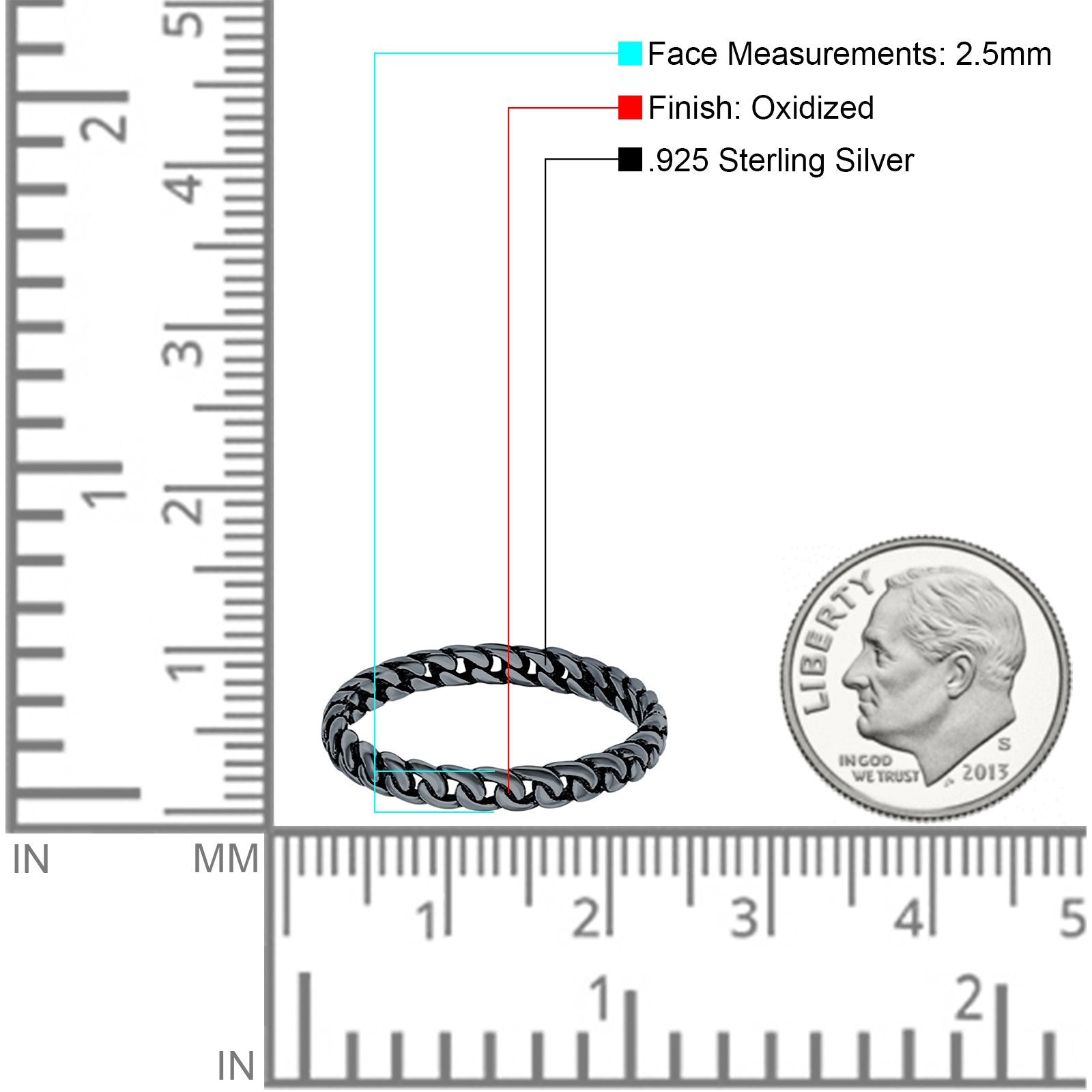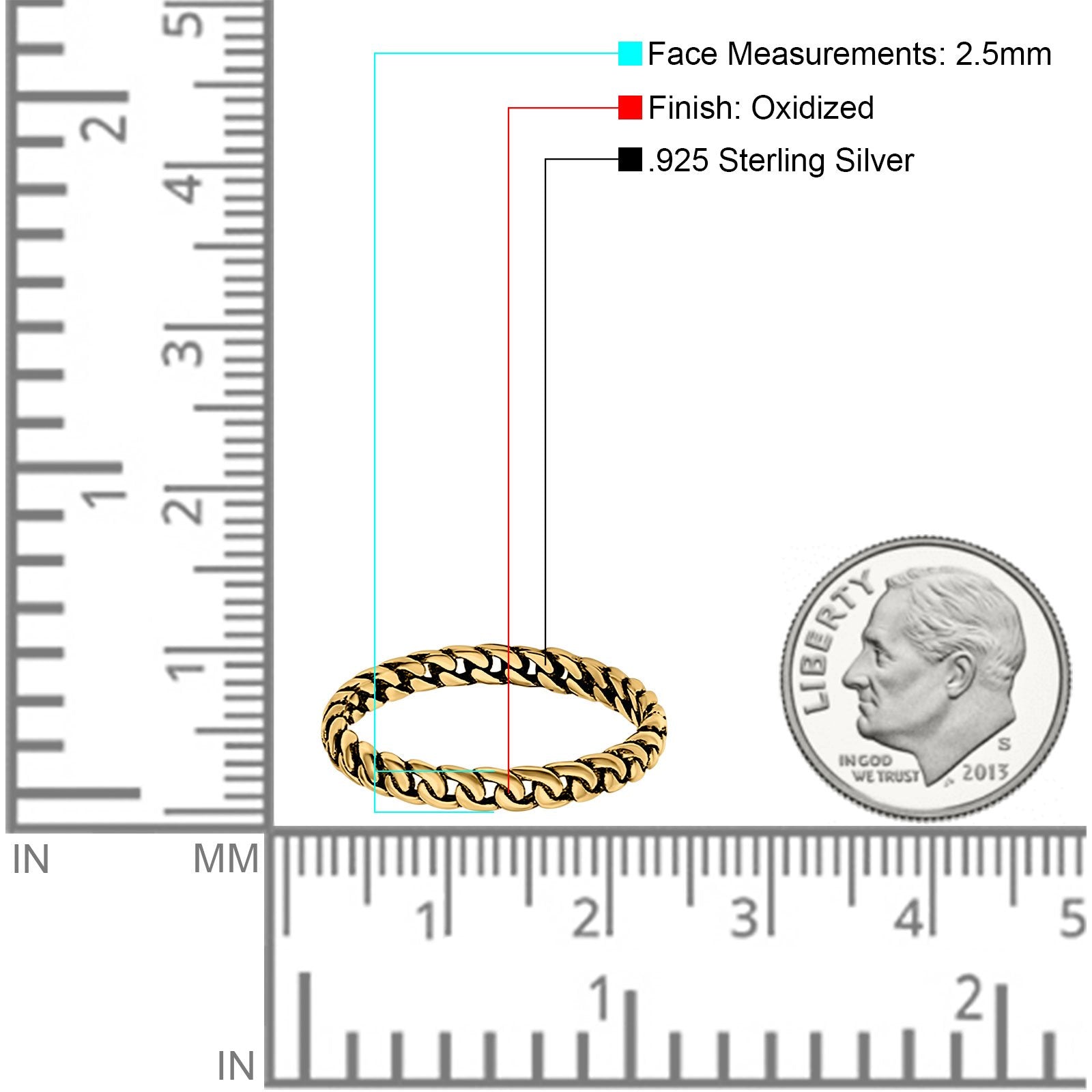 Chain Ring Oxidized Band Solid 925 Sterling Silver Thumb Ring (2.5mm)