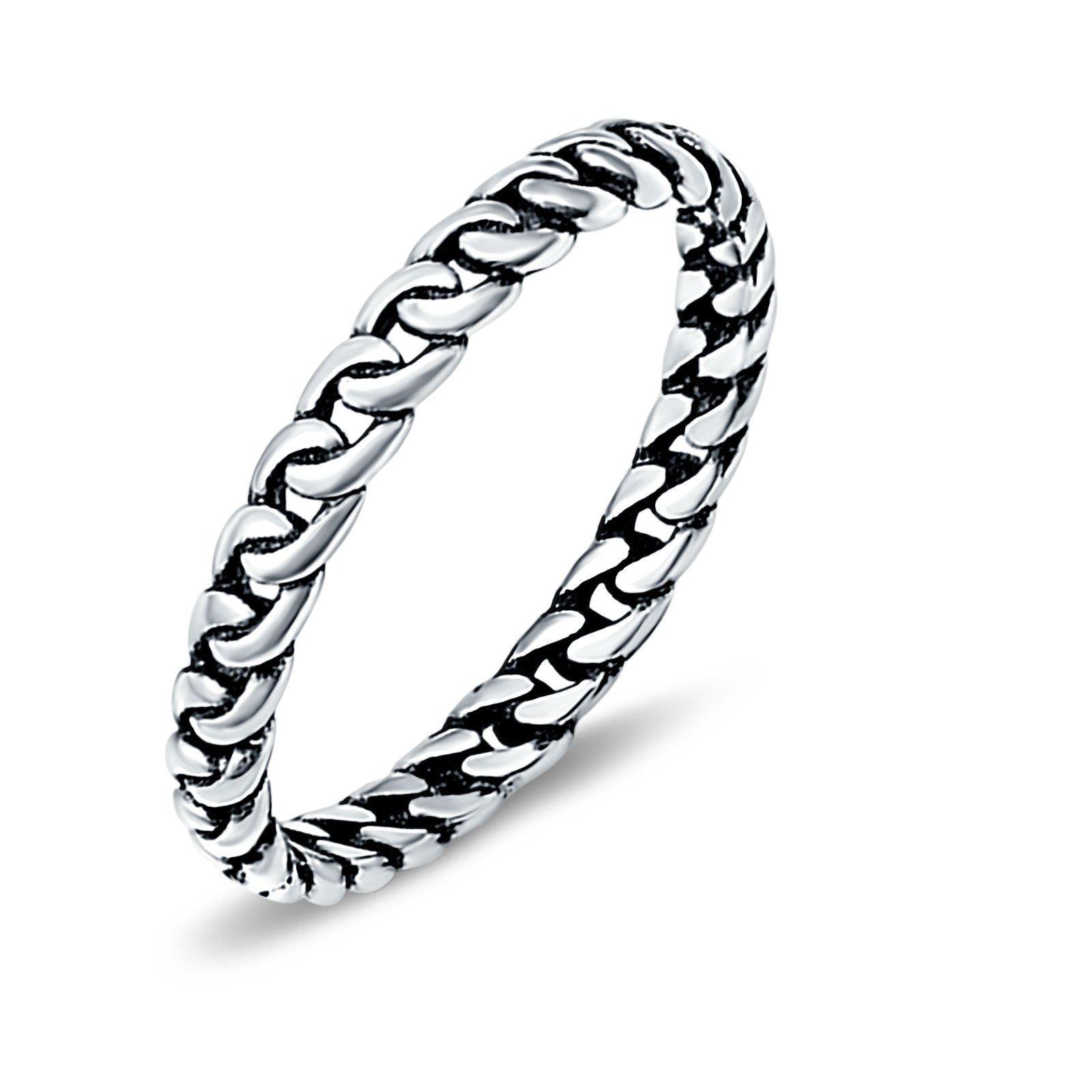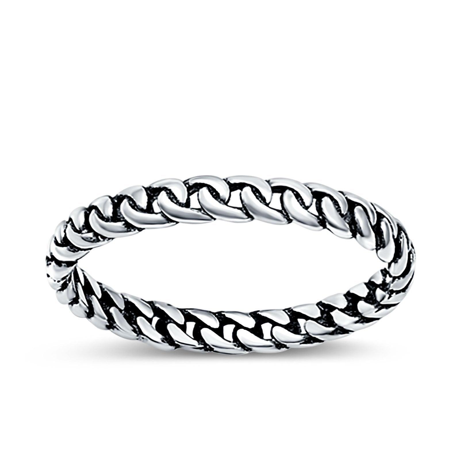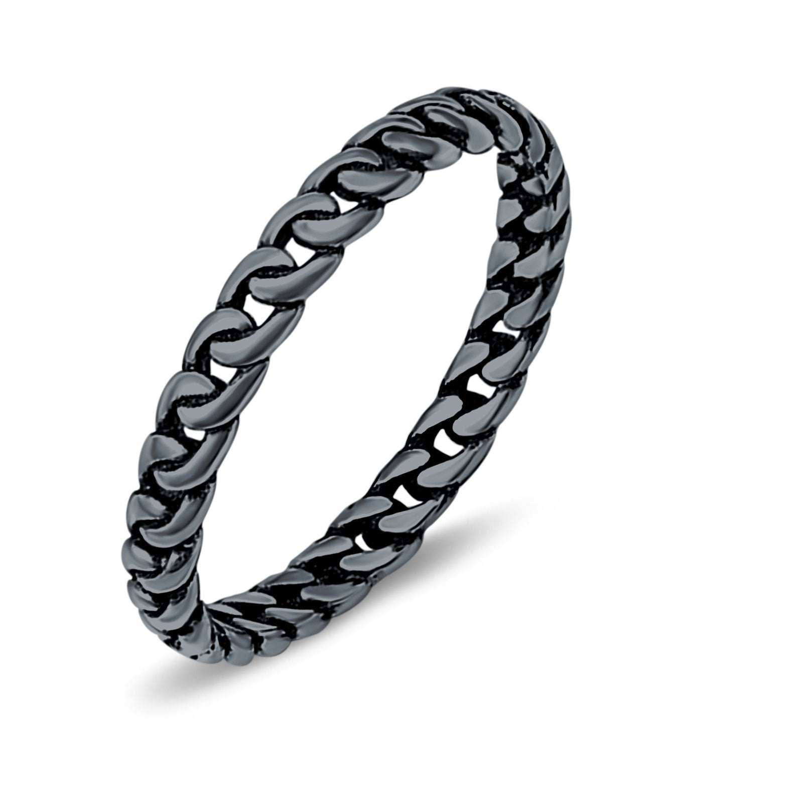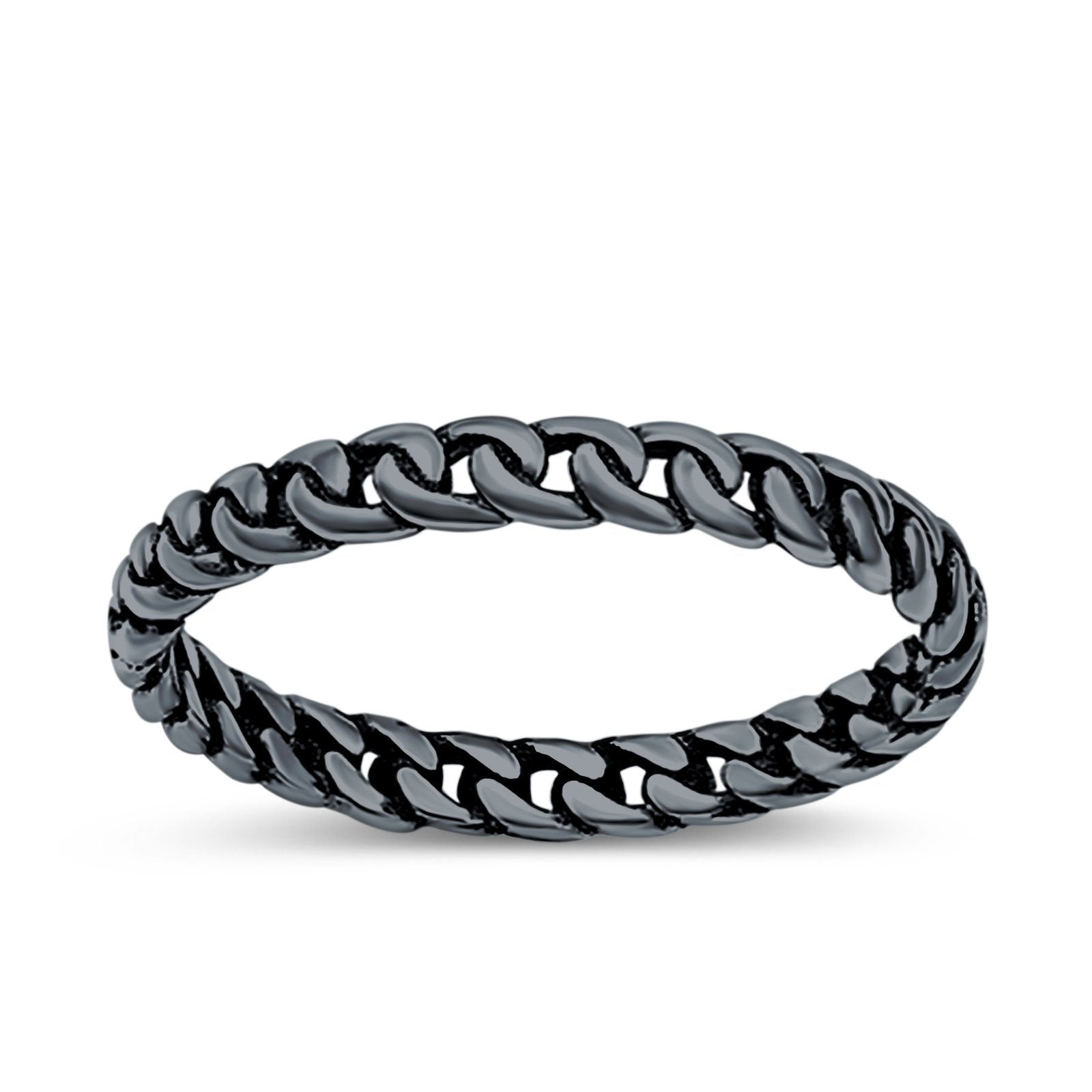 Chain Ring Oxidized Band Solid 925 Sterling Silver Thumb Ring (2.5mm)