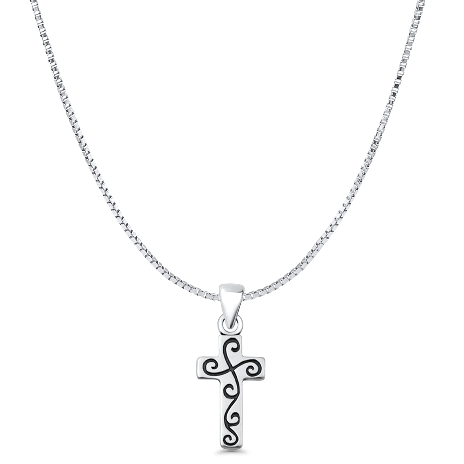 Cross Charm Pendant Box Chain Necklace Oxidized 925 Sterling Silver
