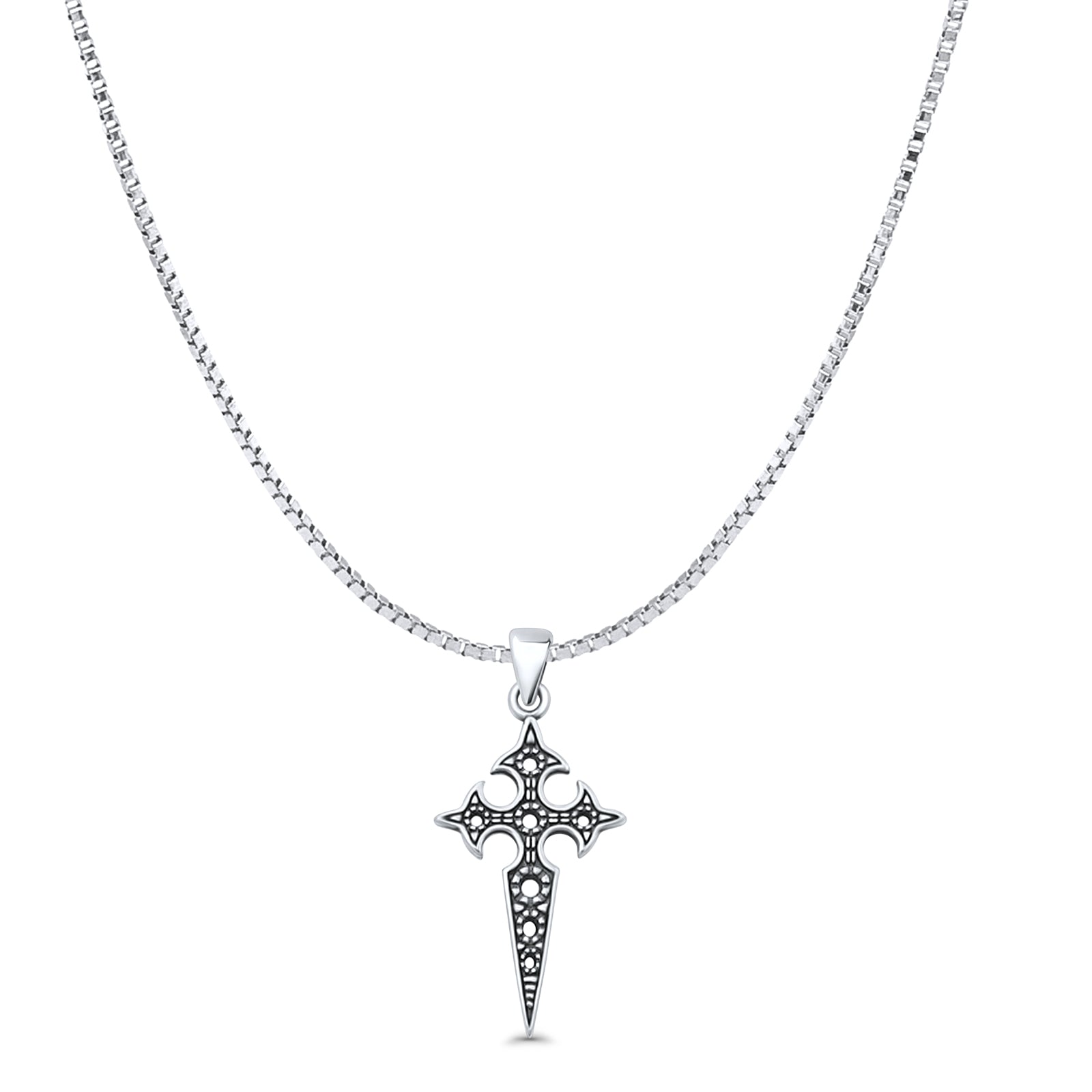 Cross Pendant Box Chain Necklace Oxidized 925 Sterling Silver