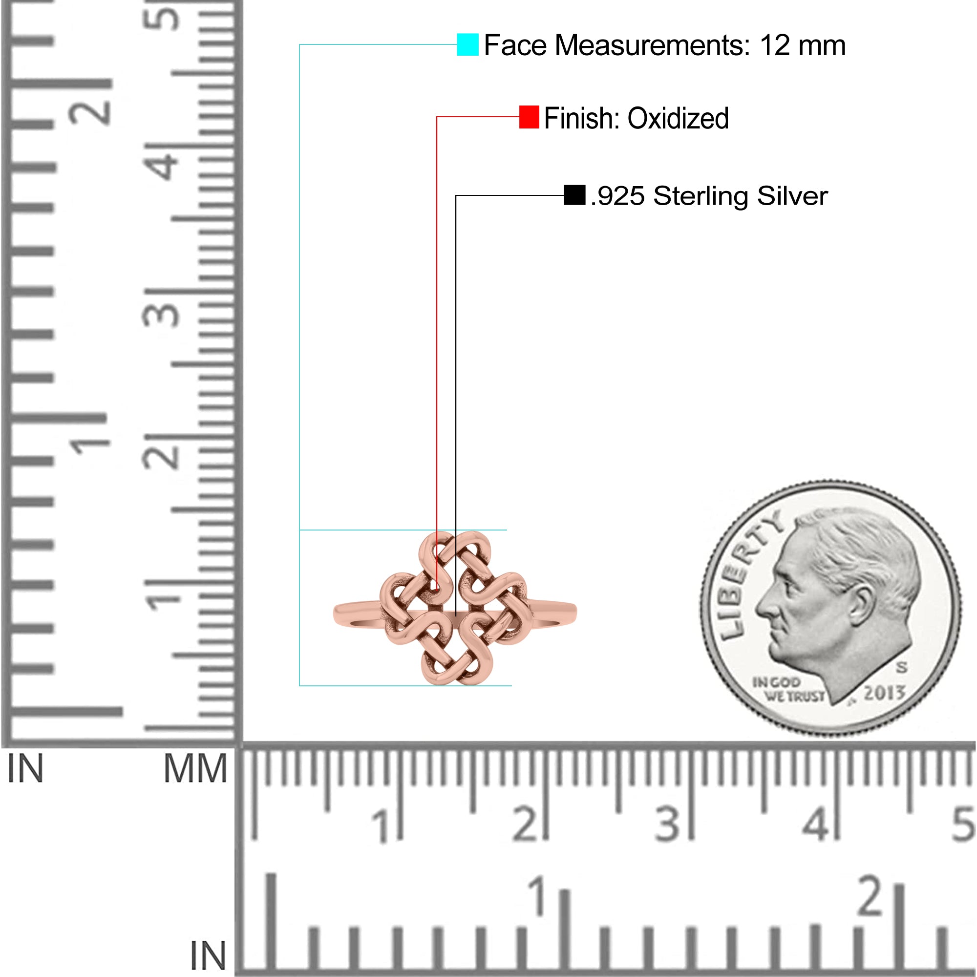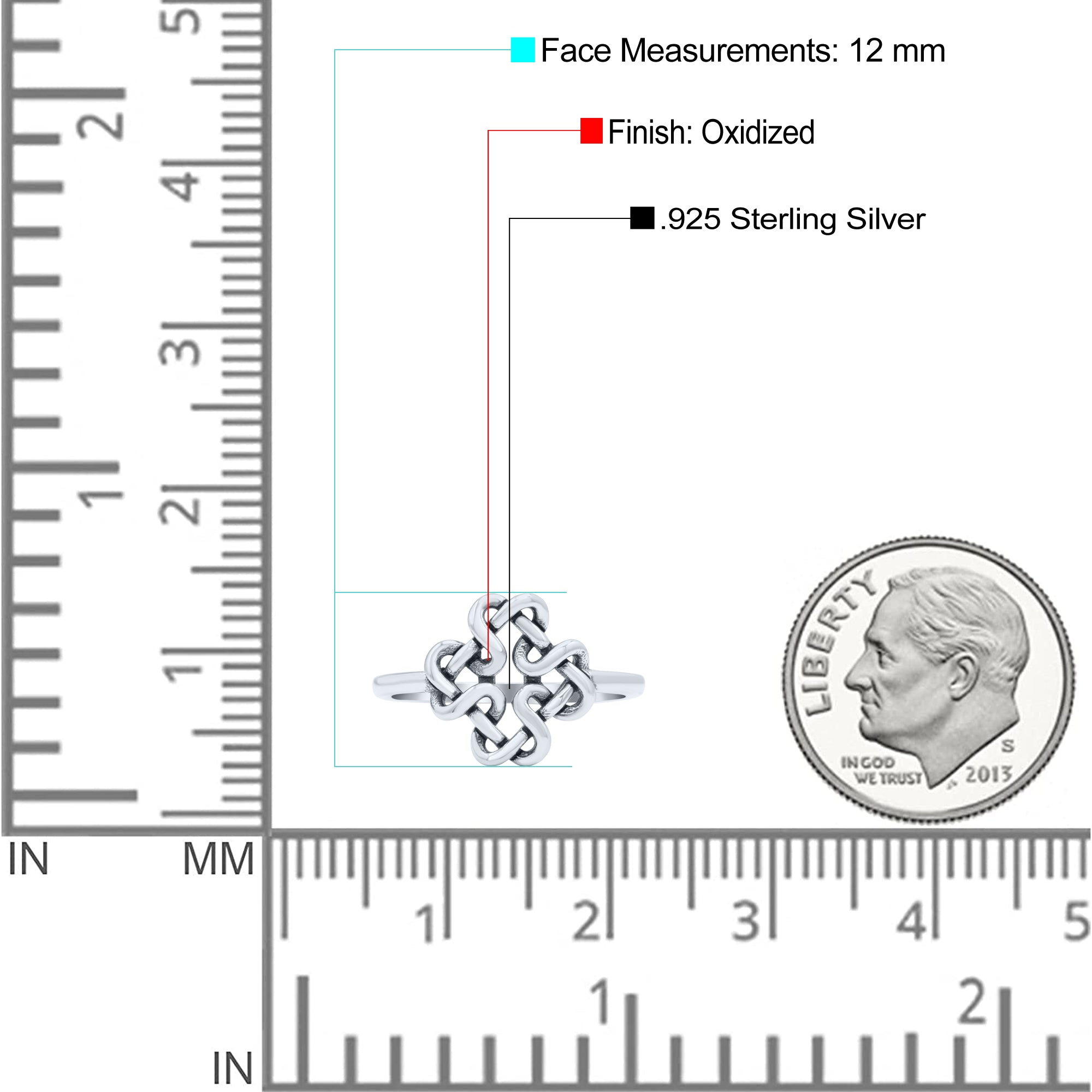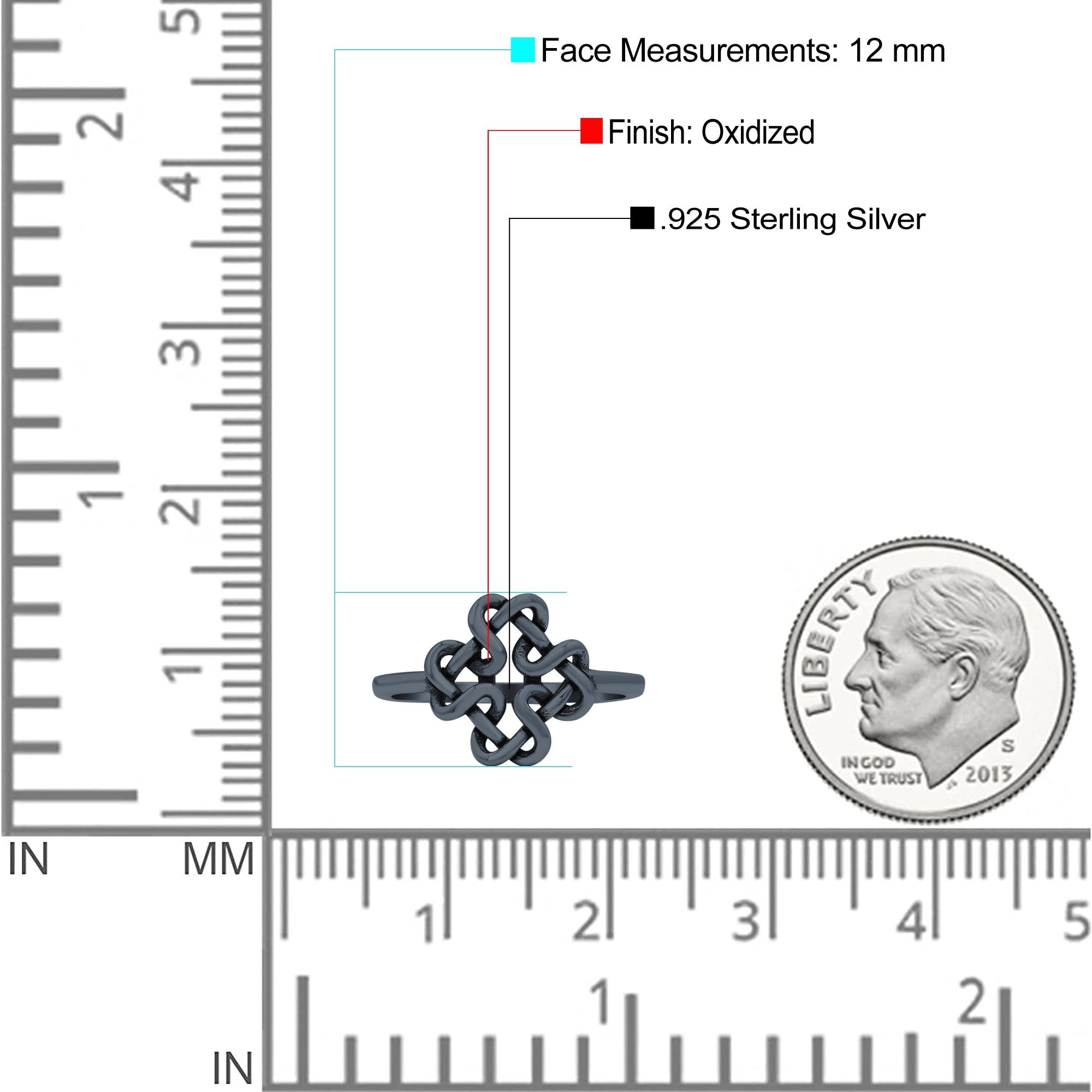 Dainty Braided Endless Celtic Knot Statement Oxidized Ring Band Solid 925 Sterling Silver Thumb Ring (12mm)