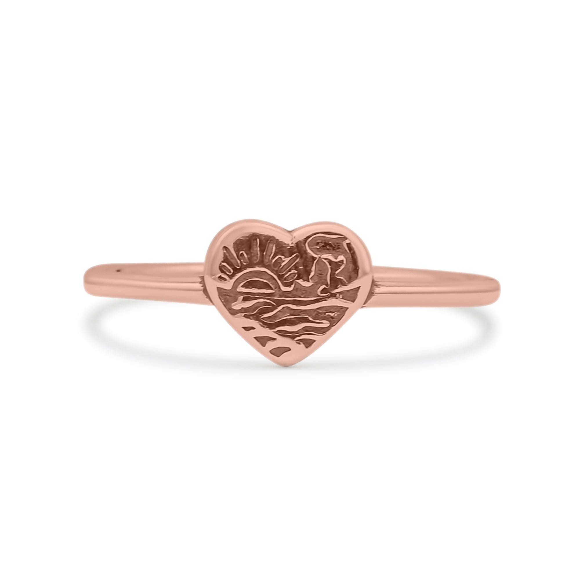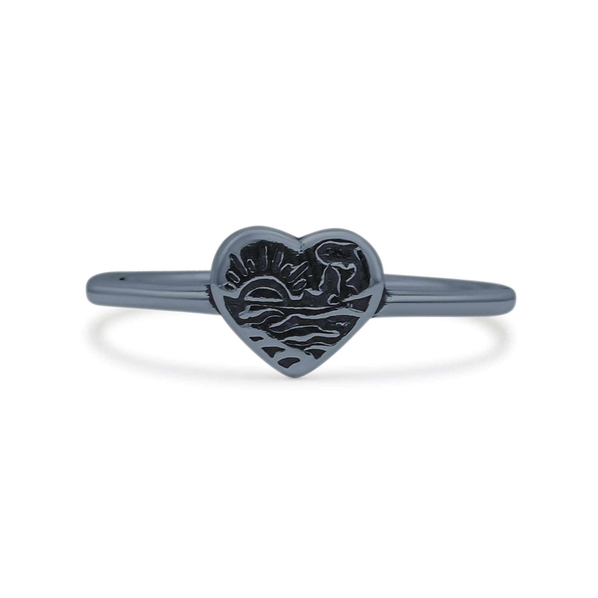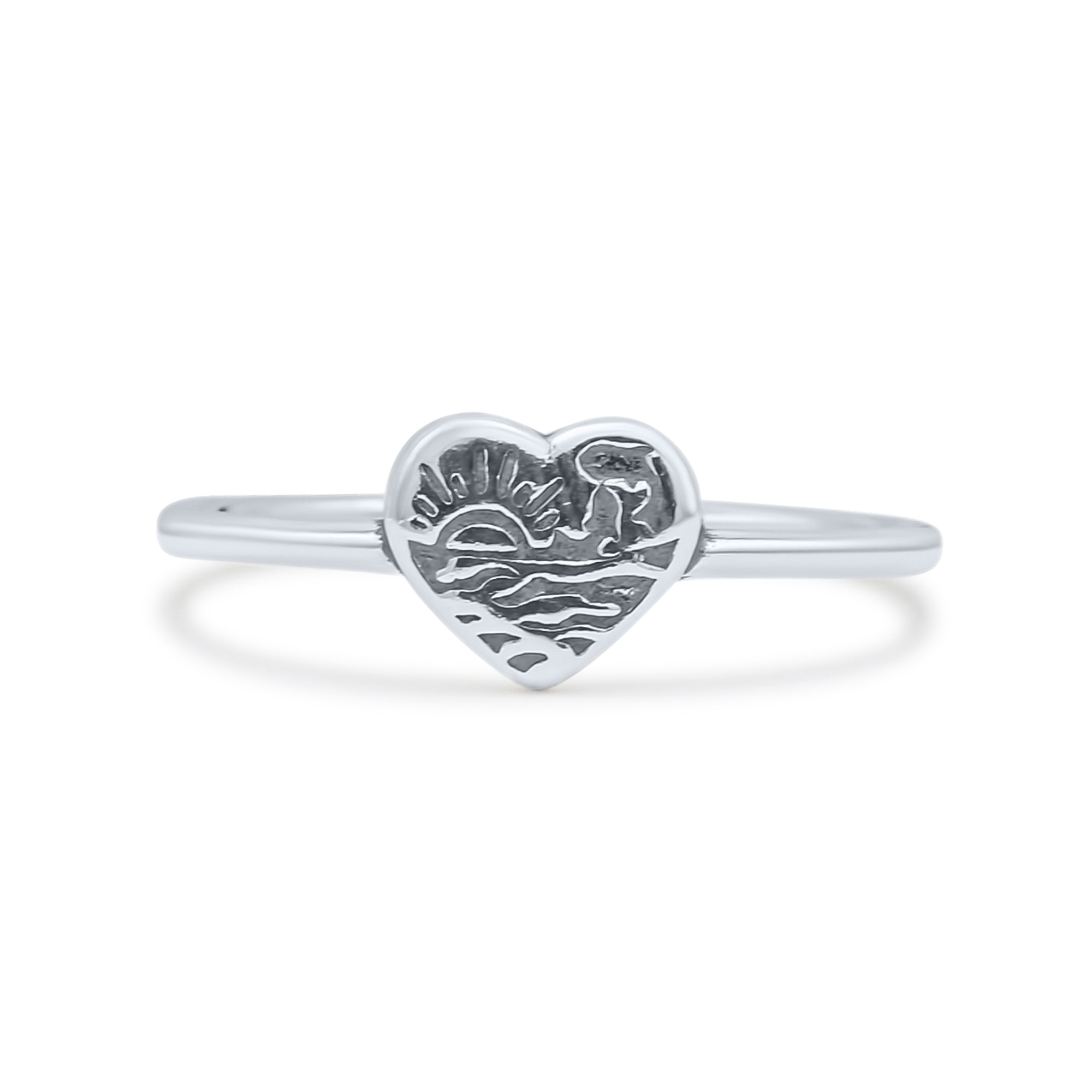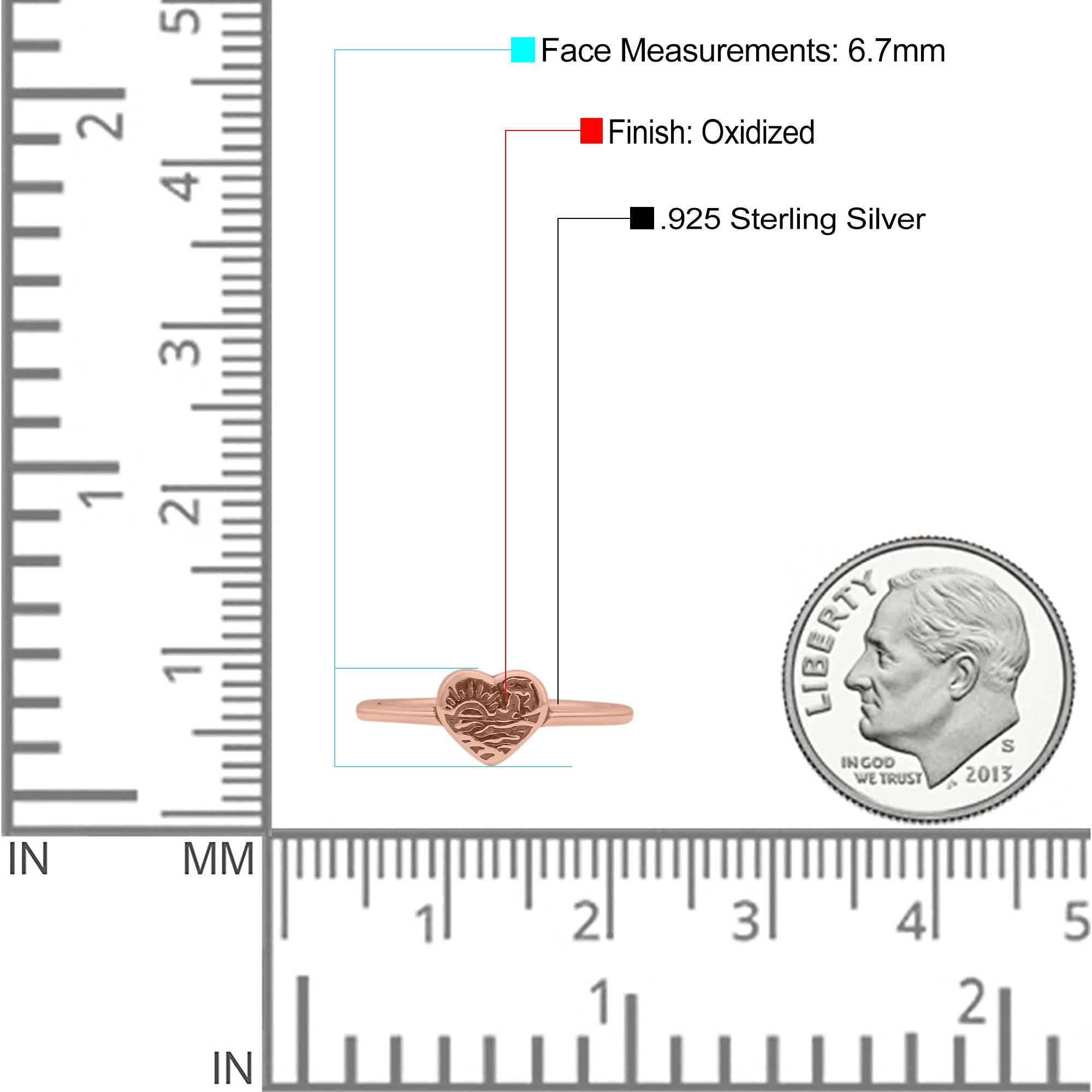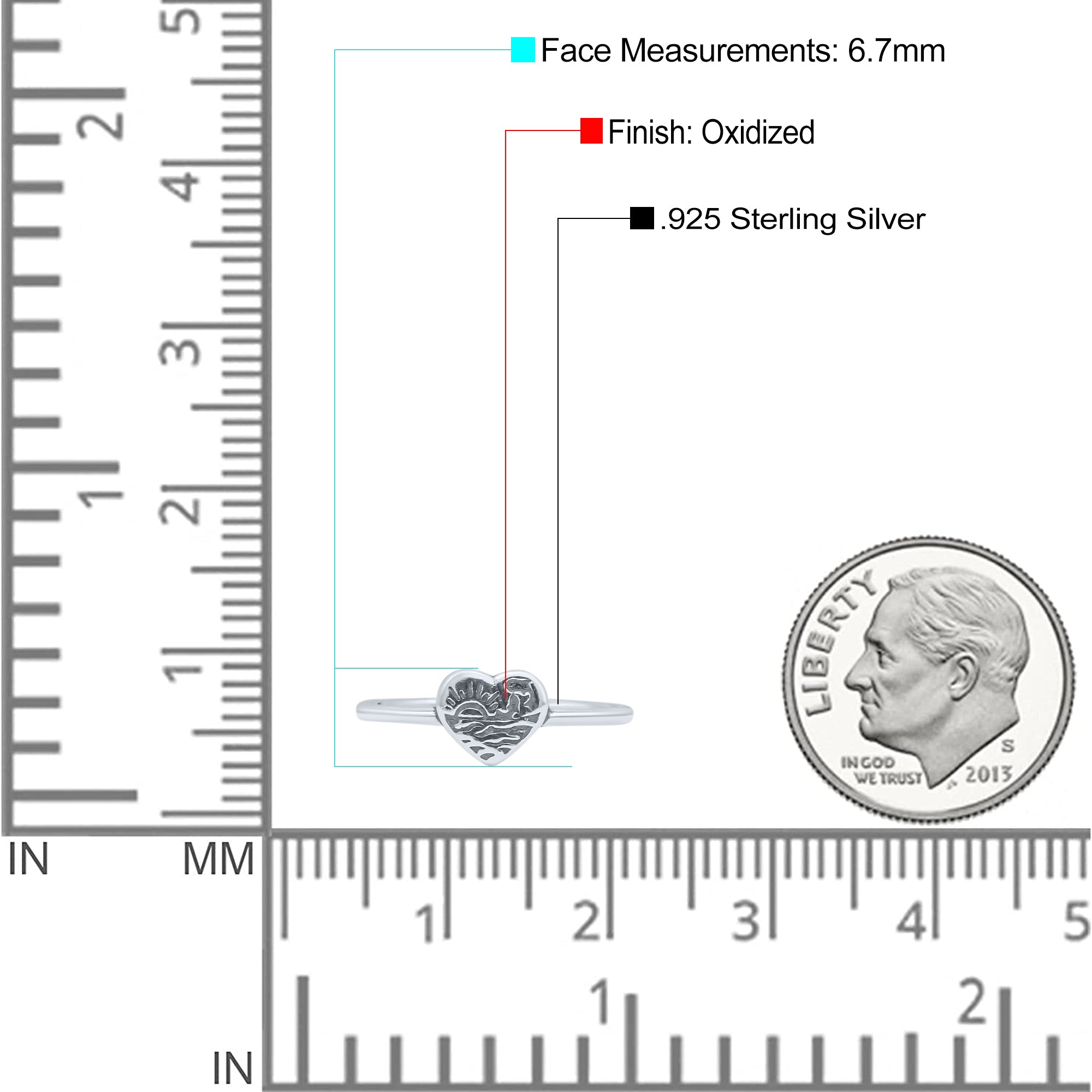 Dainty Small Heart Shape With Beach Ocean Wave Dolphin Engraved Scenery Trendy Oxidized Band Solid 925 Sterling Silver Thumb Ring (6.7mm)