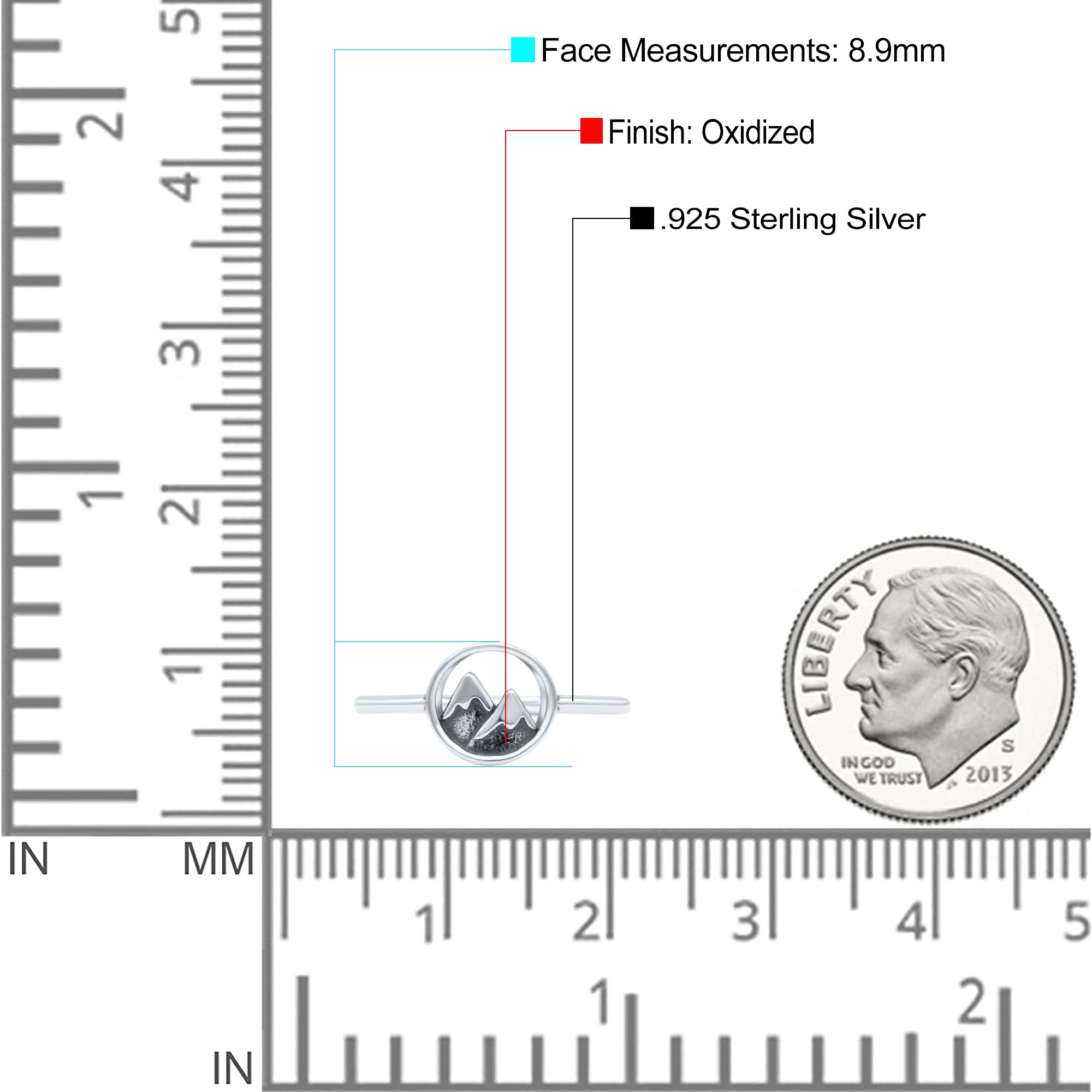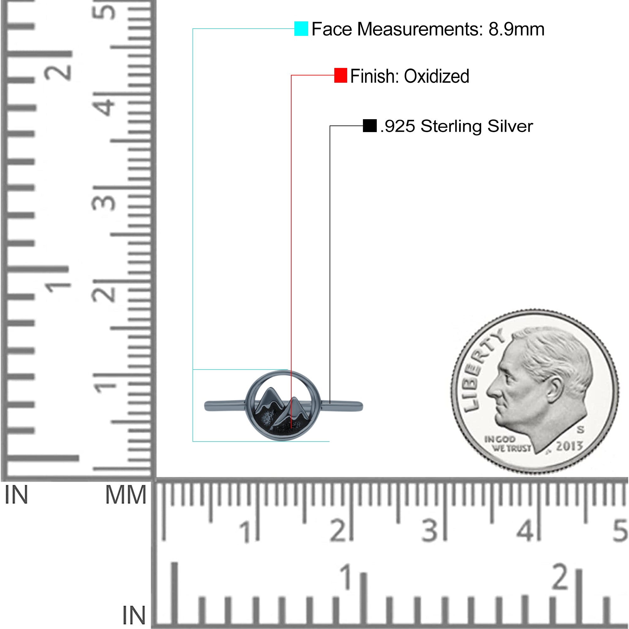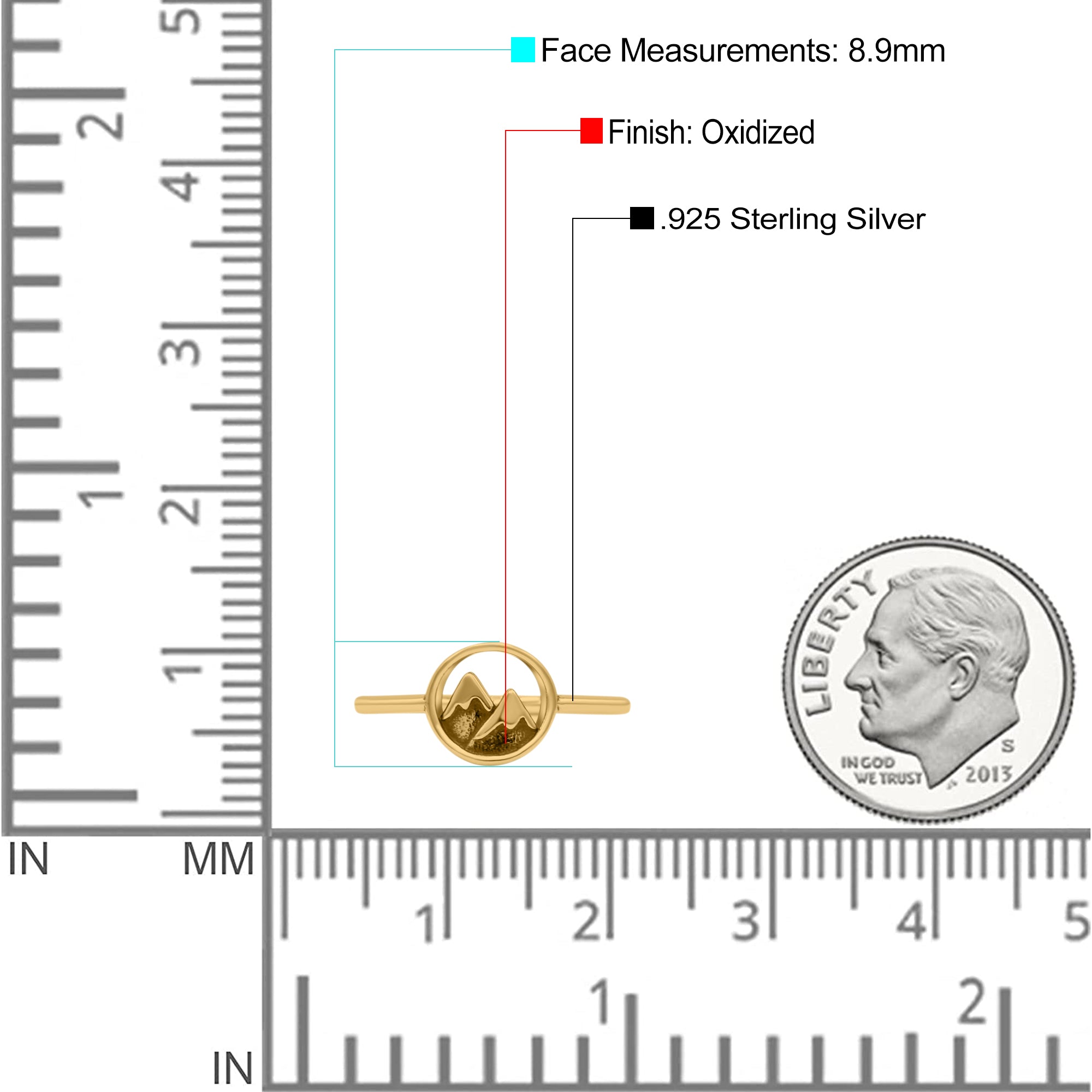 Dainty Snow Capped Mountain Unique Nature Lover Oxidized Finish Statement Thumb Ring Solid 925 Sterling Silver Band (8.9mm)