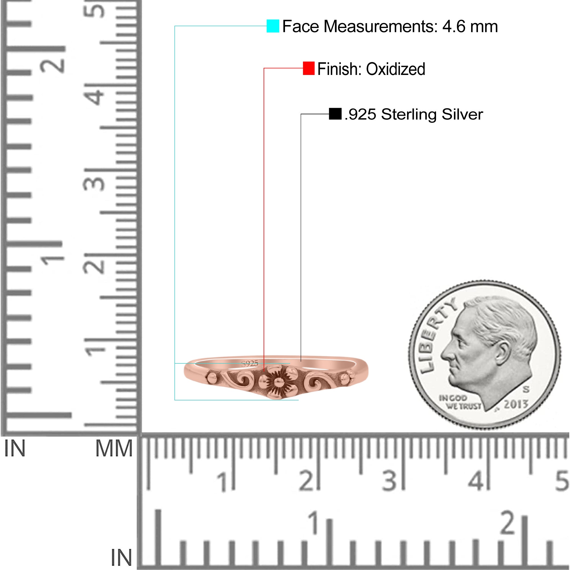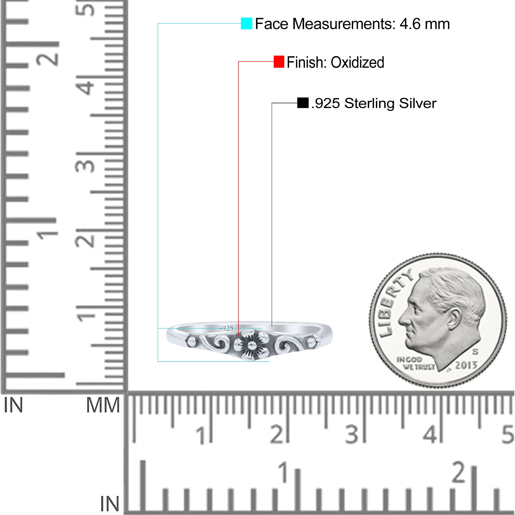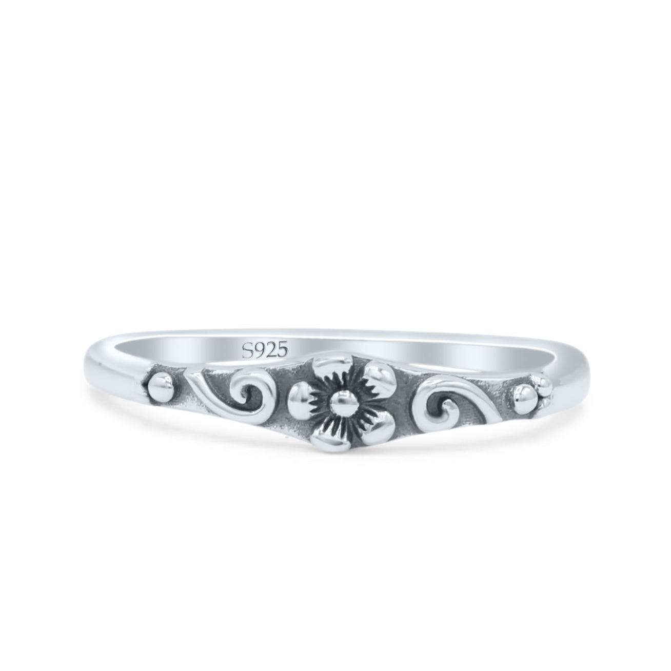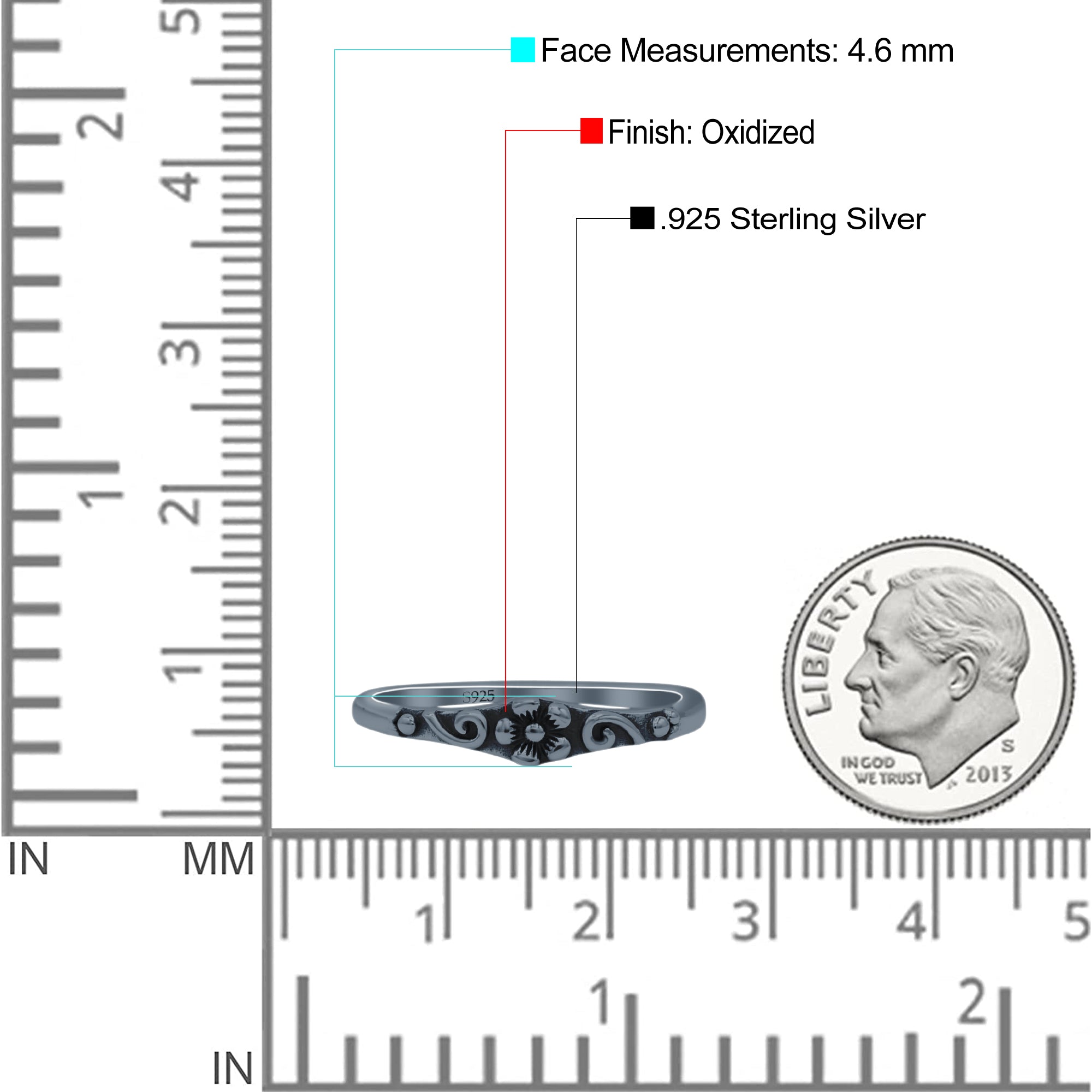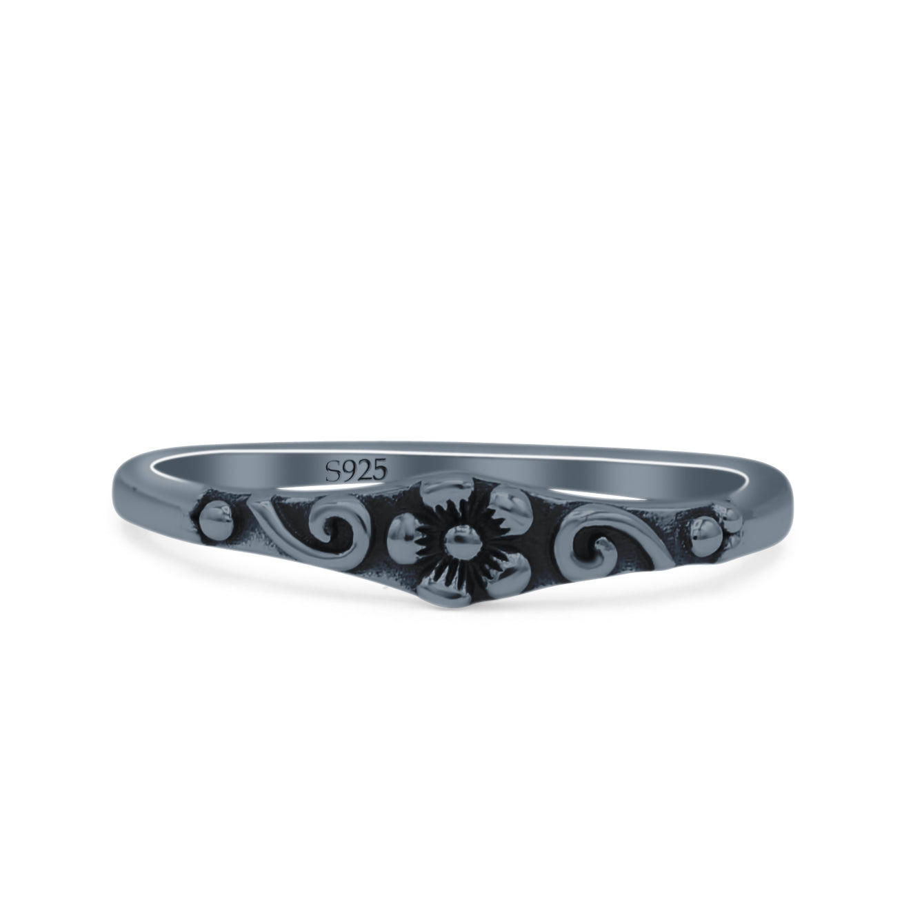 Delicate Elegant Bali Flower Beauty Engraved Oxidized Fashion Band Solid 925 Sterling Silver Thumb Ring (4.6mm)