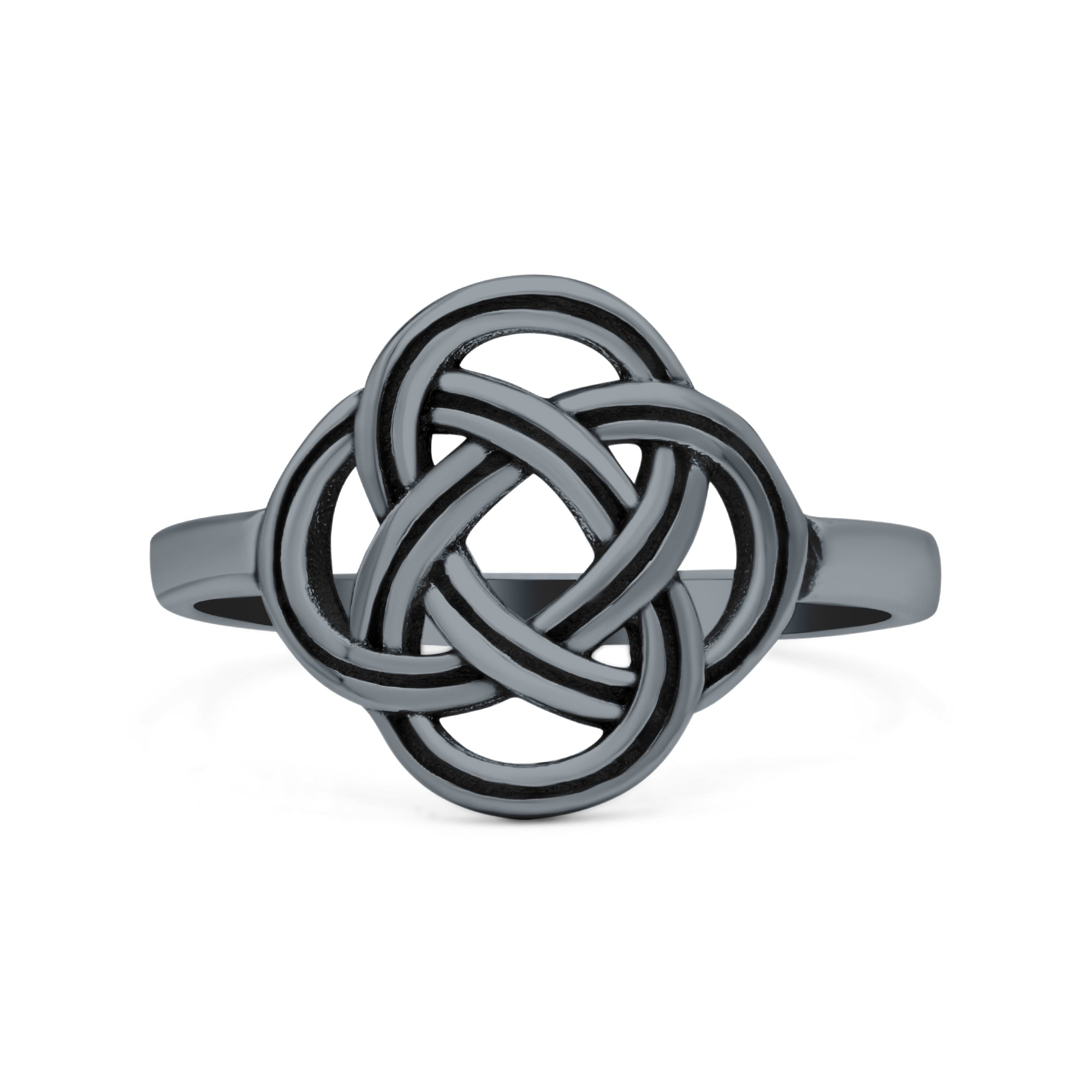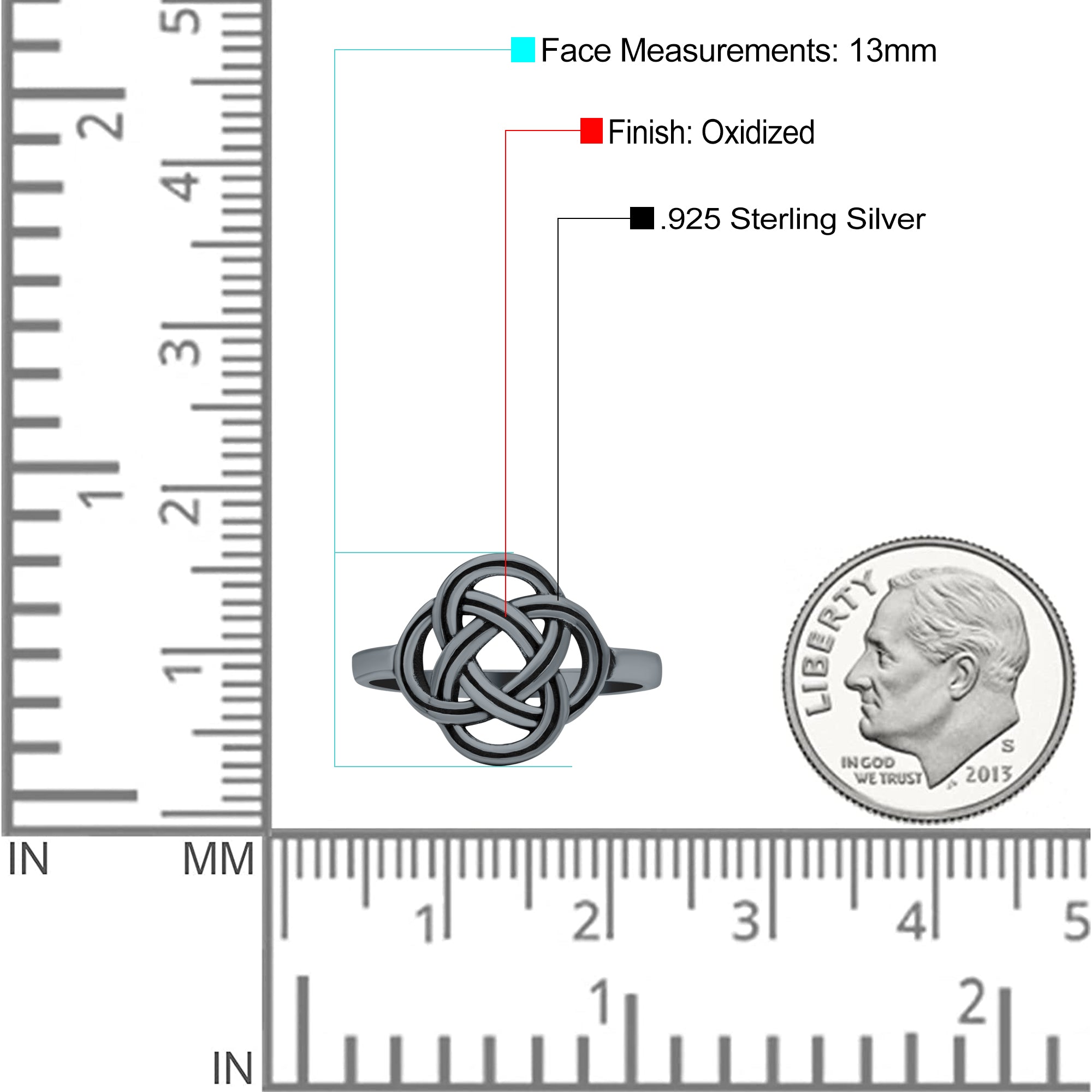 Designer Rounded Flower Celtic Knot Weave Oxidized Band Thumb Ring (13mm)