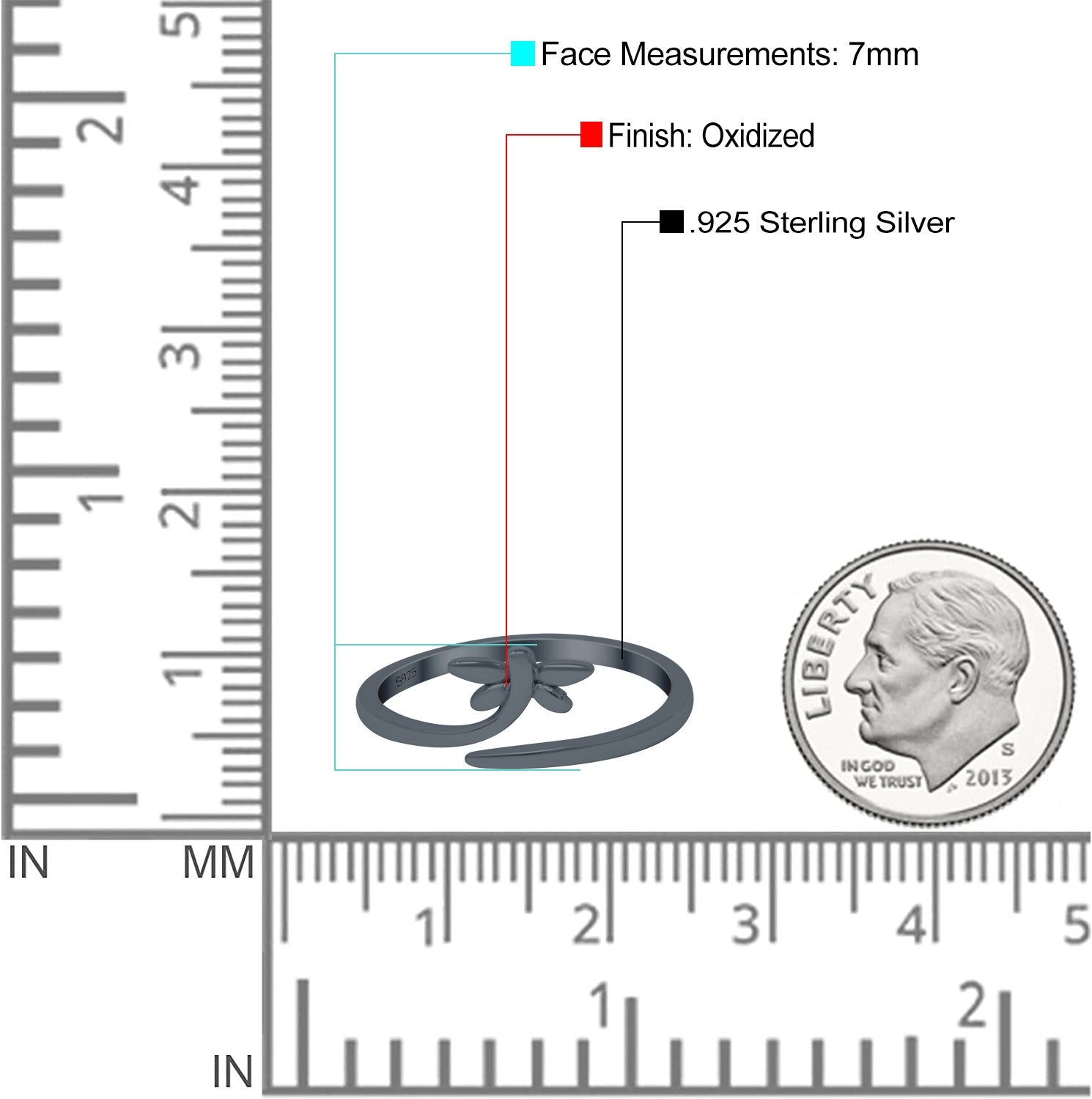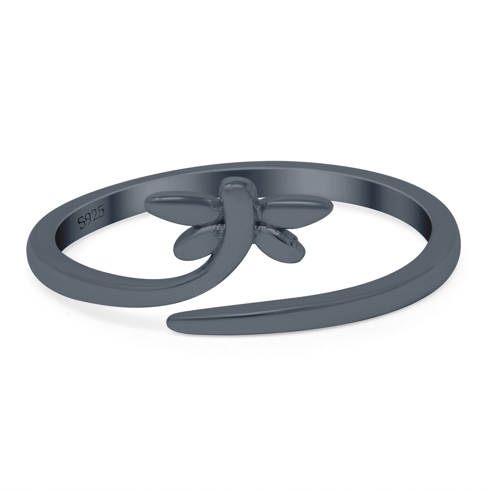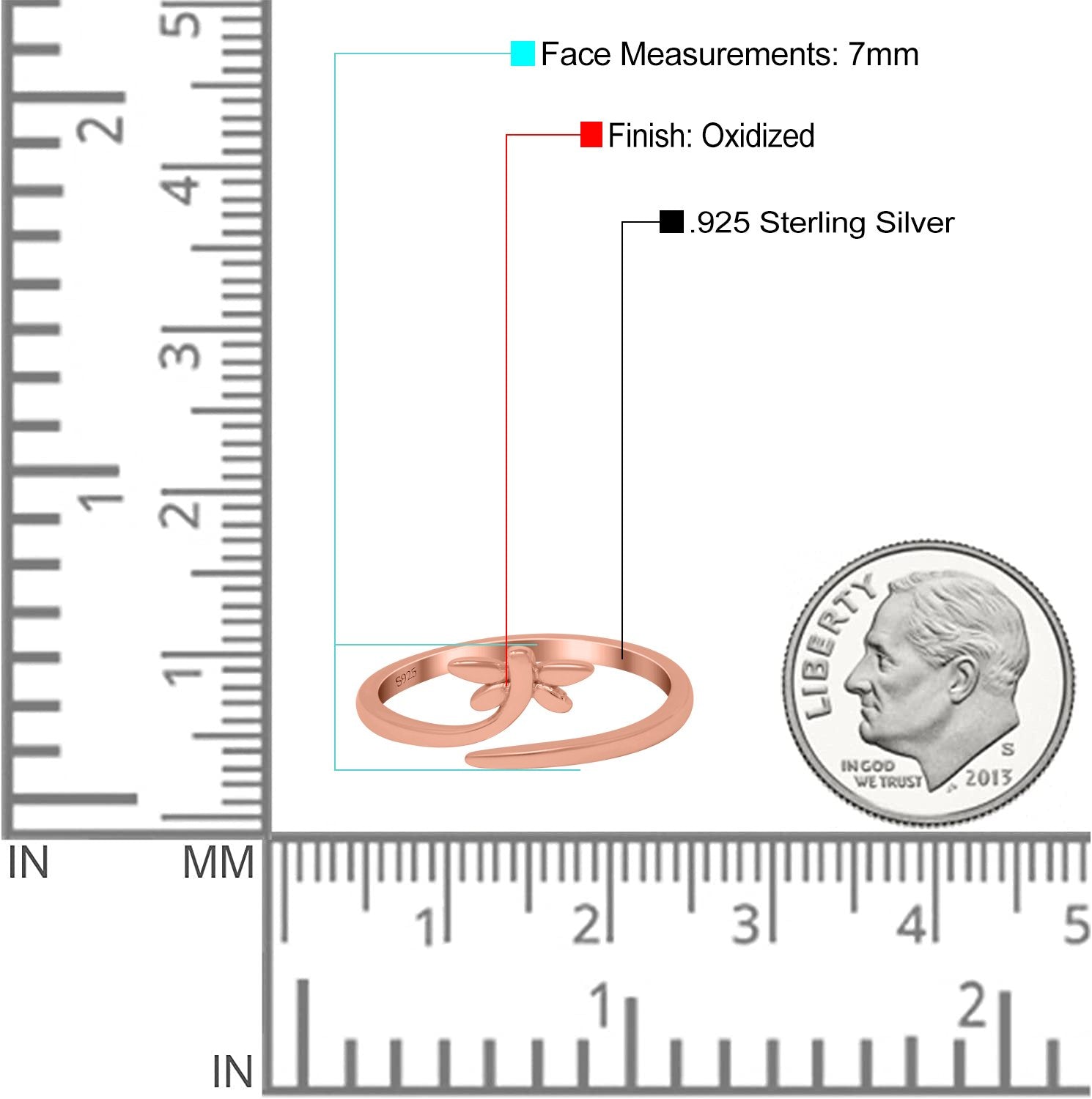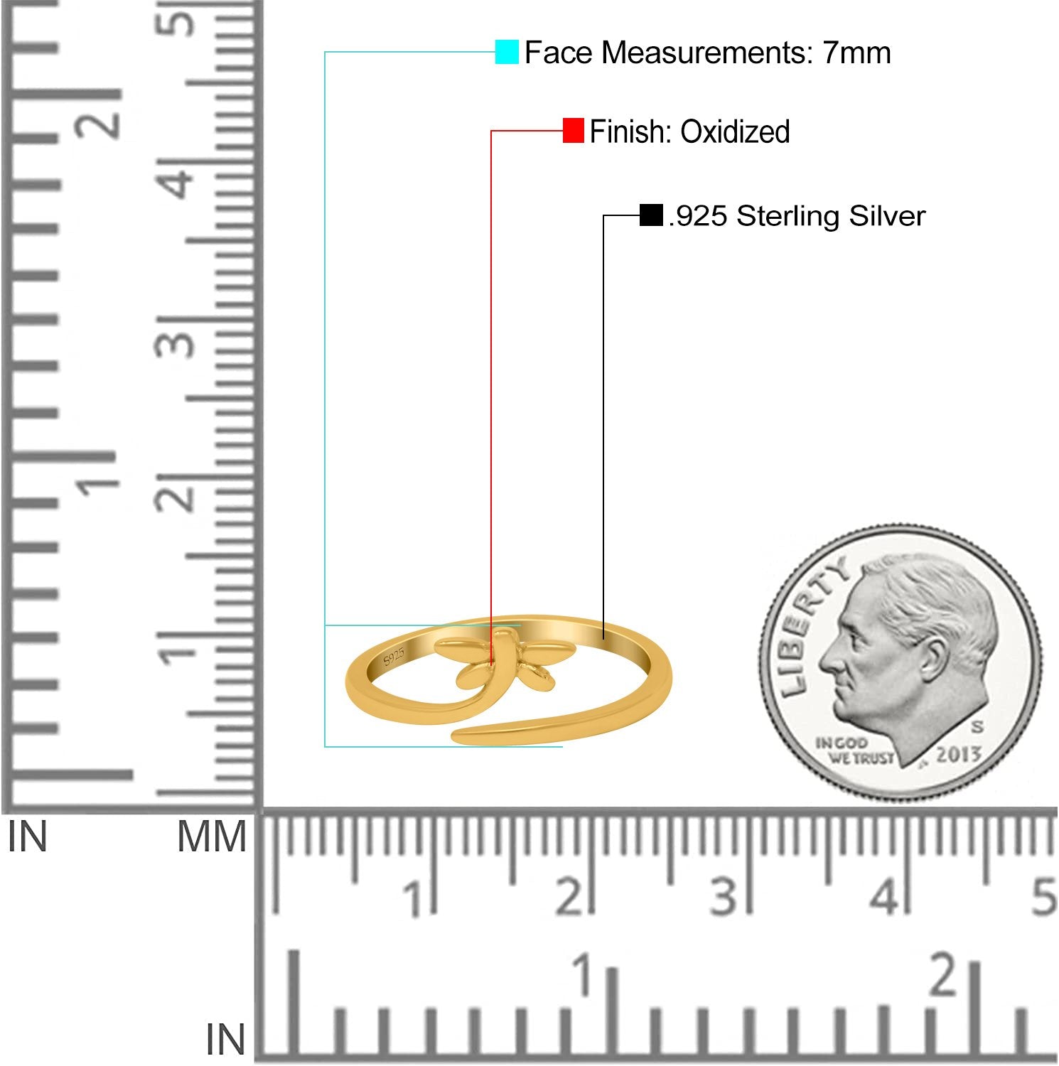 Dragonfly Band Oxidized Thumb Ring Solid 925 Sterling Silver (7mm)