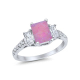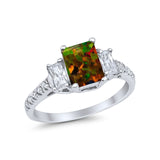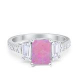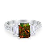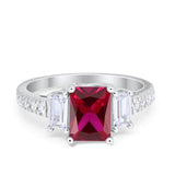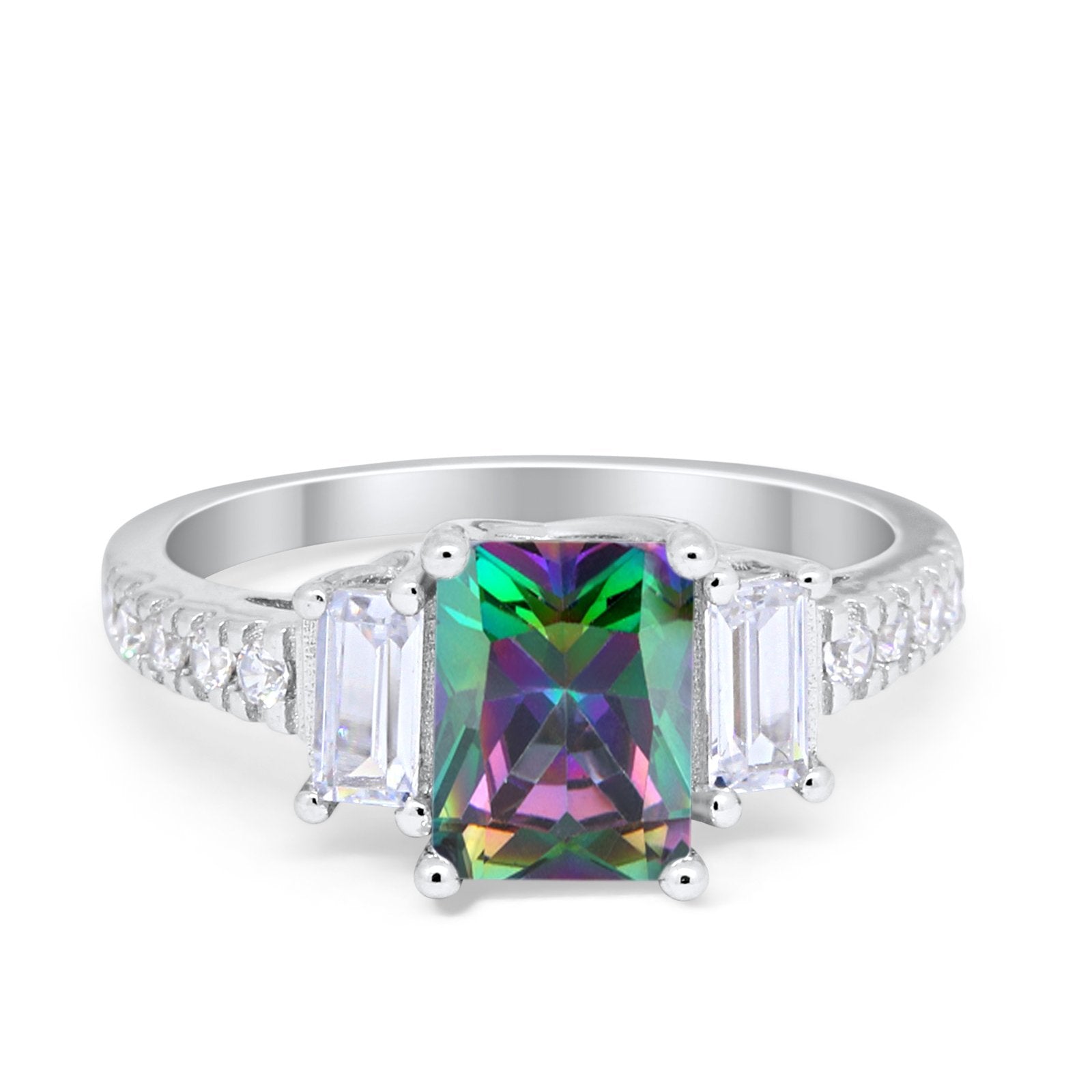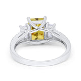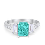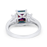 Emerald Cut Engagement Ring Round Simulated Cubic Zirconia 925 Sterling Silver