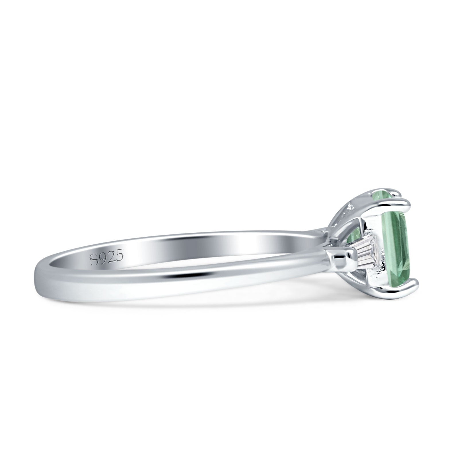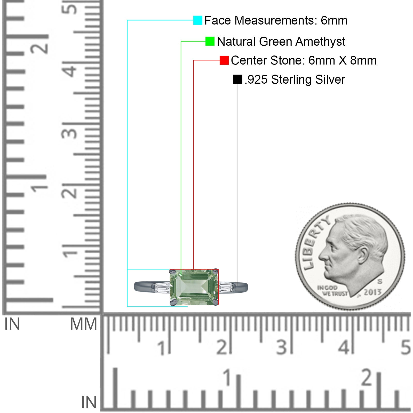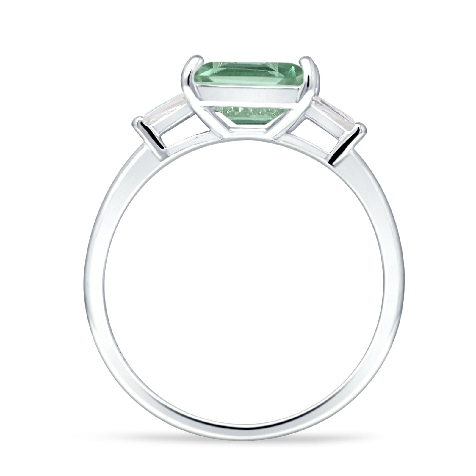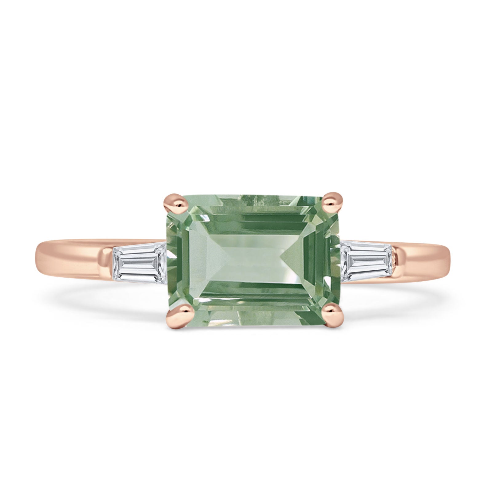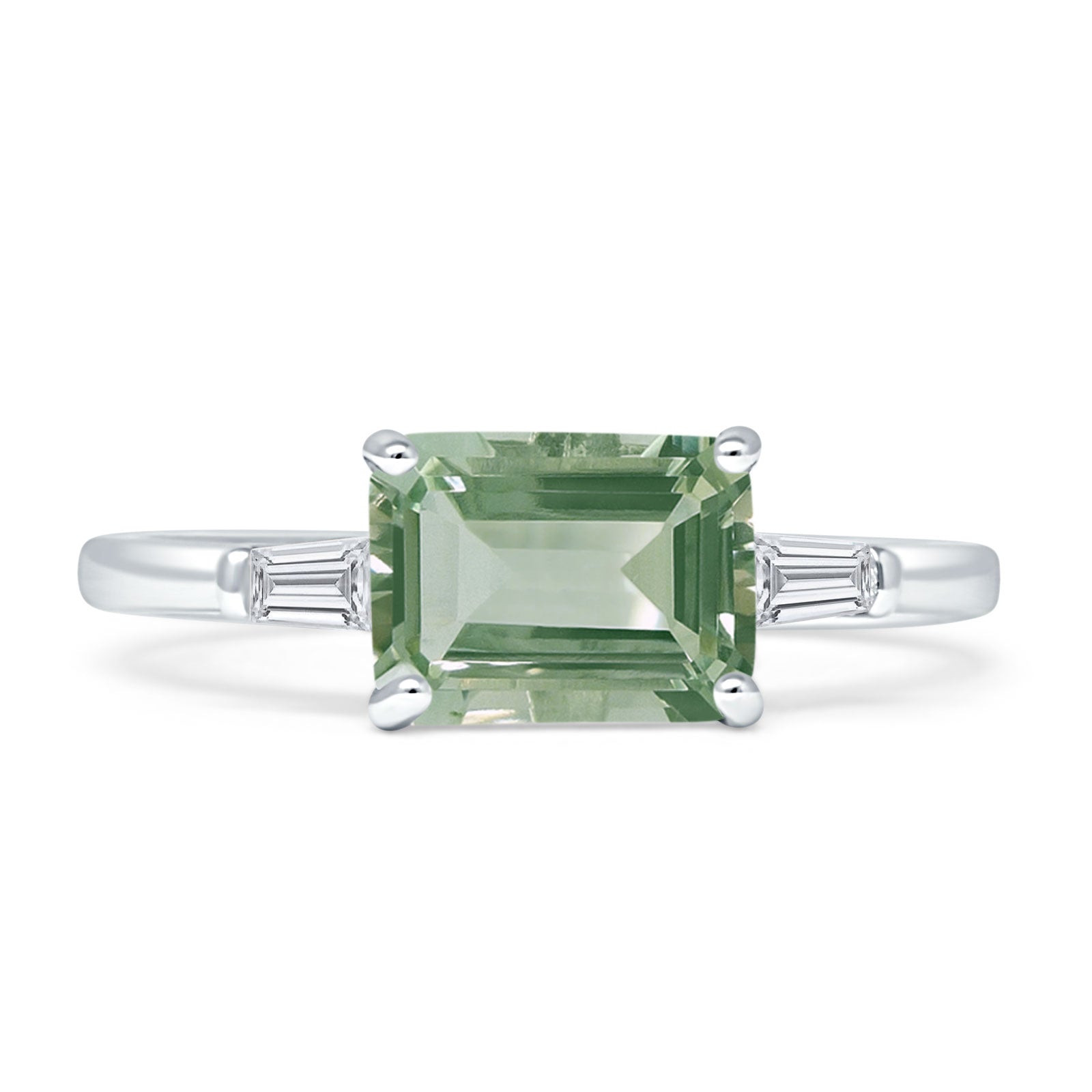 Emerald Cut Natural Green Amethyst Prasiolite Solitaire Trio Ring 925 Sterling Silver