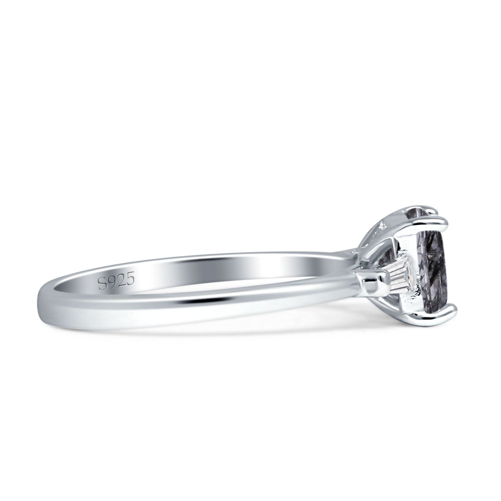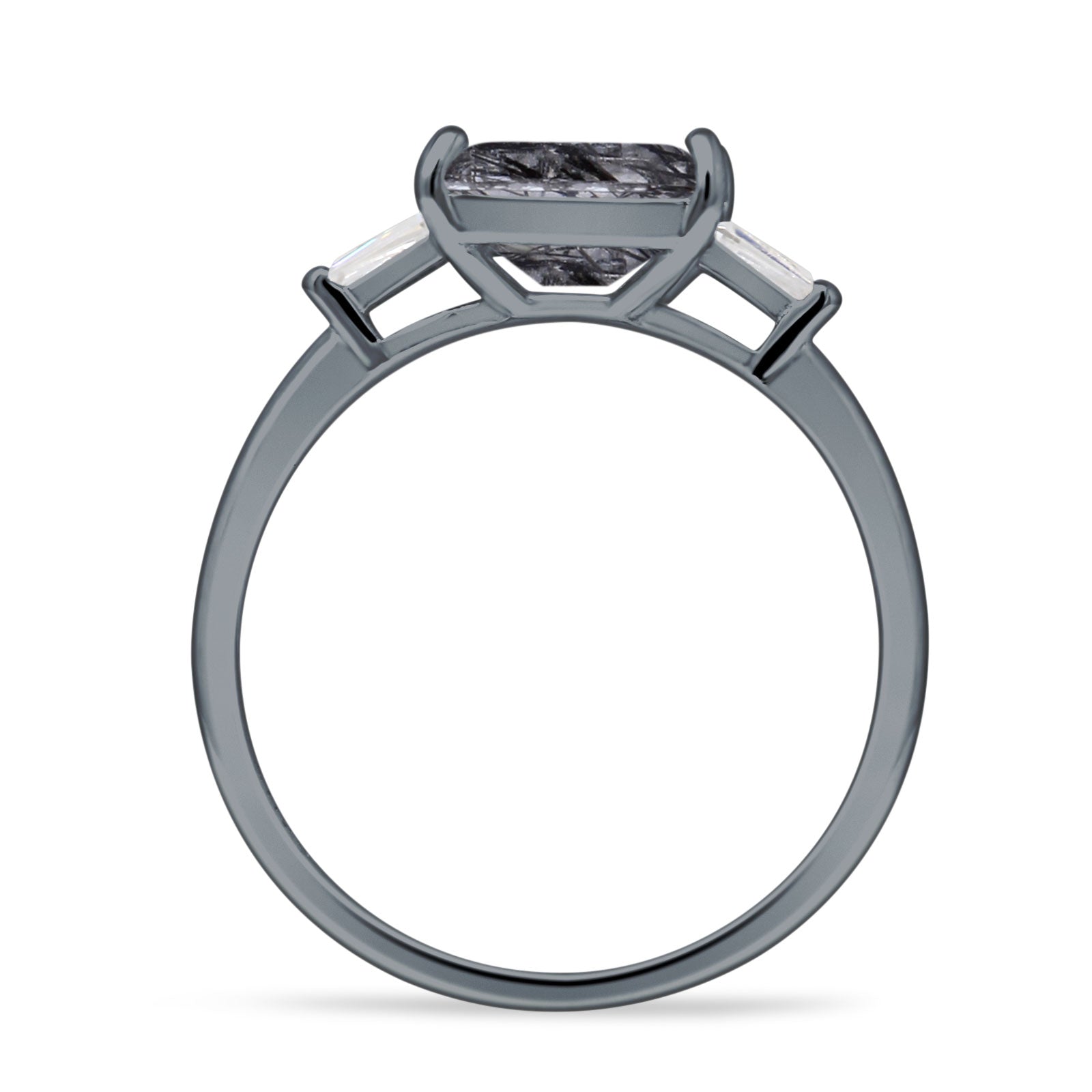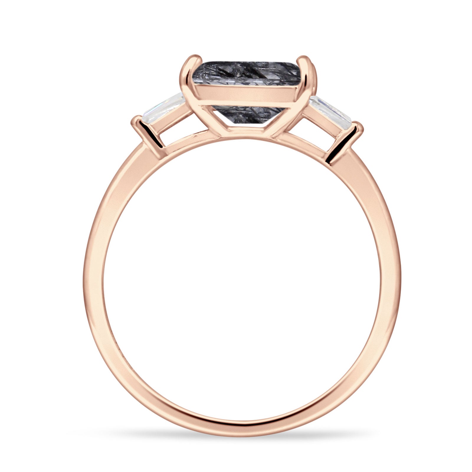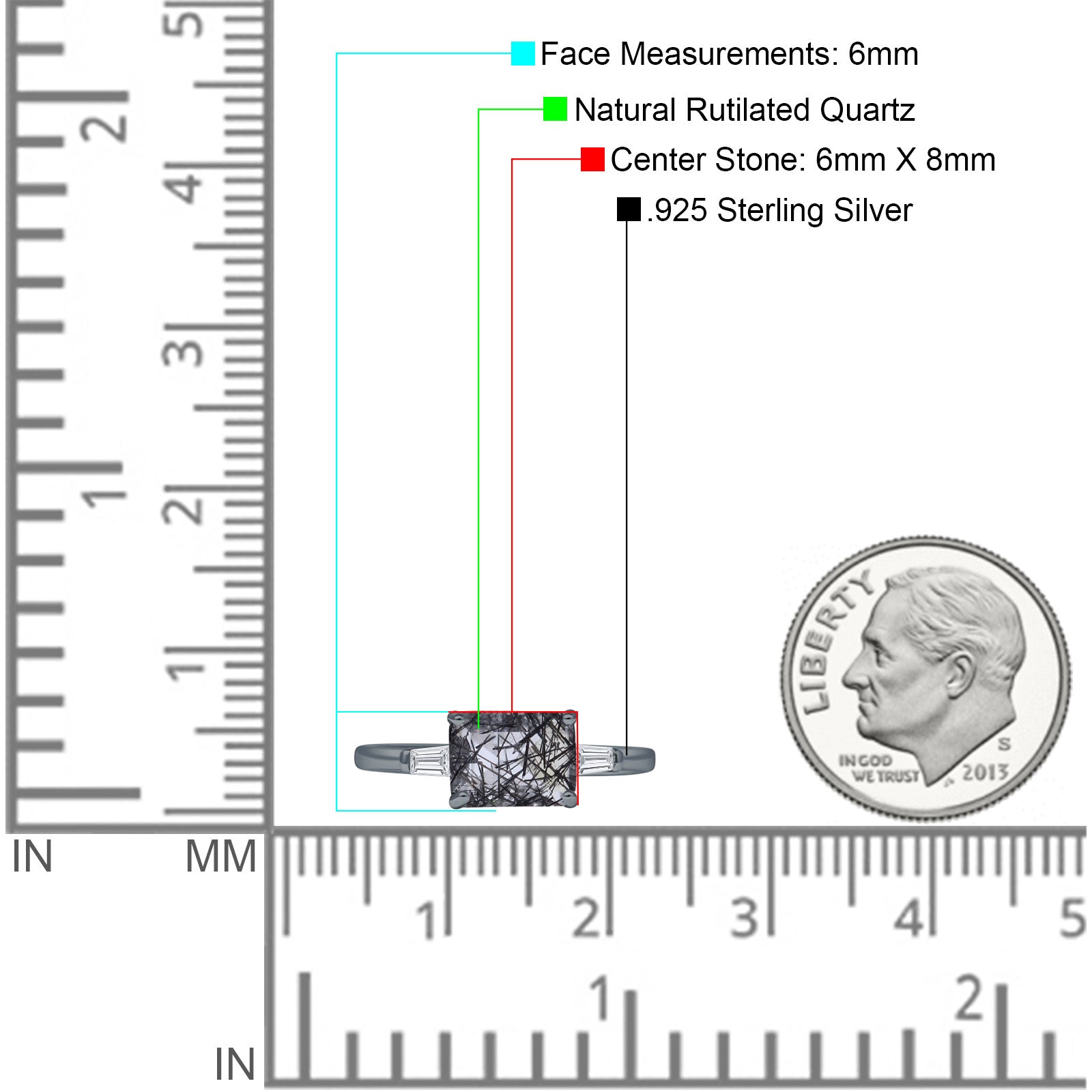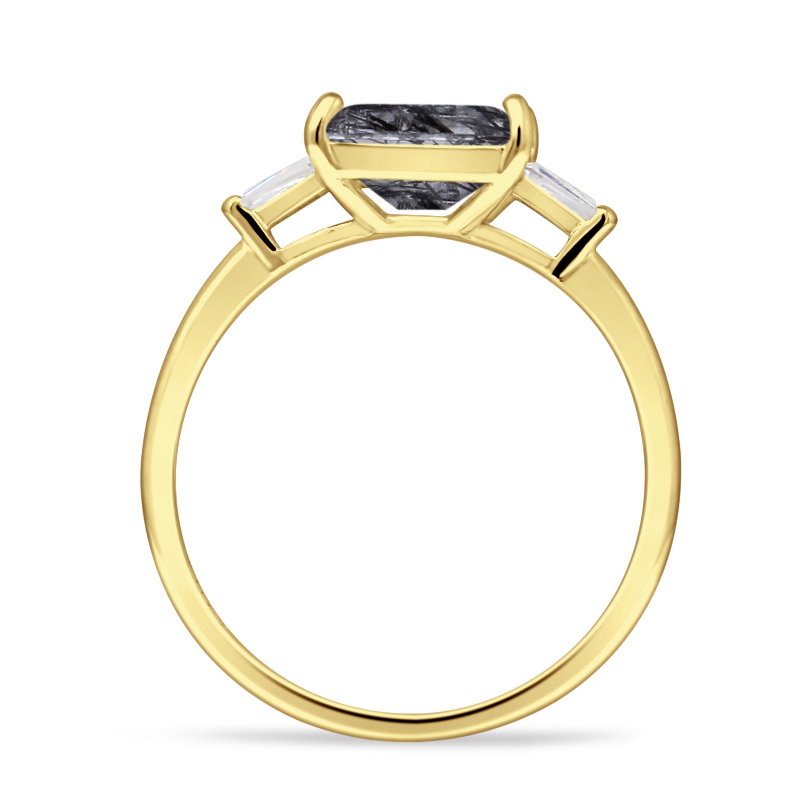 Emerald Cut Natural Rutilated Quartz Solitaire Trio Ring 925 Sterling Silver