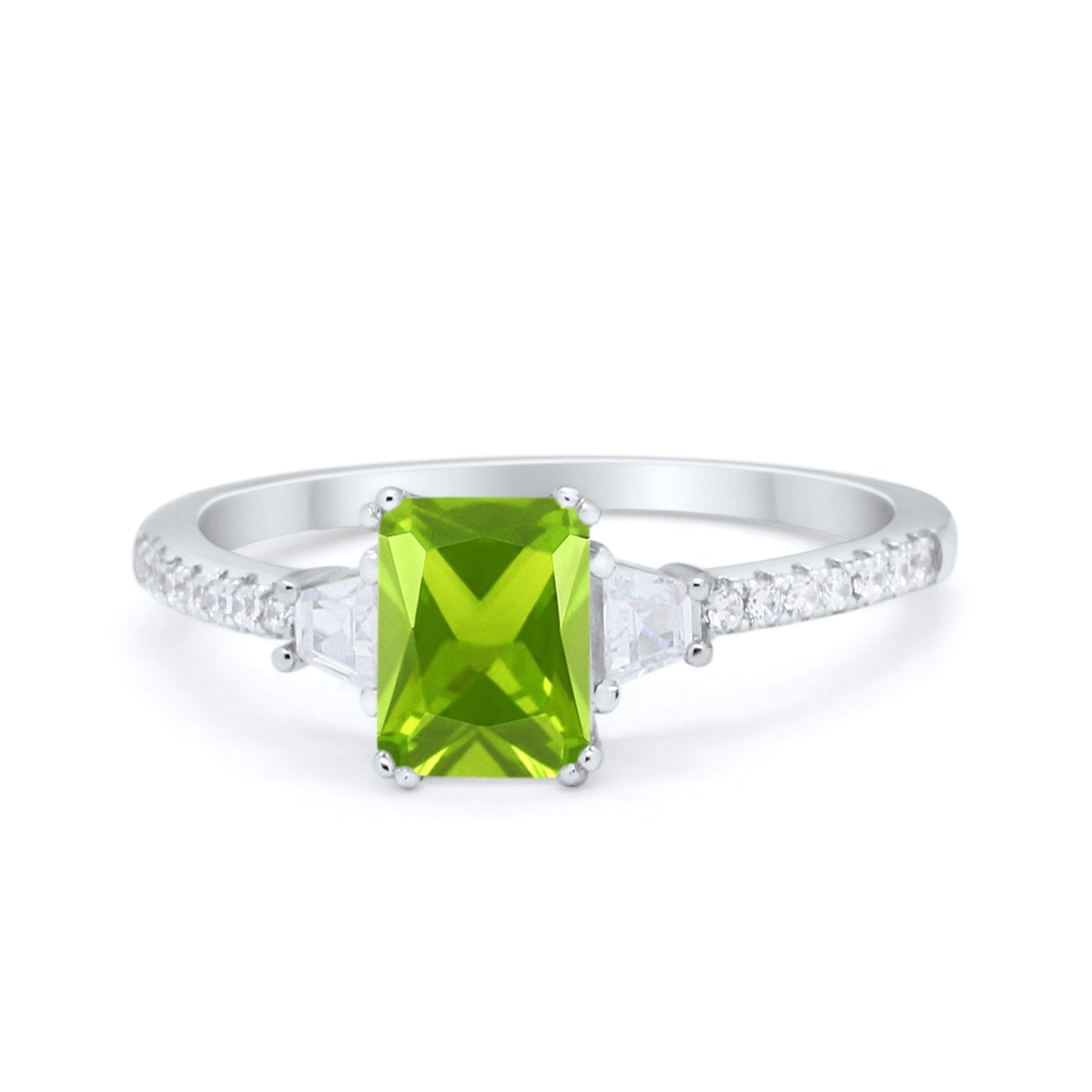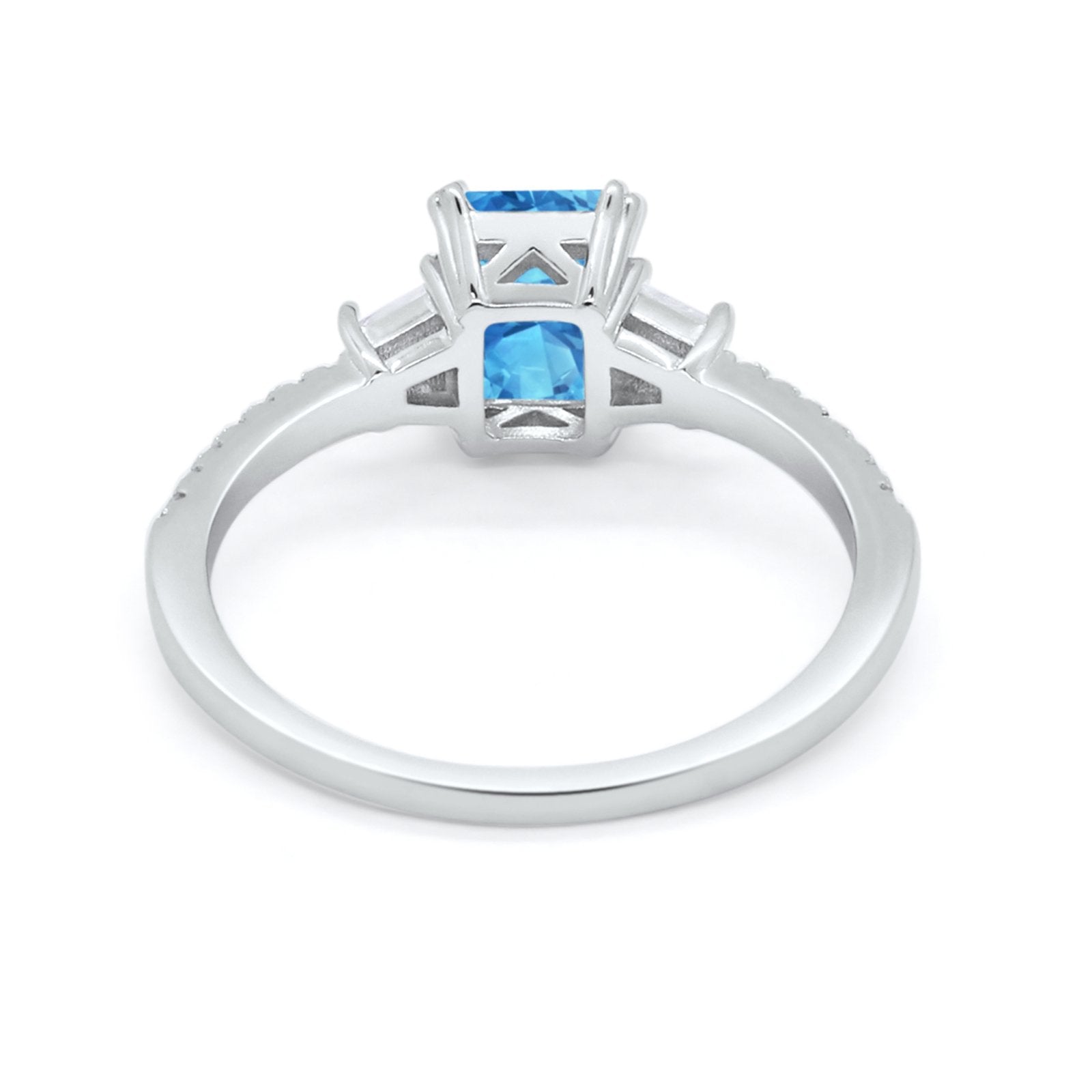 Emerald Cut Three Stone Wedding Ring Round Cubic Zirconia 925 Sterling Silver