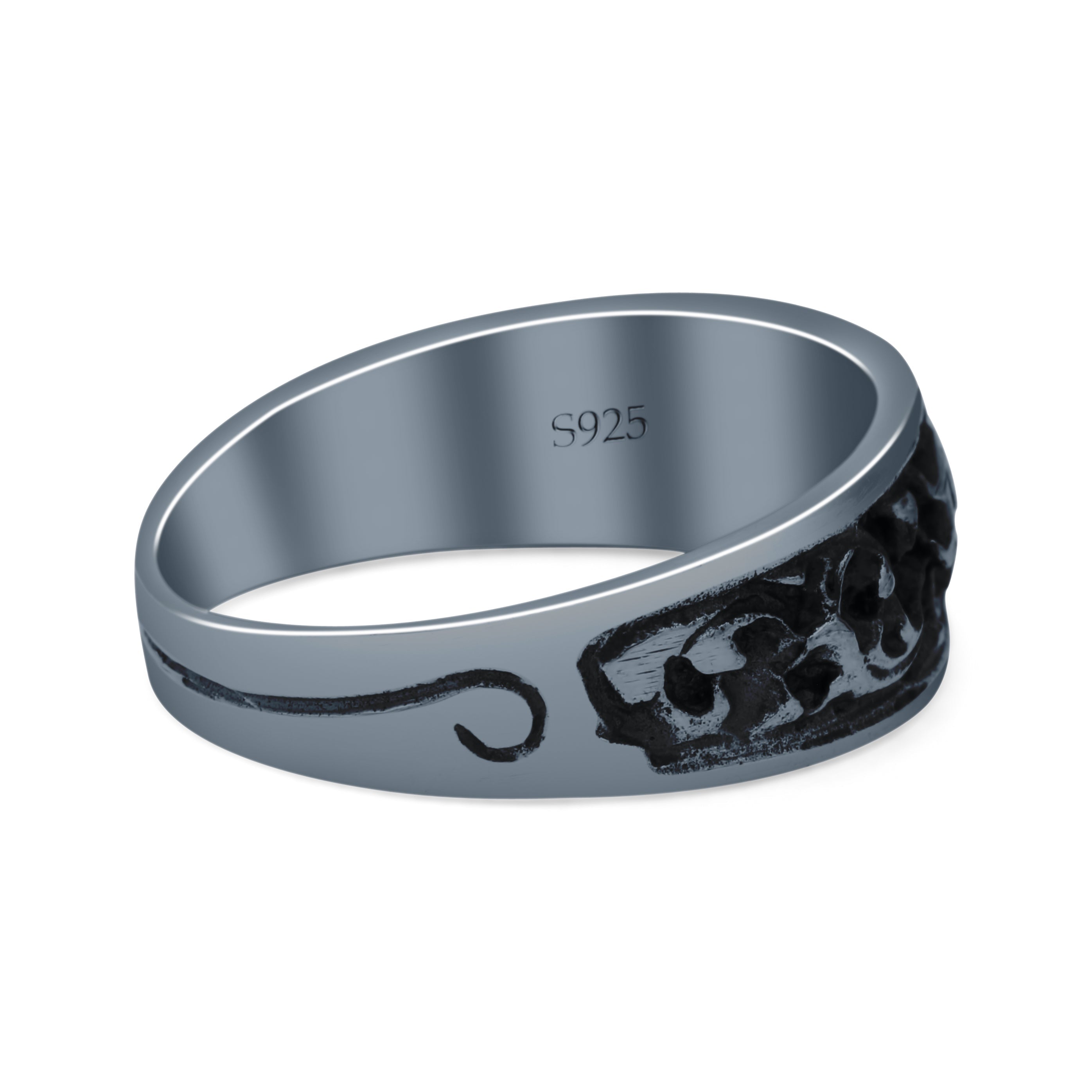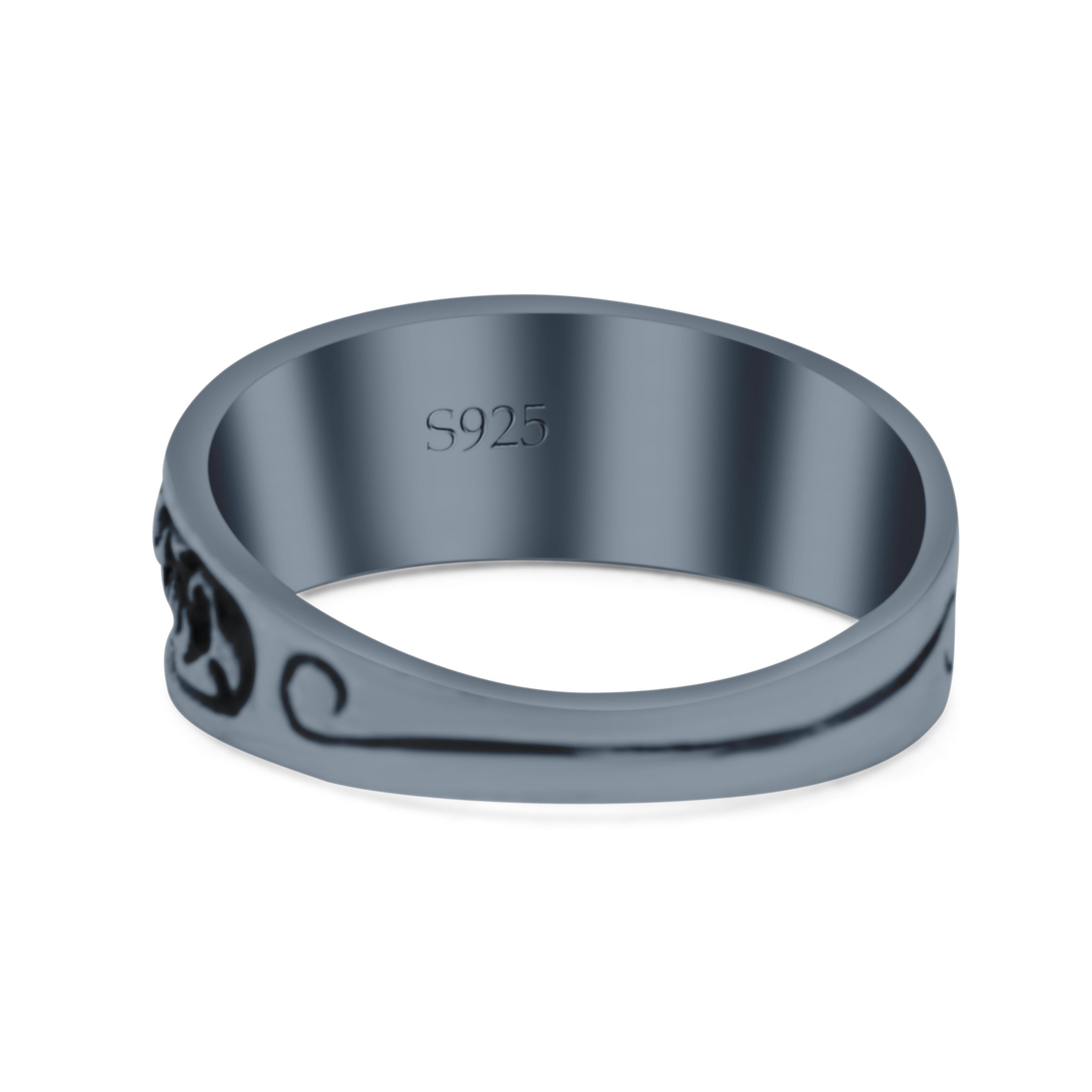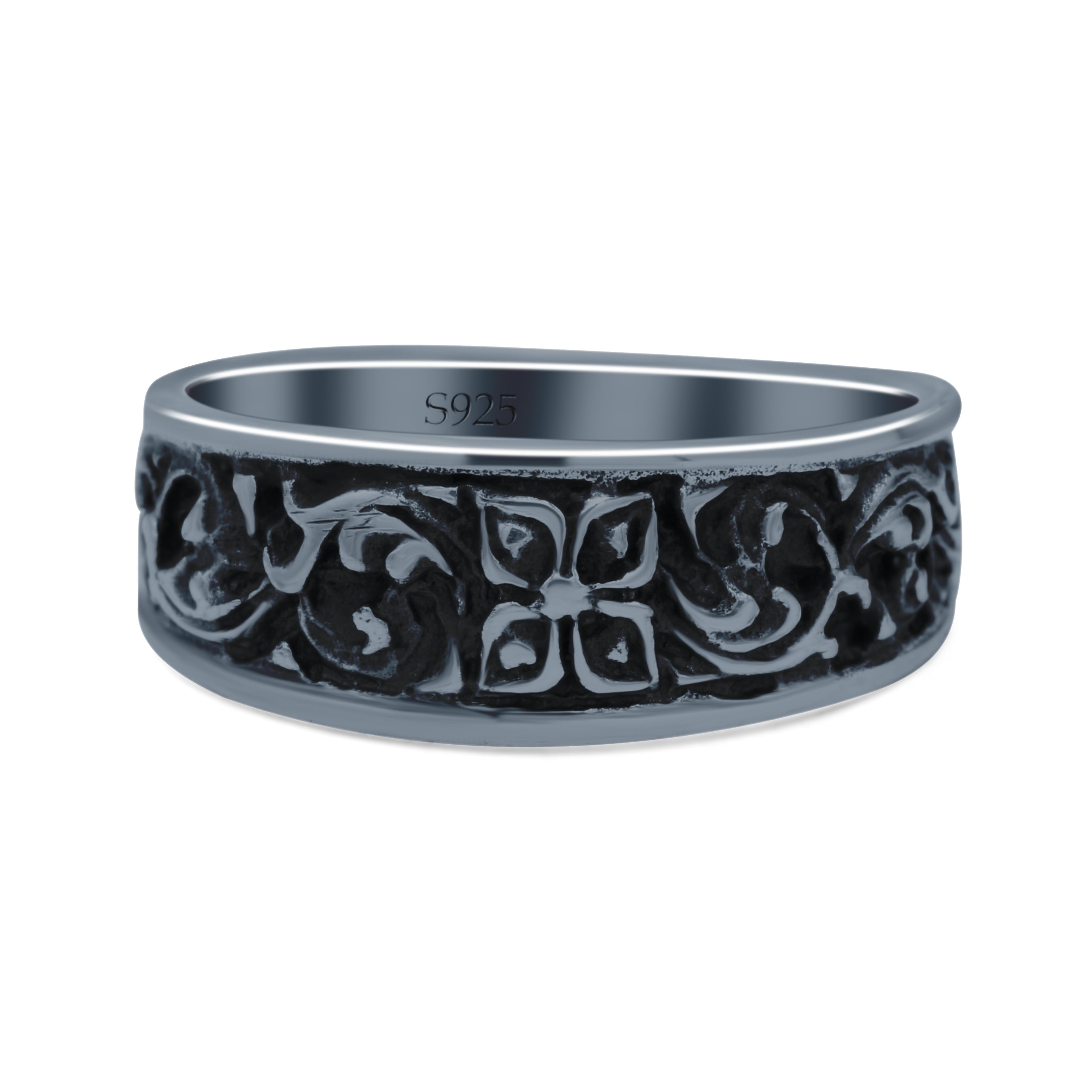 Engraved Floral Designer Trendy Oxidized Band Solid 925 Sterling Silver Thumb Ring (7mm)