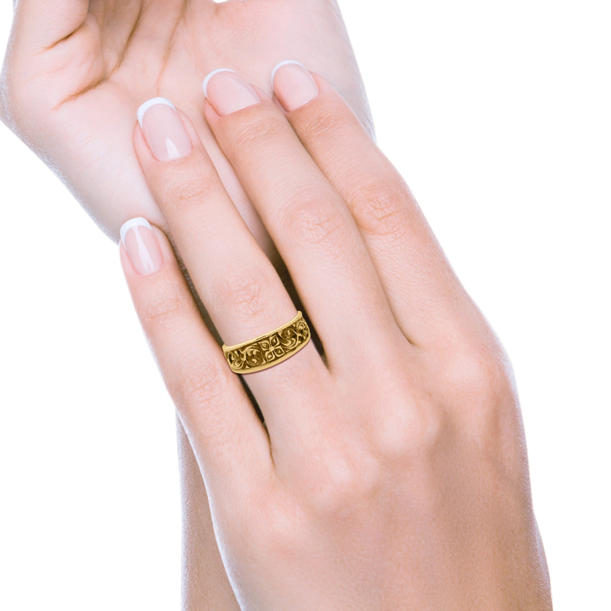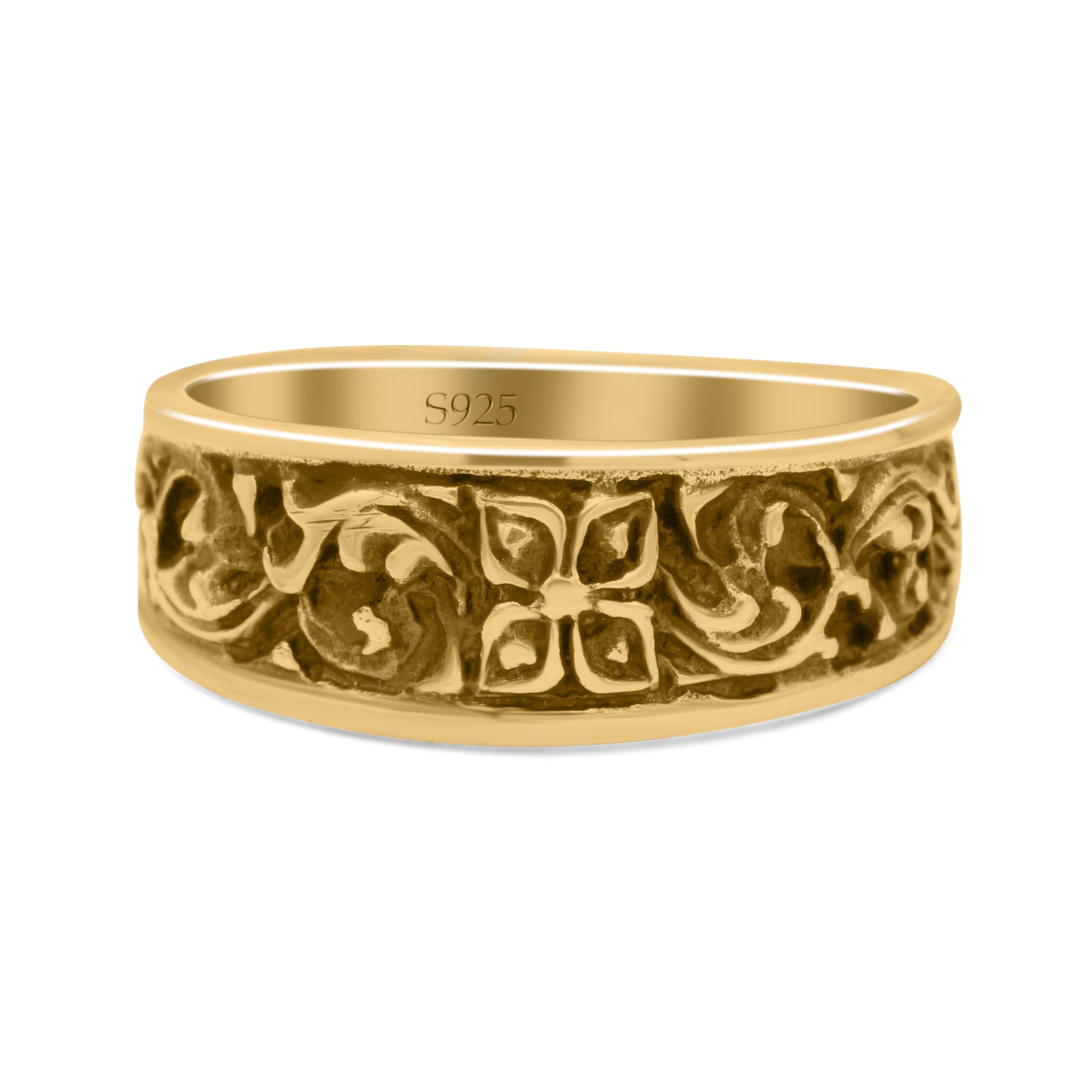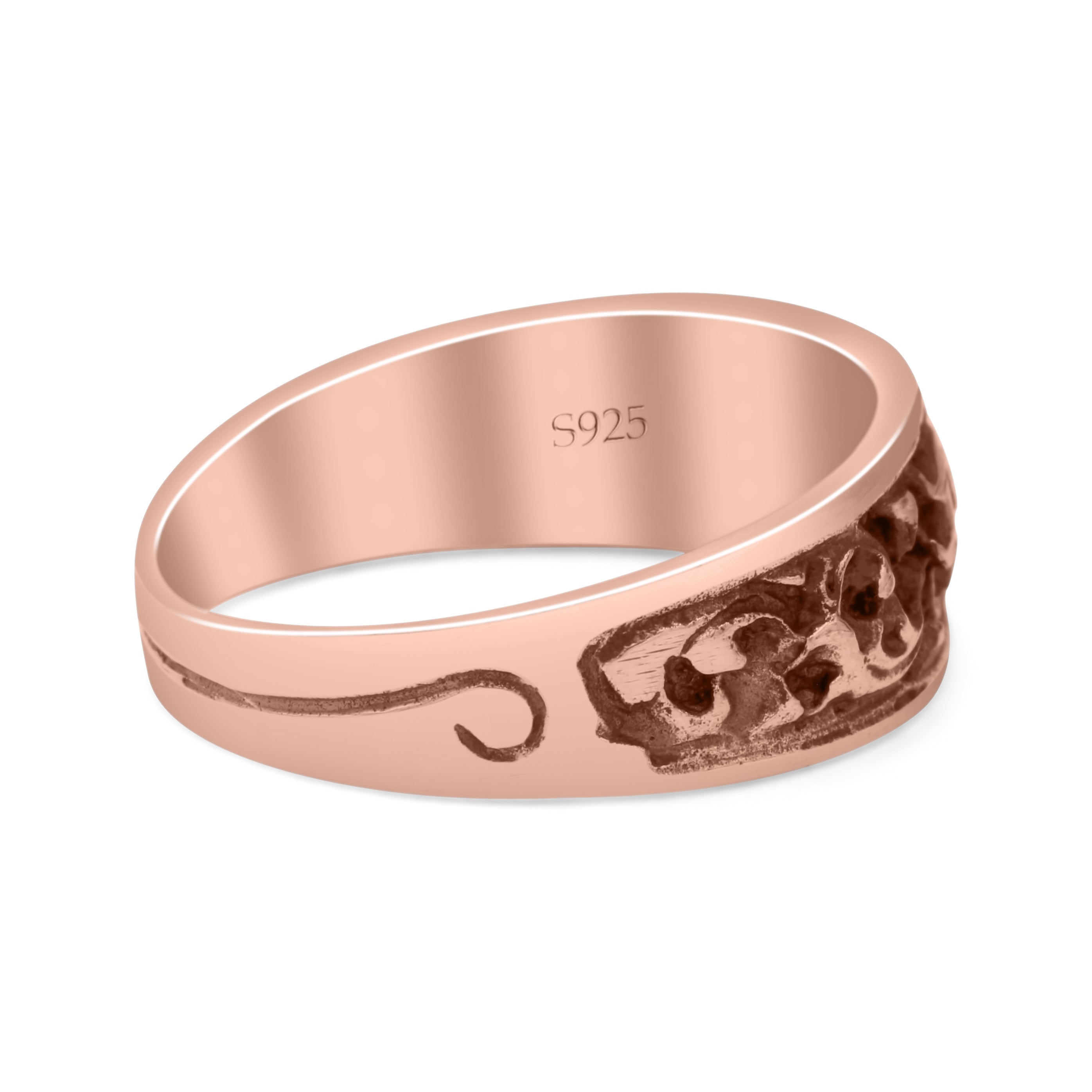 Engraved Floral Designer Trendy Oxidized Band Solid 925 Sterling Silver Thumb Ring (7mm)