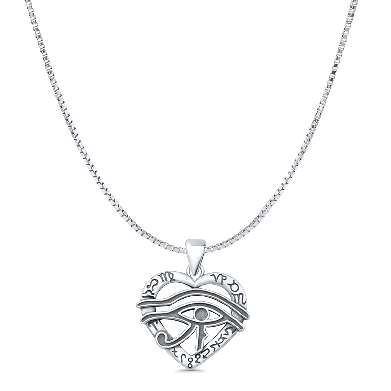 Eye of Horus & Zodiac Pendant Box Chain Necklace Oxidized 925 Sterling Silver