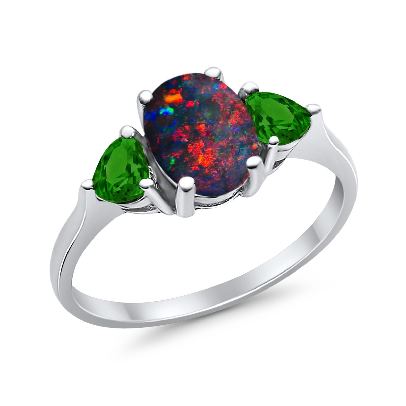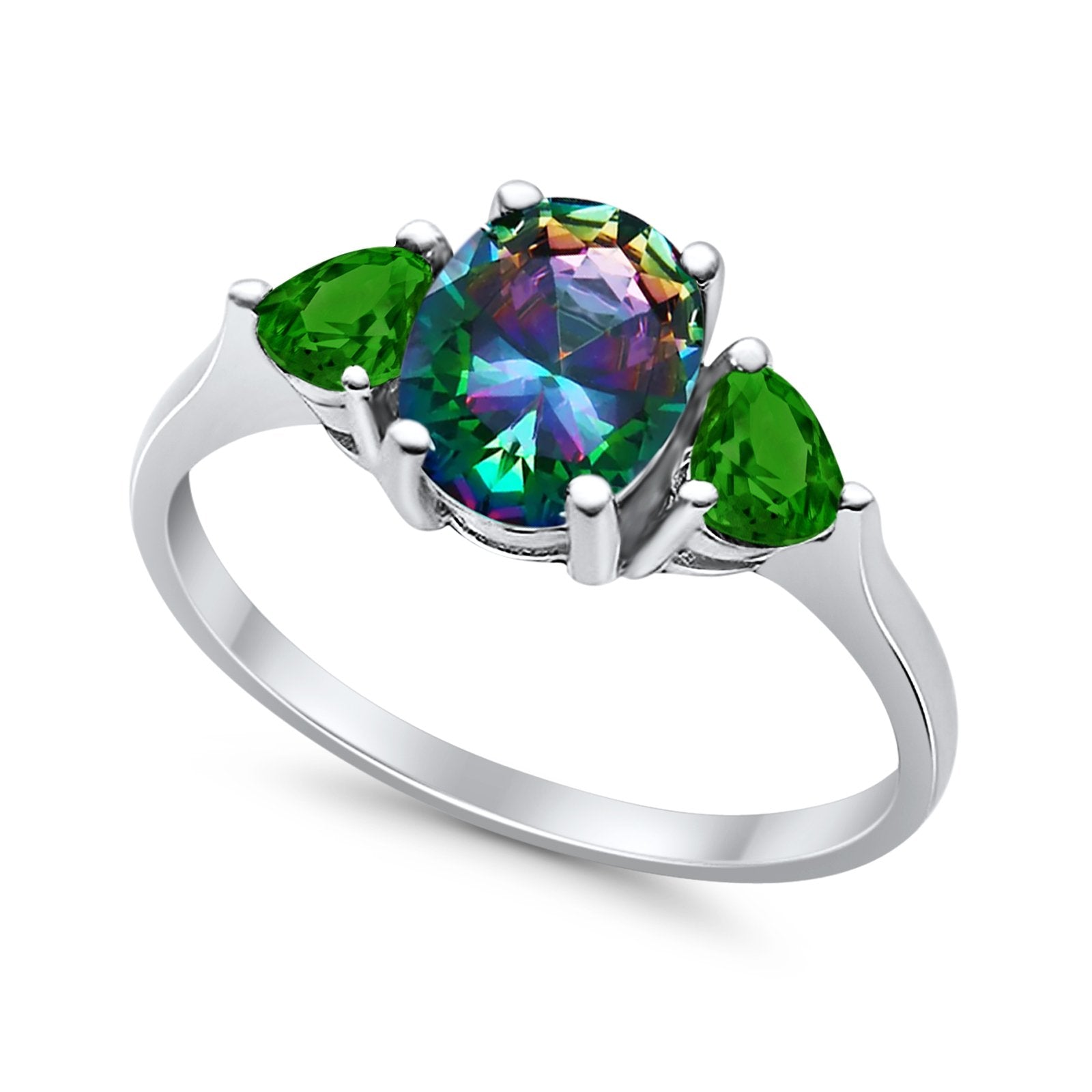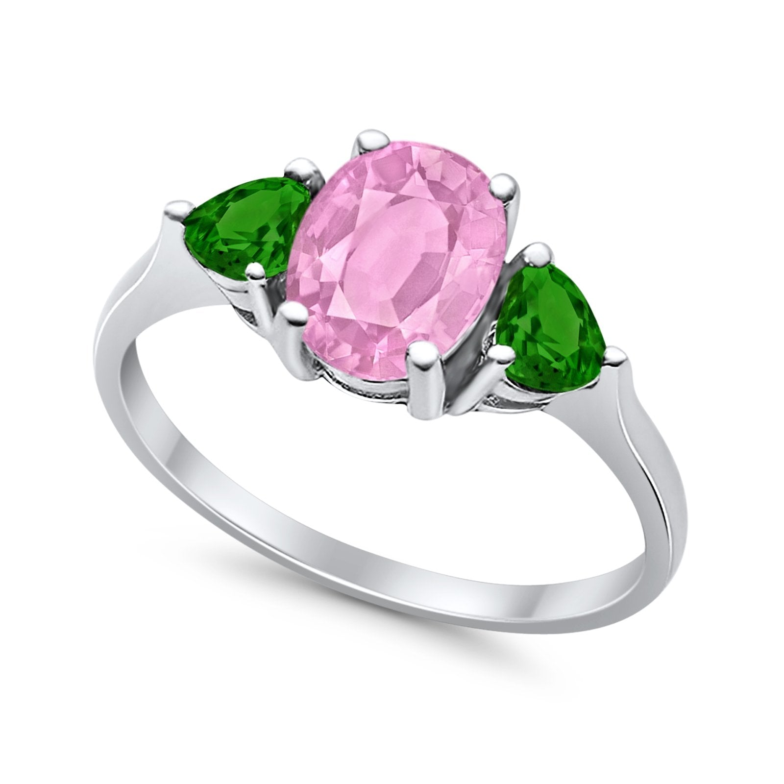 Fashion Promise Ring 3-Stone Simulated Emerald Cubic Zirconia 925 Sterling Silver
