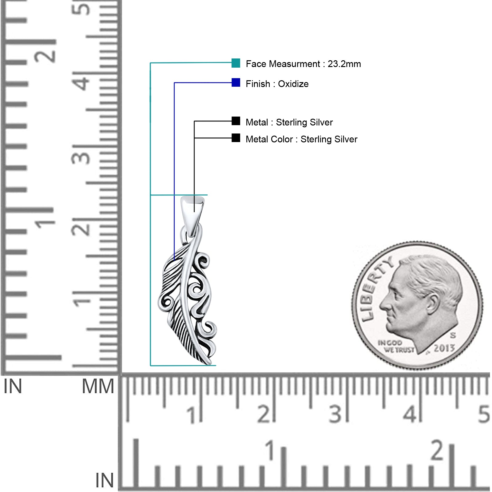 Pendant Length: 23.2mm(0.91 inch)