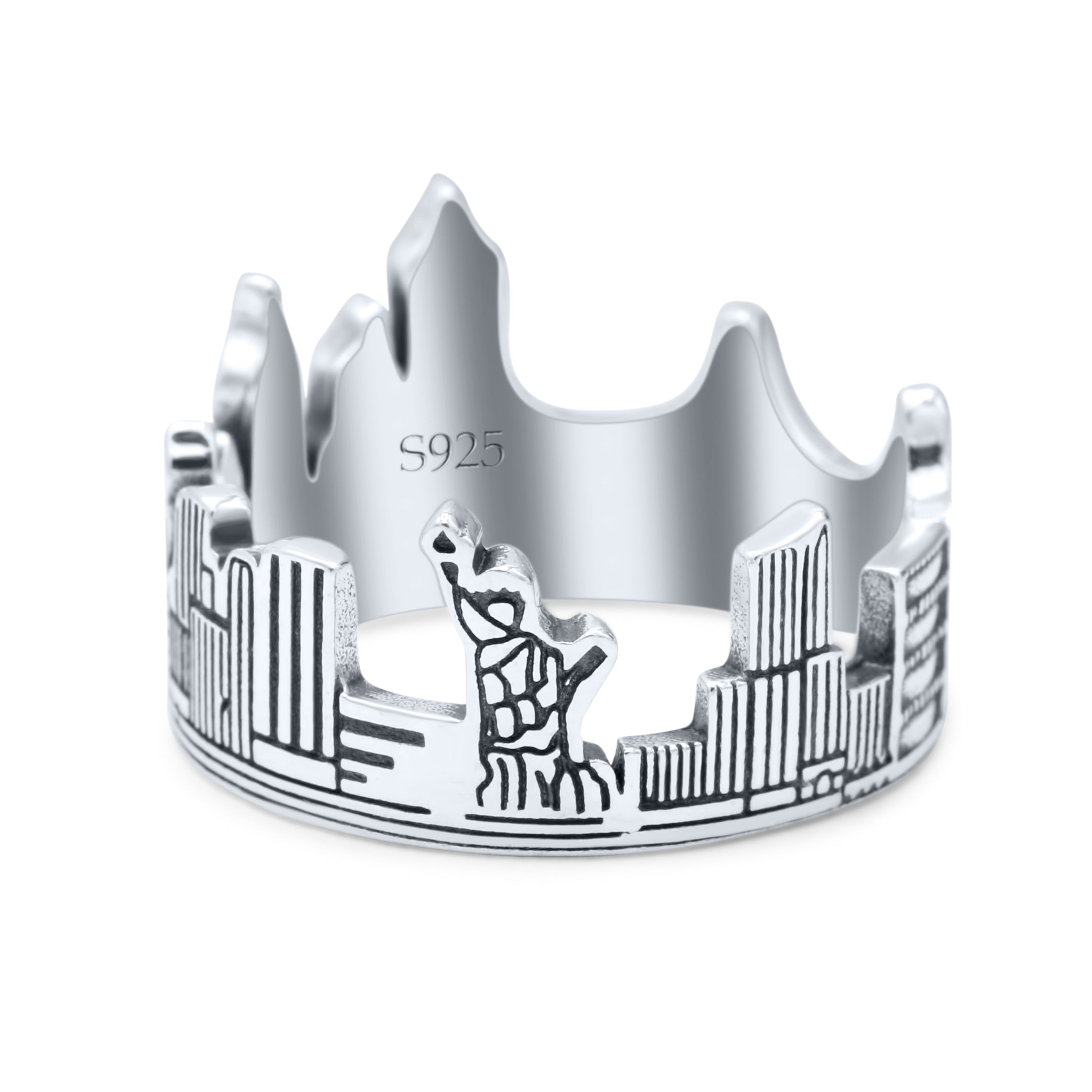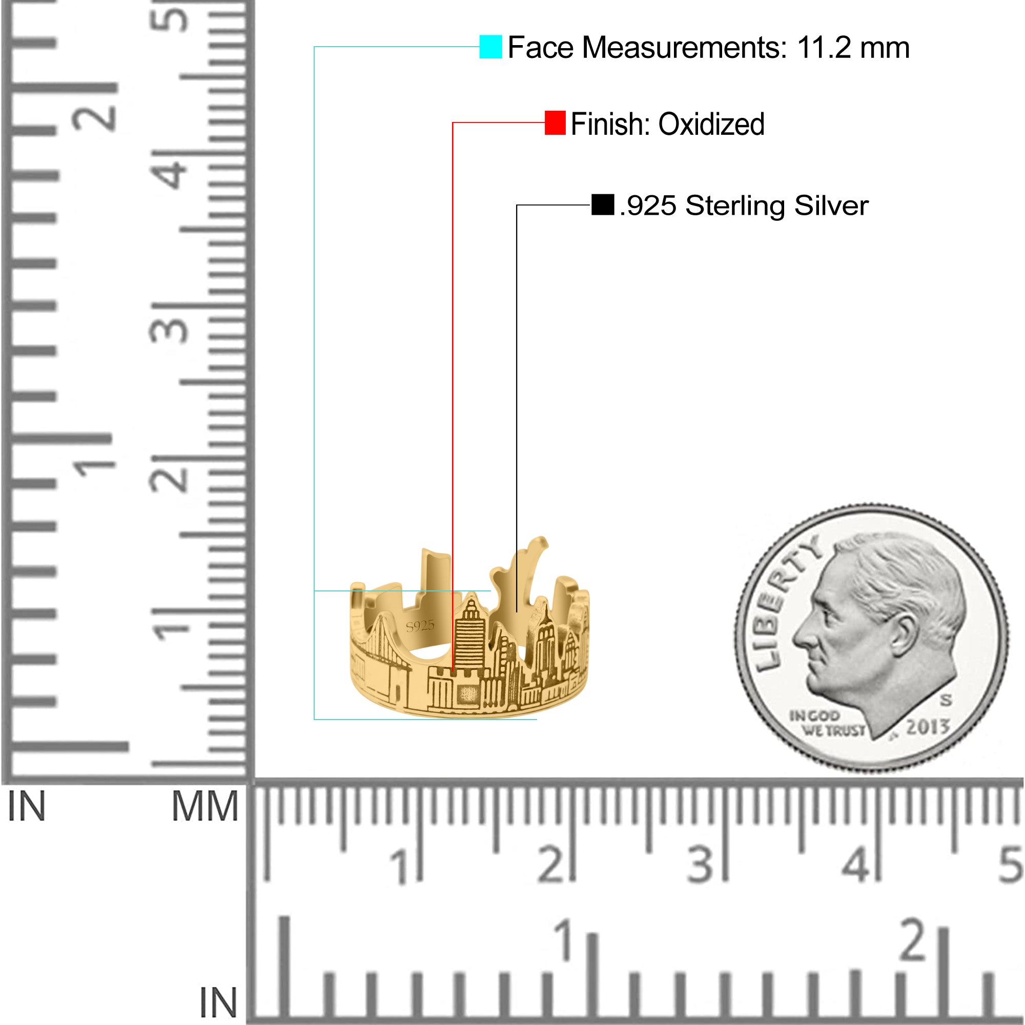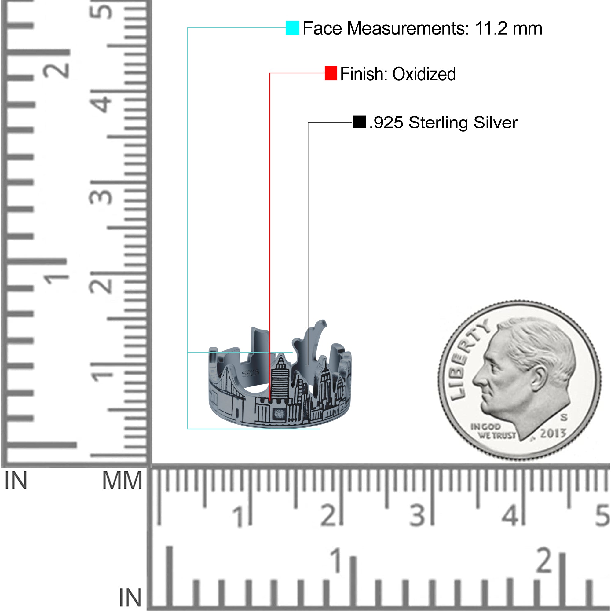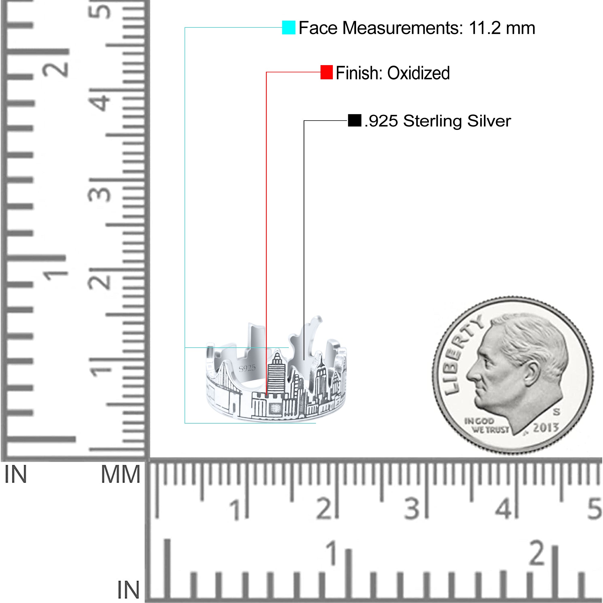 Filigree New York Skyline Popular Landmarks Oxidized Band Solid 925 Sterling Silver Thumb Ring (11.2mm)