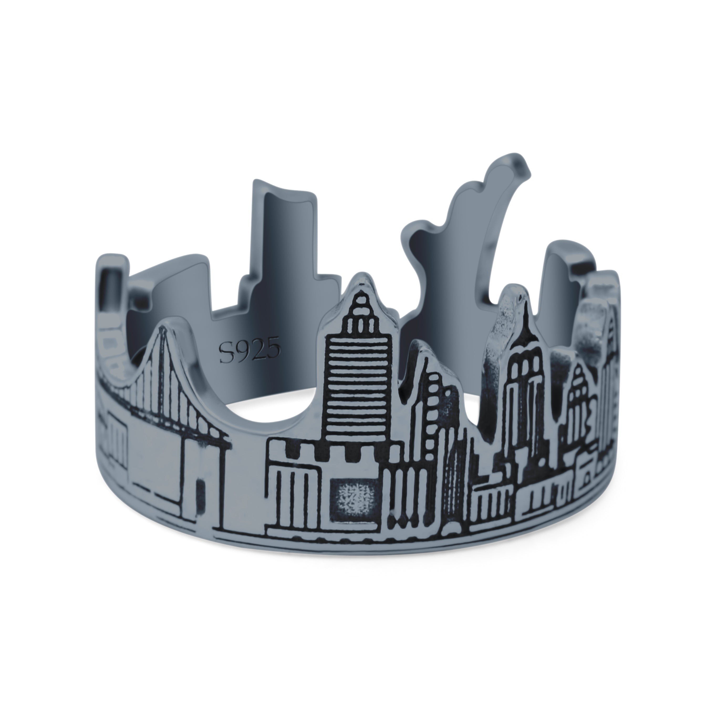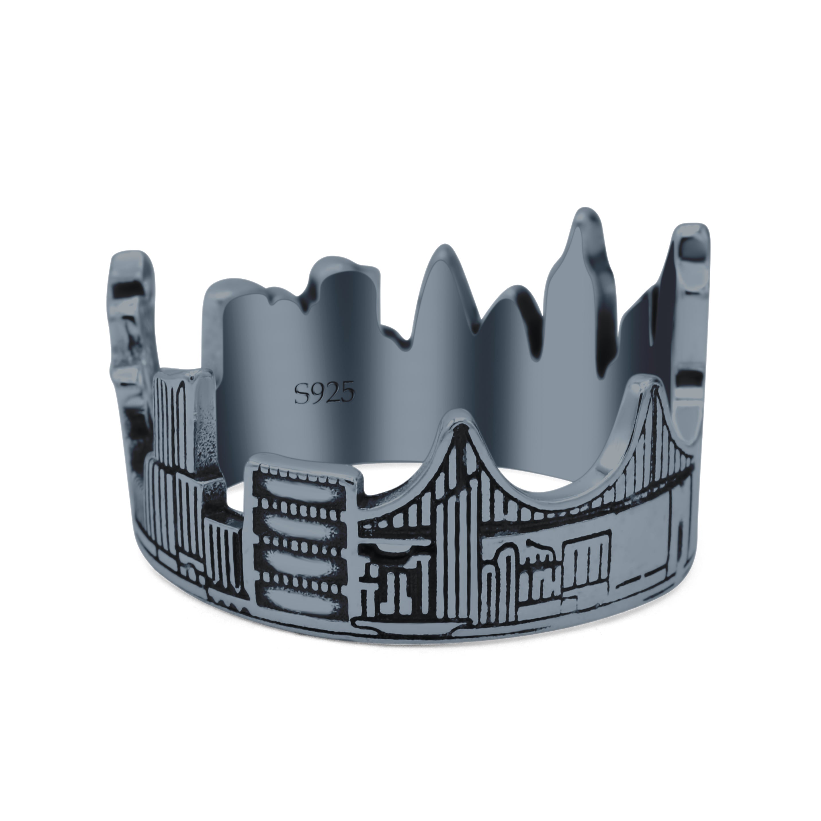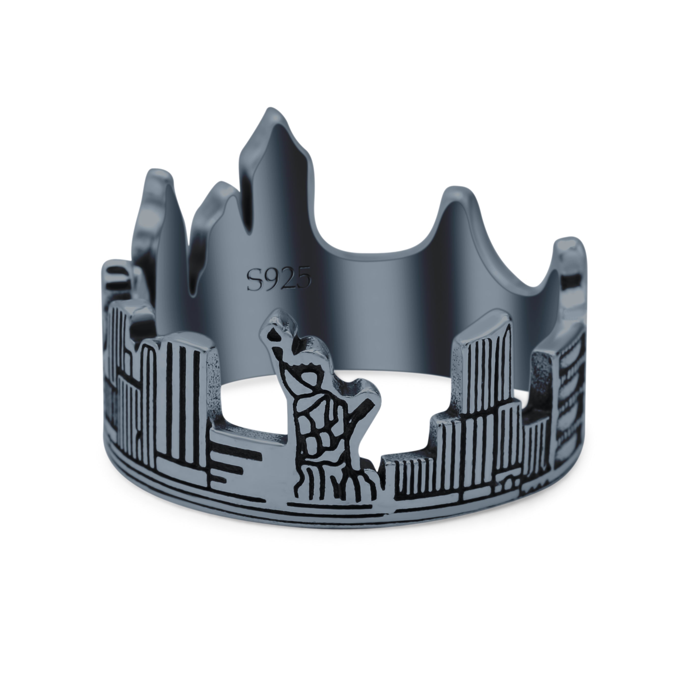Filigree New York Skyline Popular Landmarks Oxidized Band Solid 925 Sterling Silver Thumb Ring (11.2mm)
