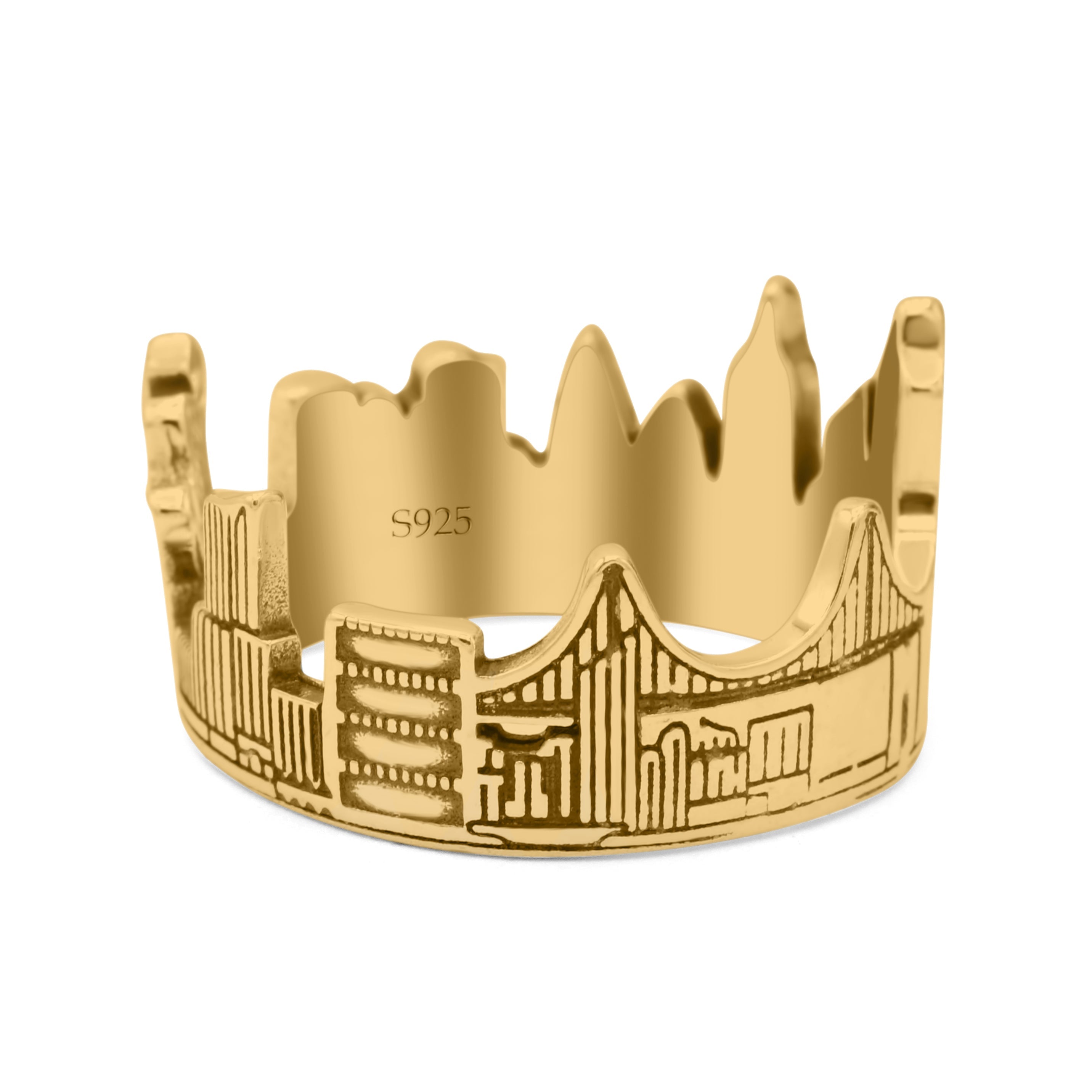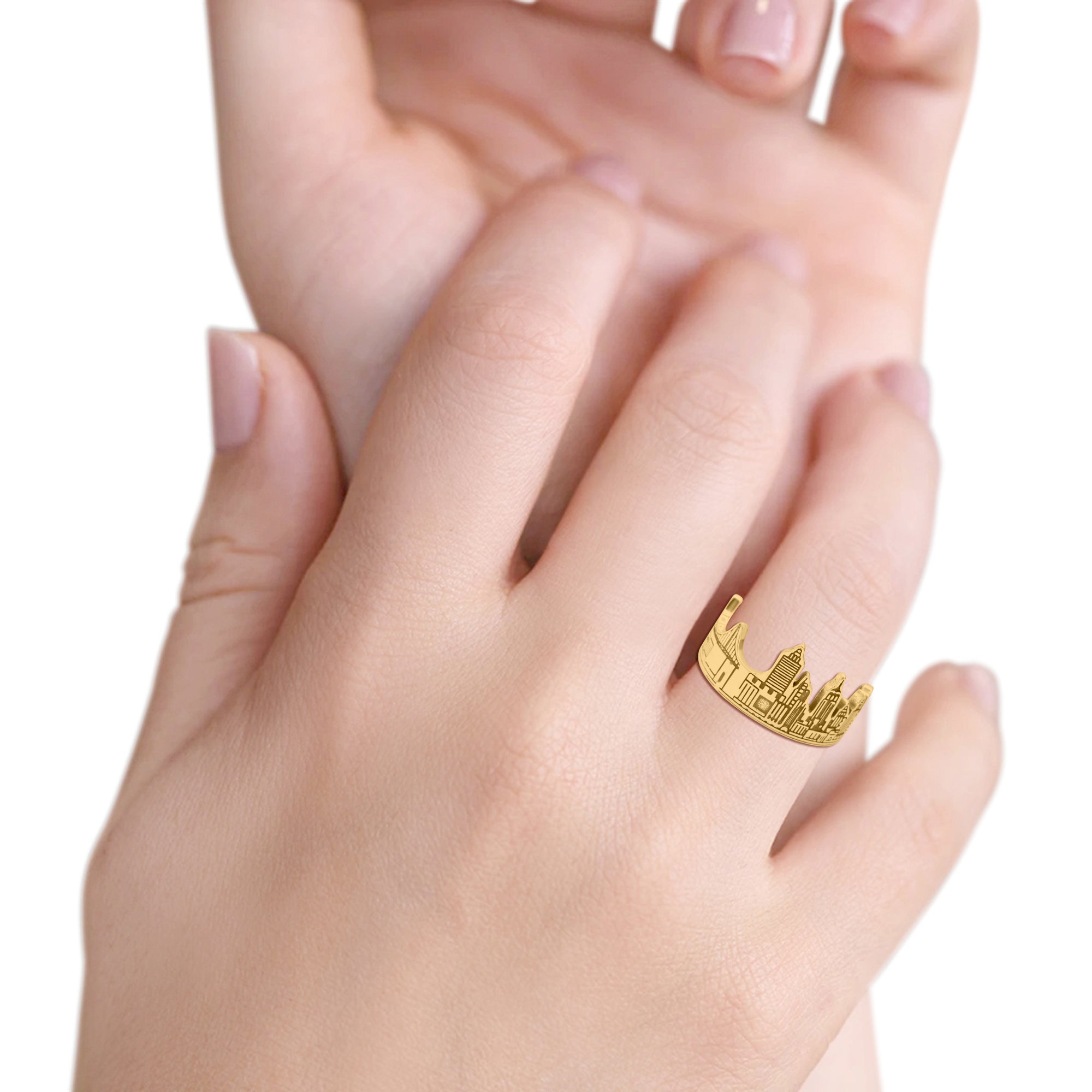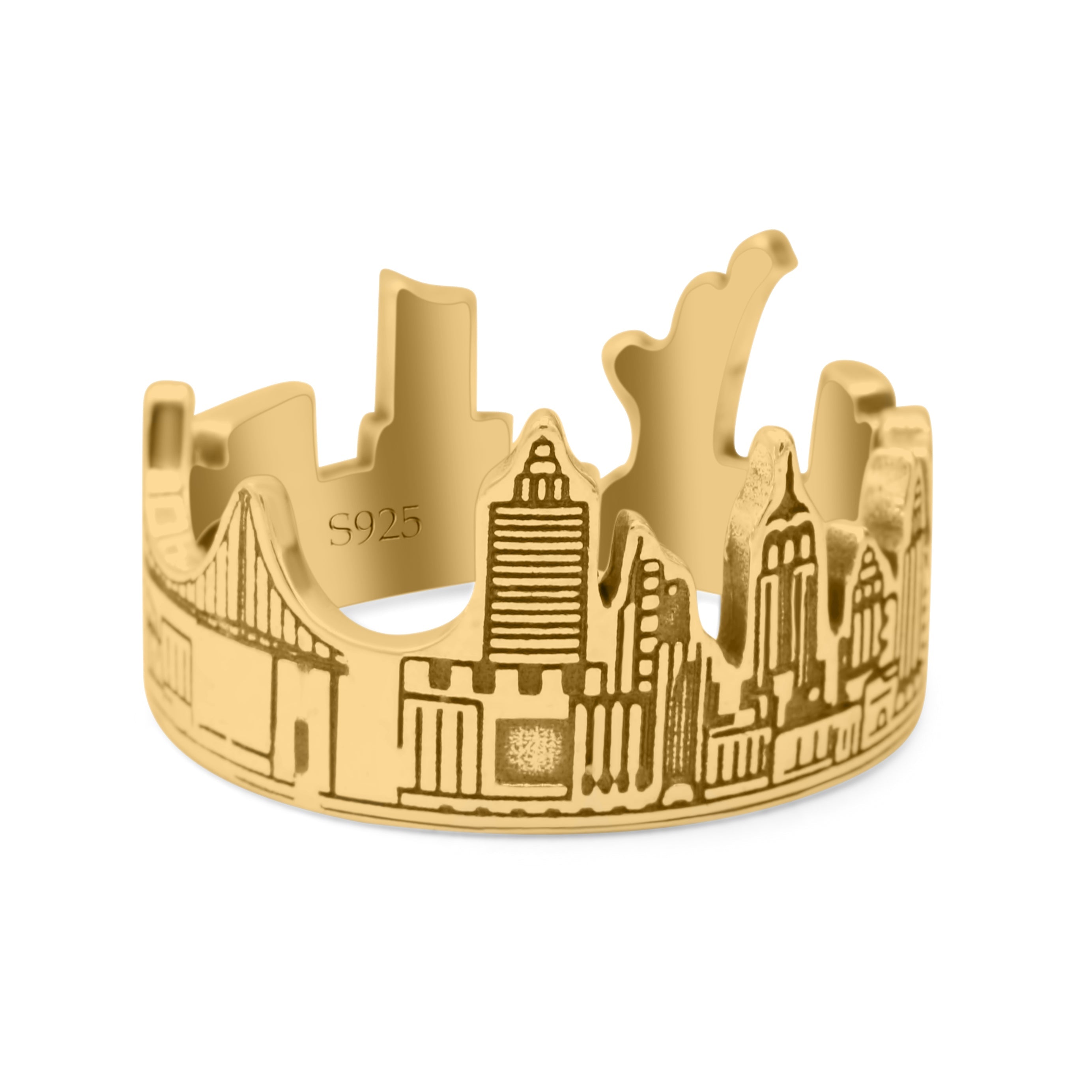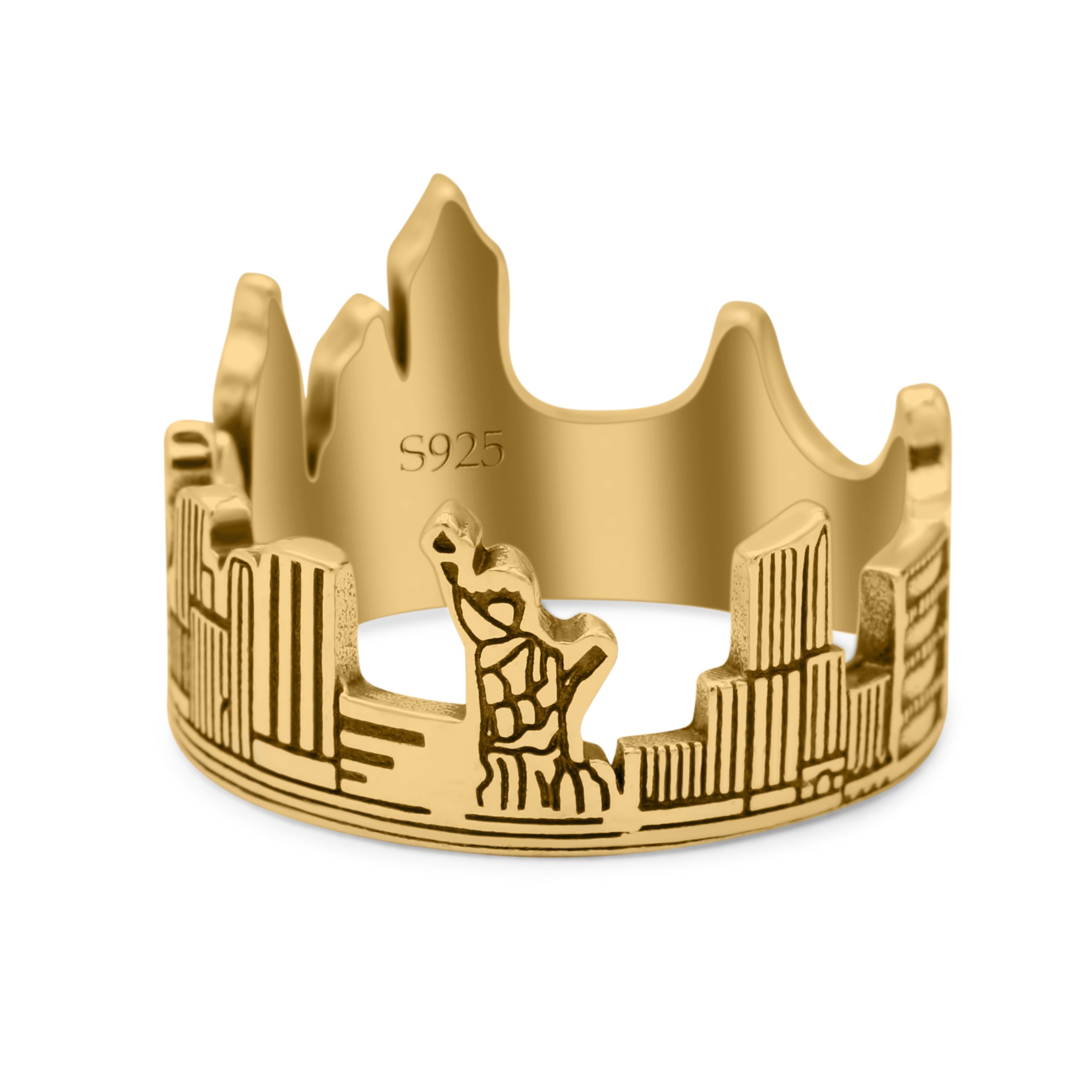 Filigree New York Skyline Popular Landmarks Oxidized Band Solid 925 Sterling Silver Thumb Ring (11.2mm)