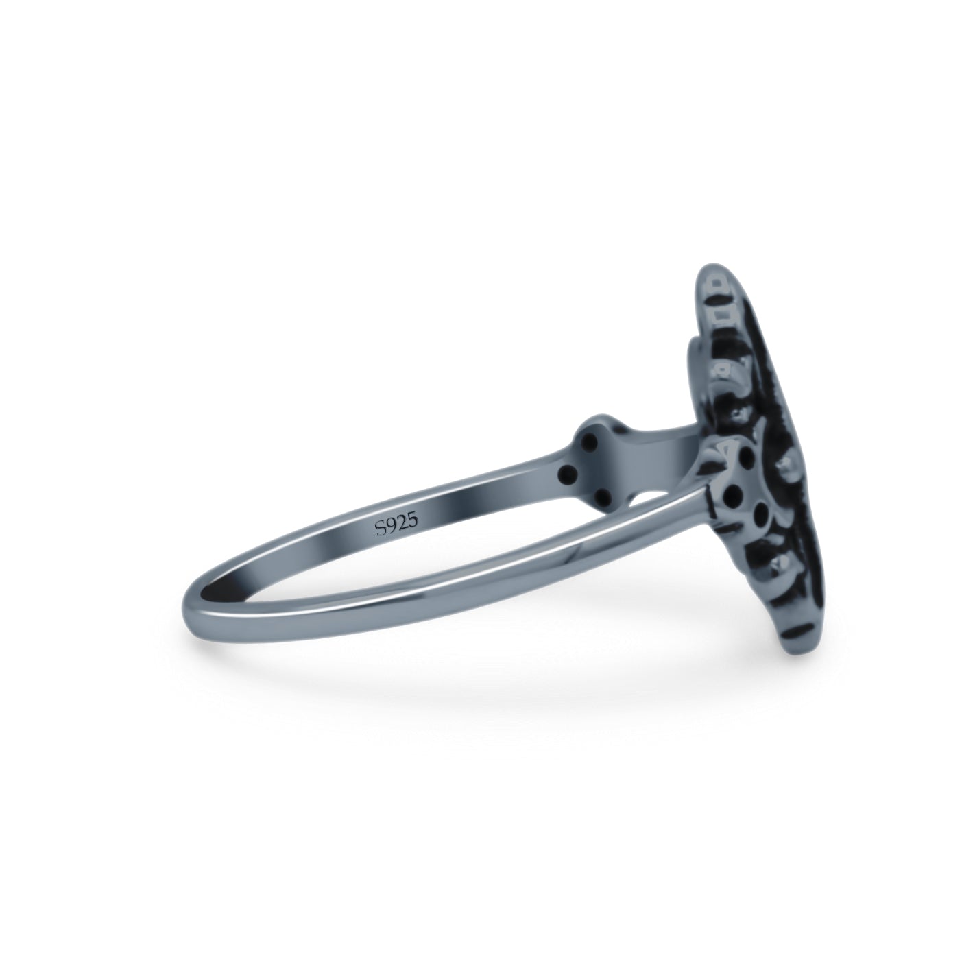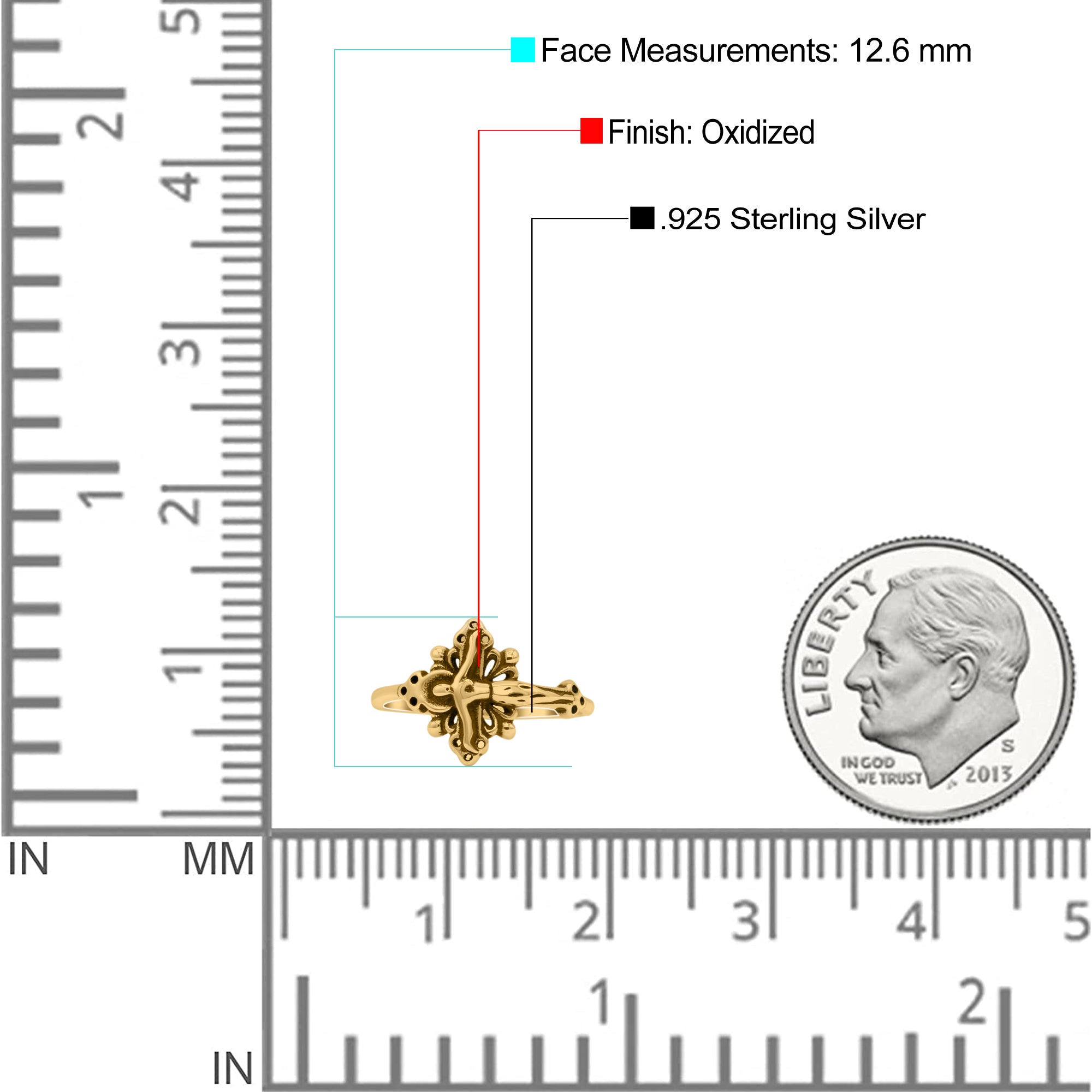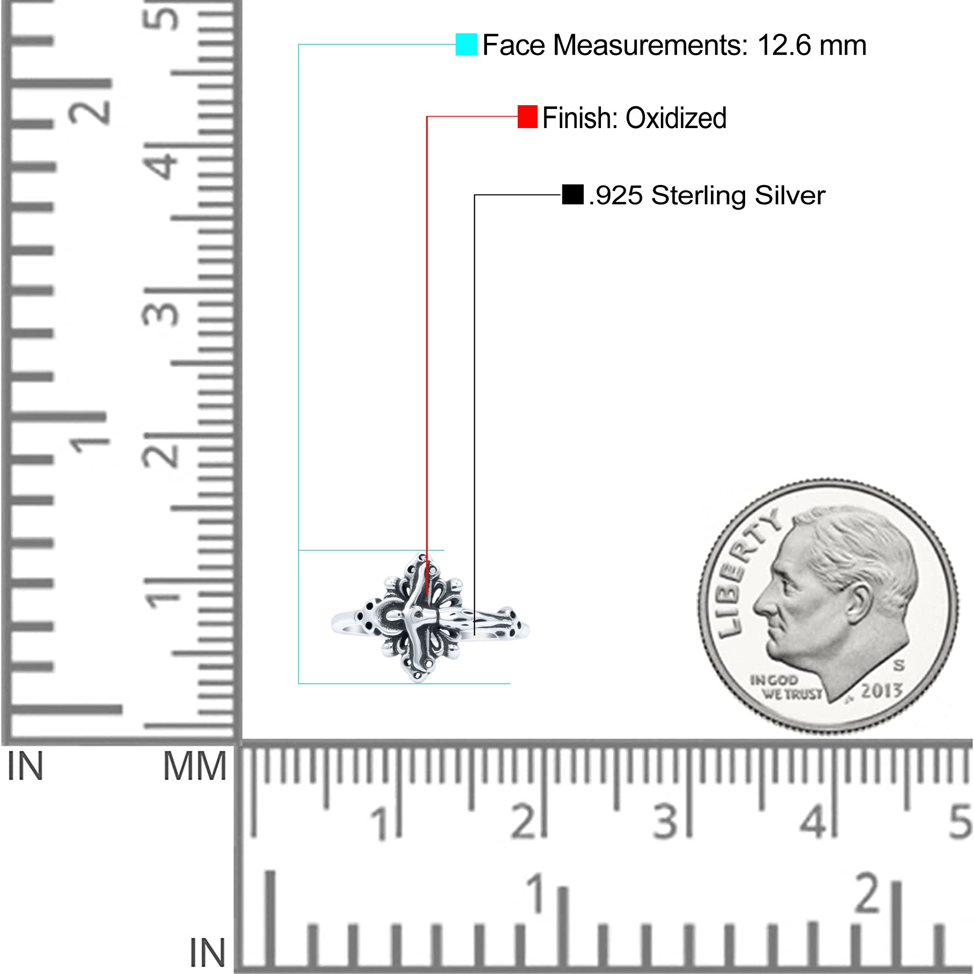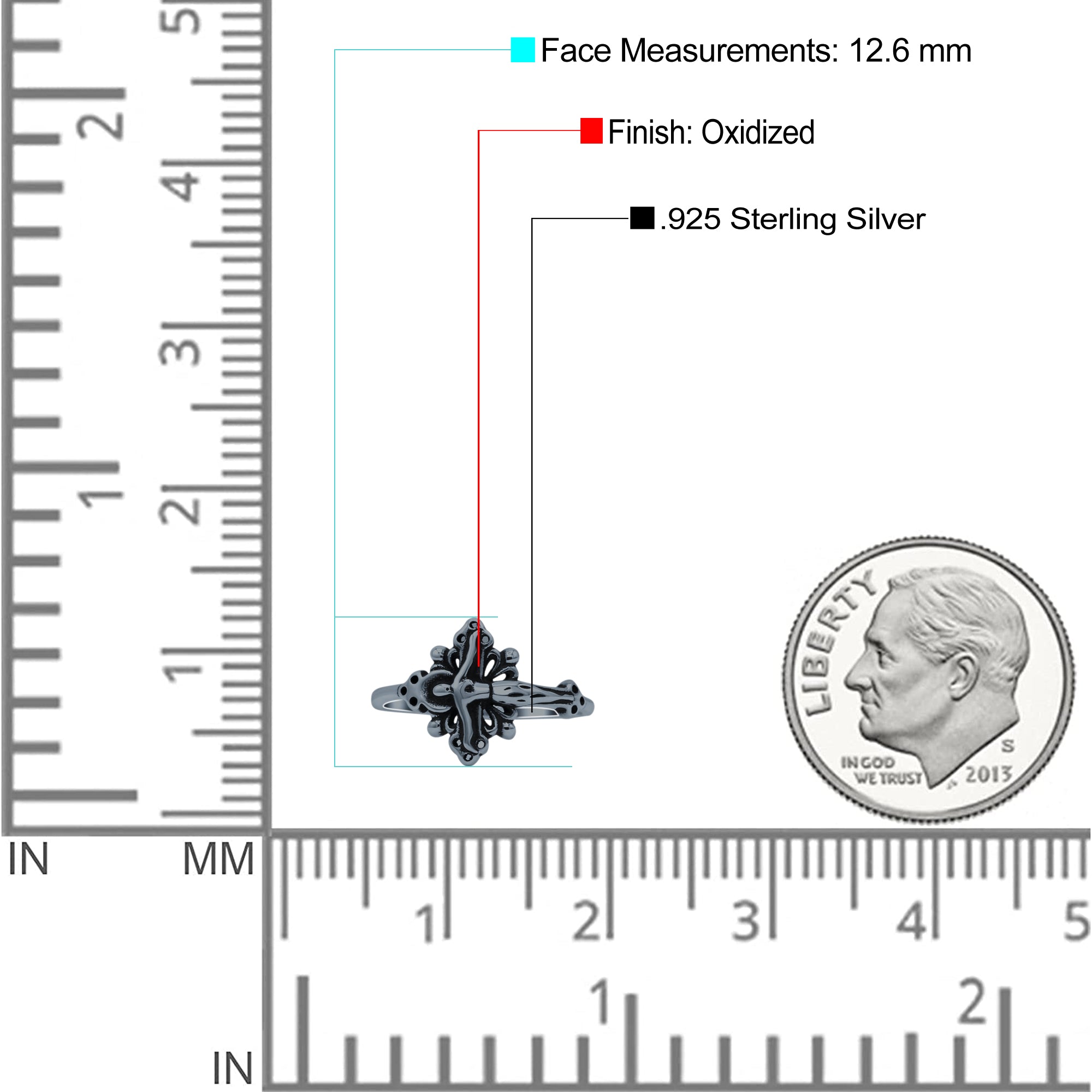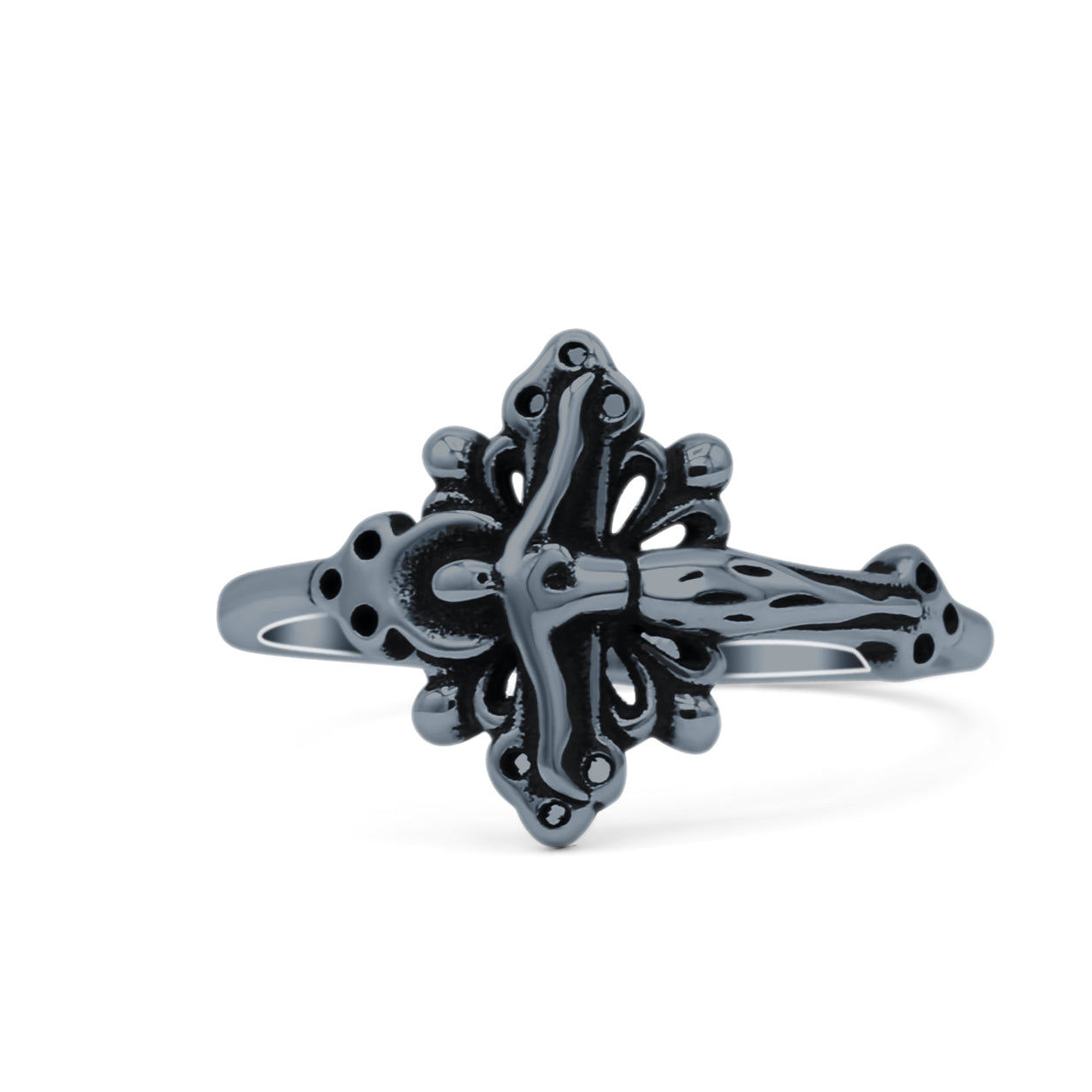 Filigree Swirl Petite Dainty Crucifix Religious Statement Oxidized Ring Band Solid 925 Sterling Silver Thumb Ring (12.6mm)