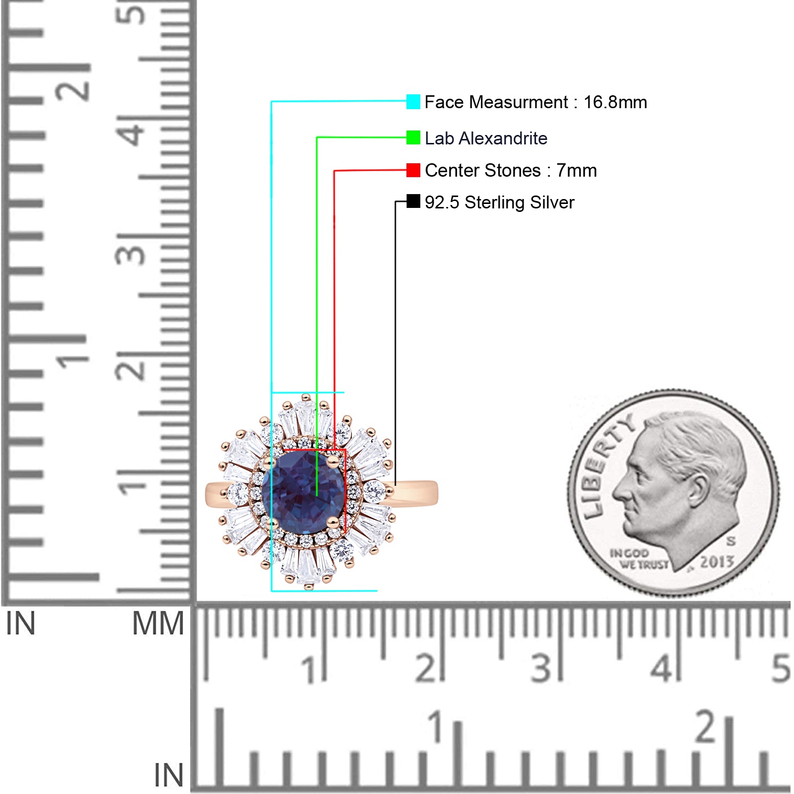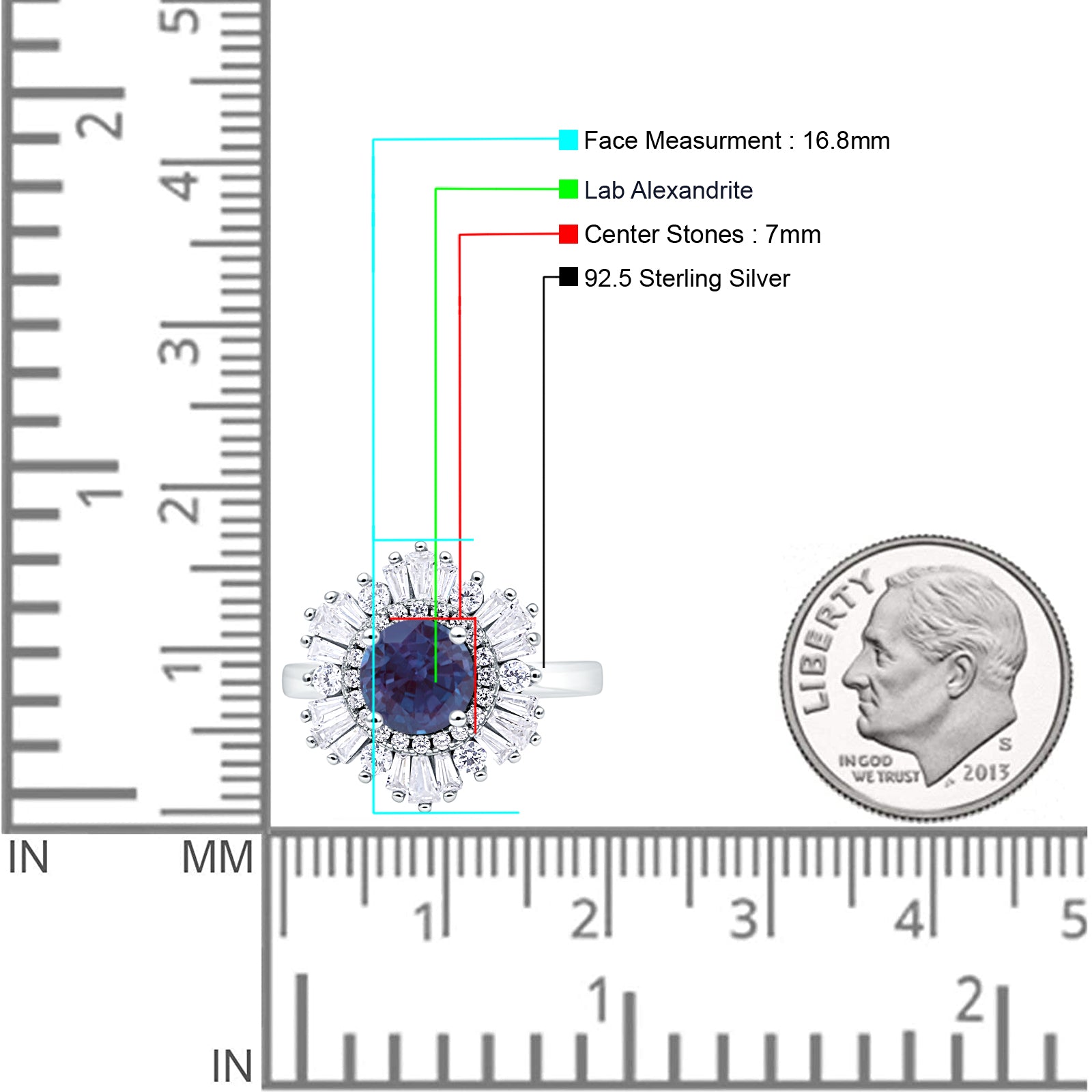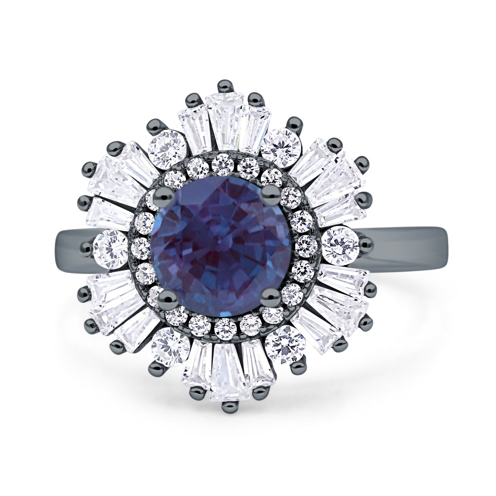 Floral Art Deco Round Lab Alexandrite Halo Engagement Ring