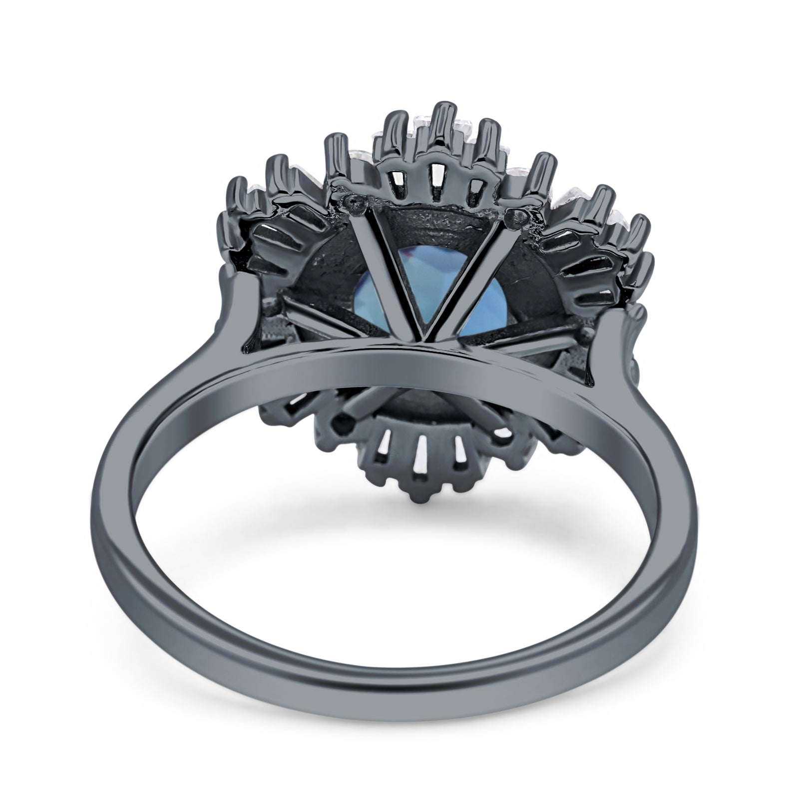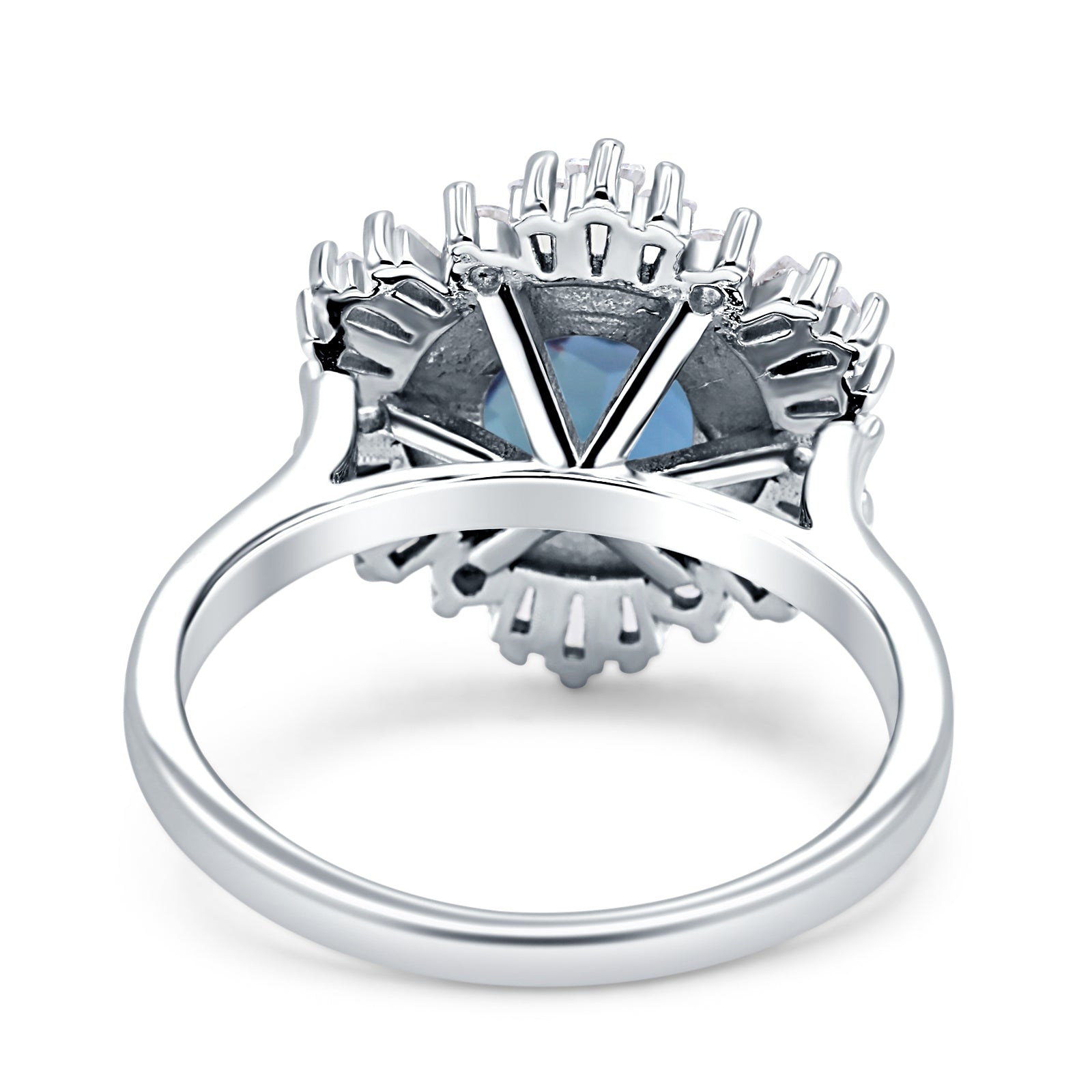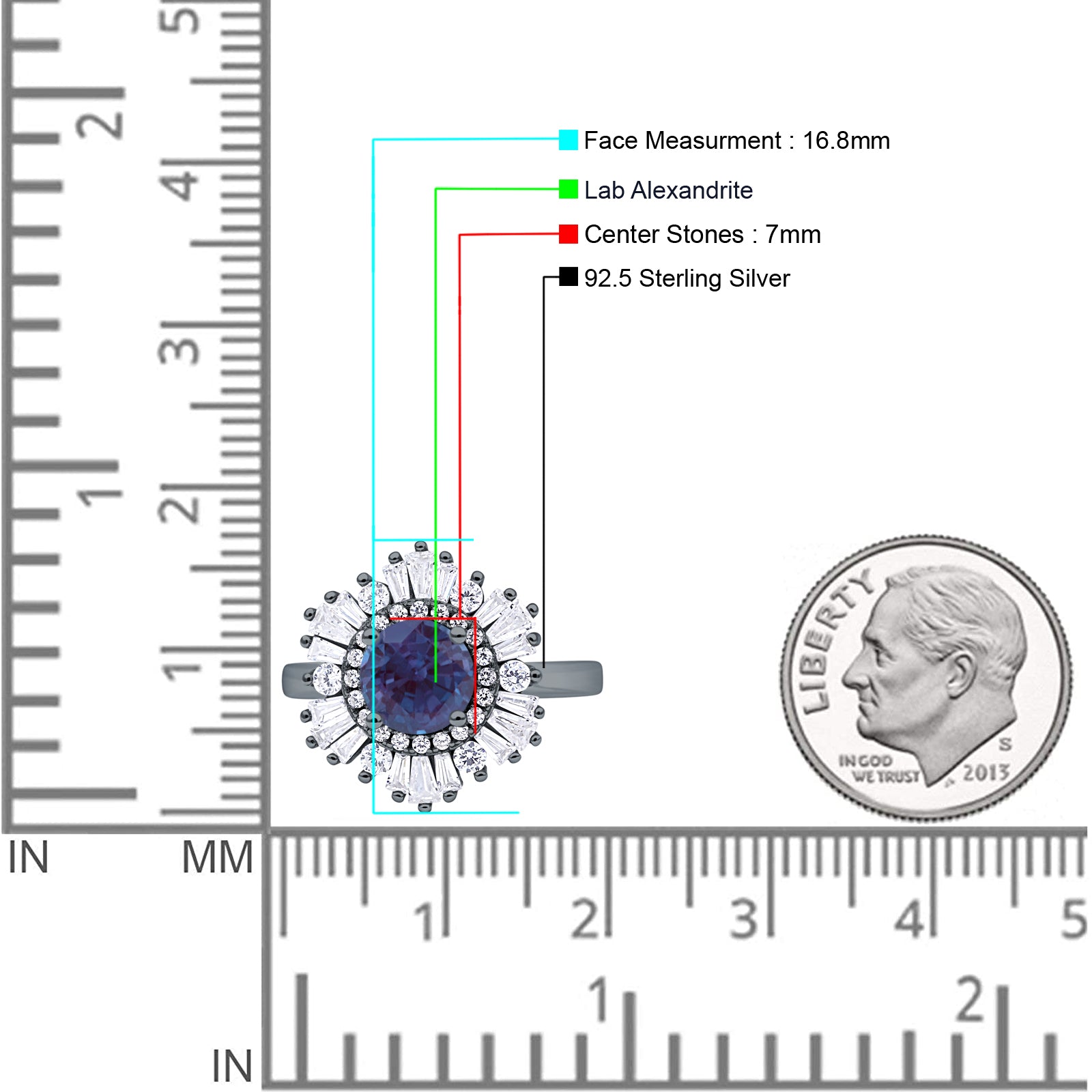 Floral Art Deco Round Lab Alexandrite Halo Engagement Ring