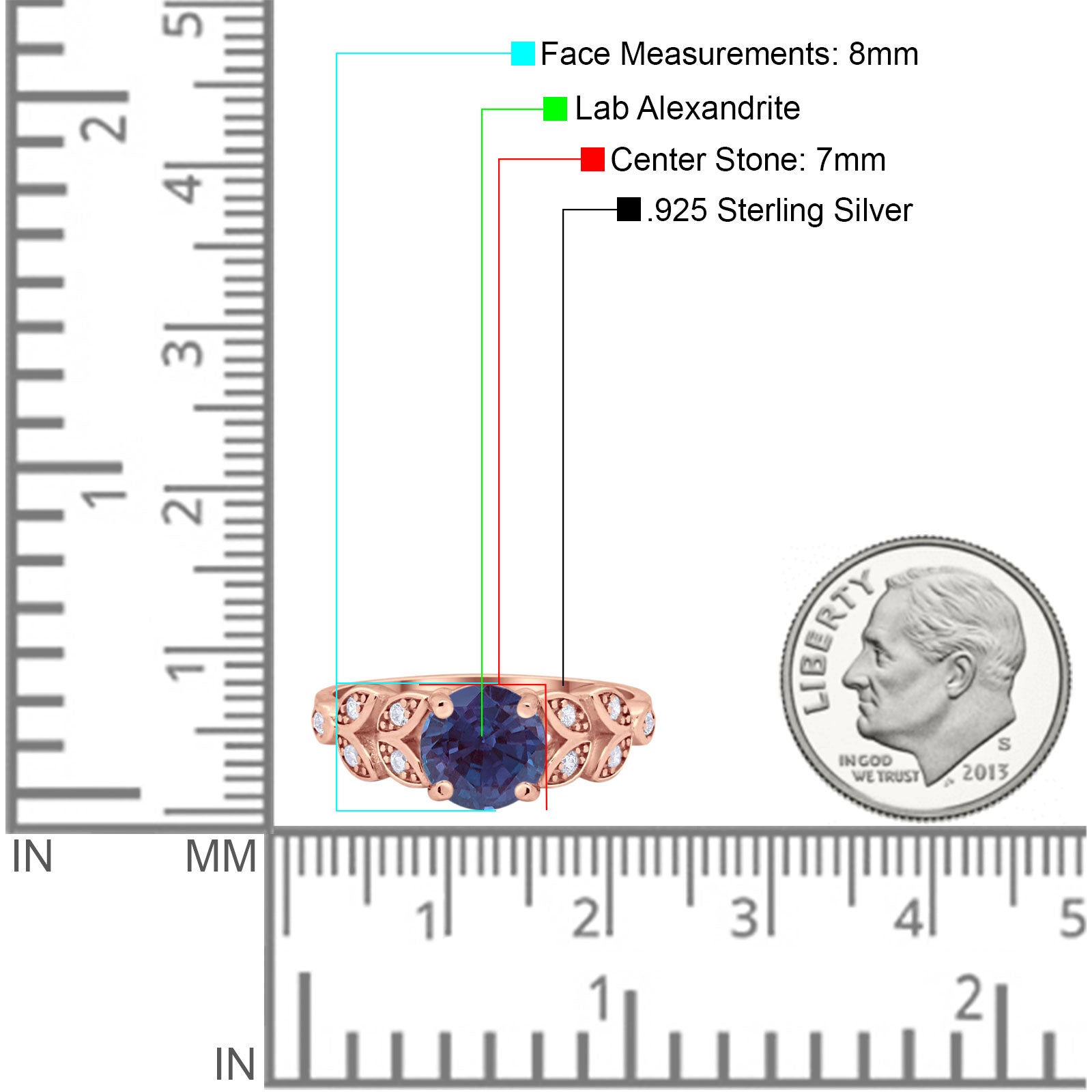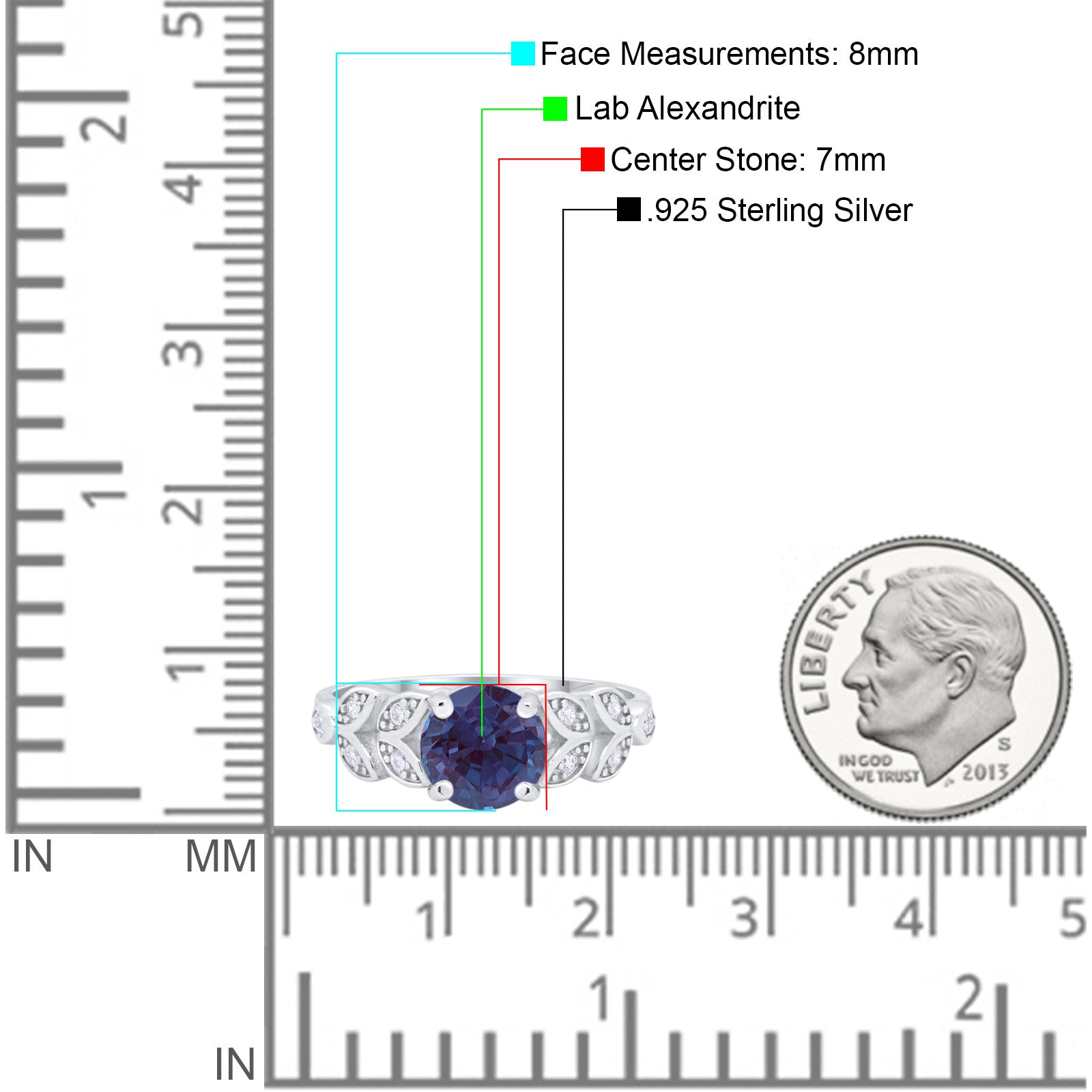 Side Stone: Cubic Zirconia (CZ).