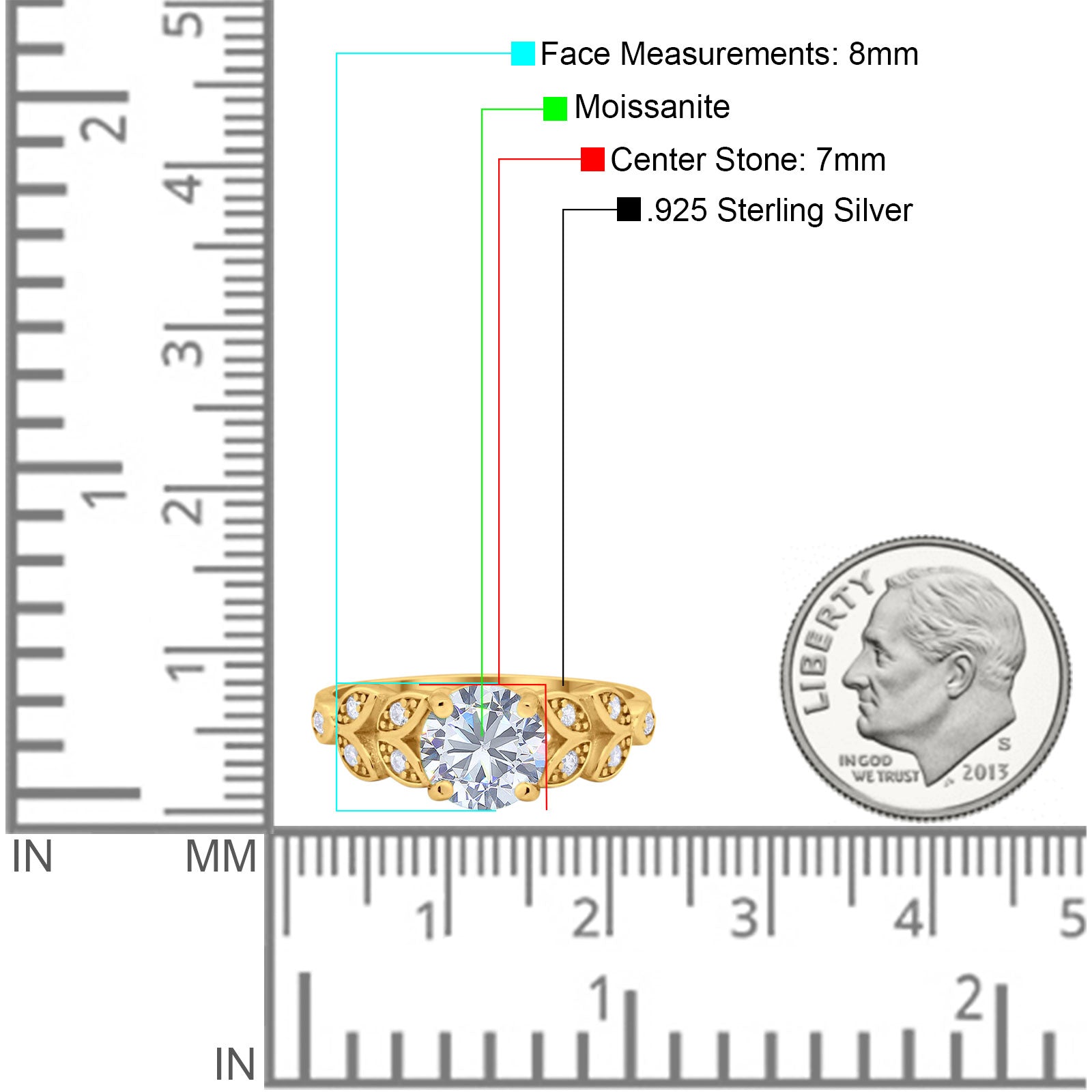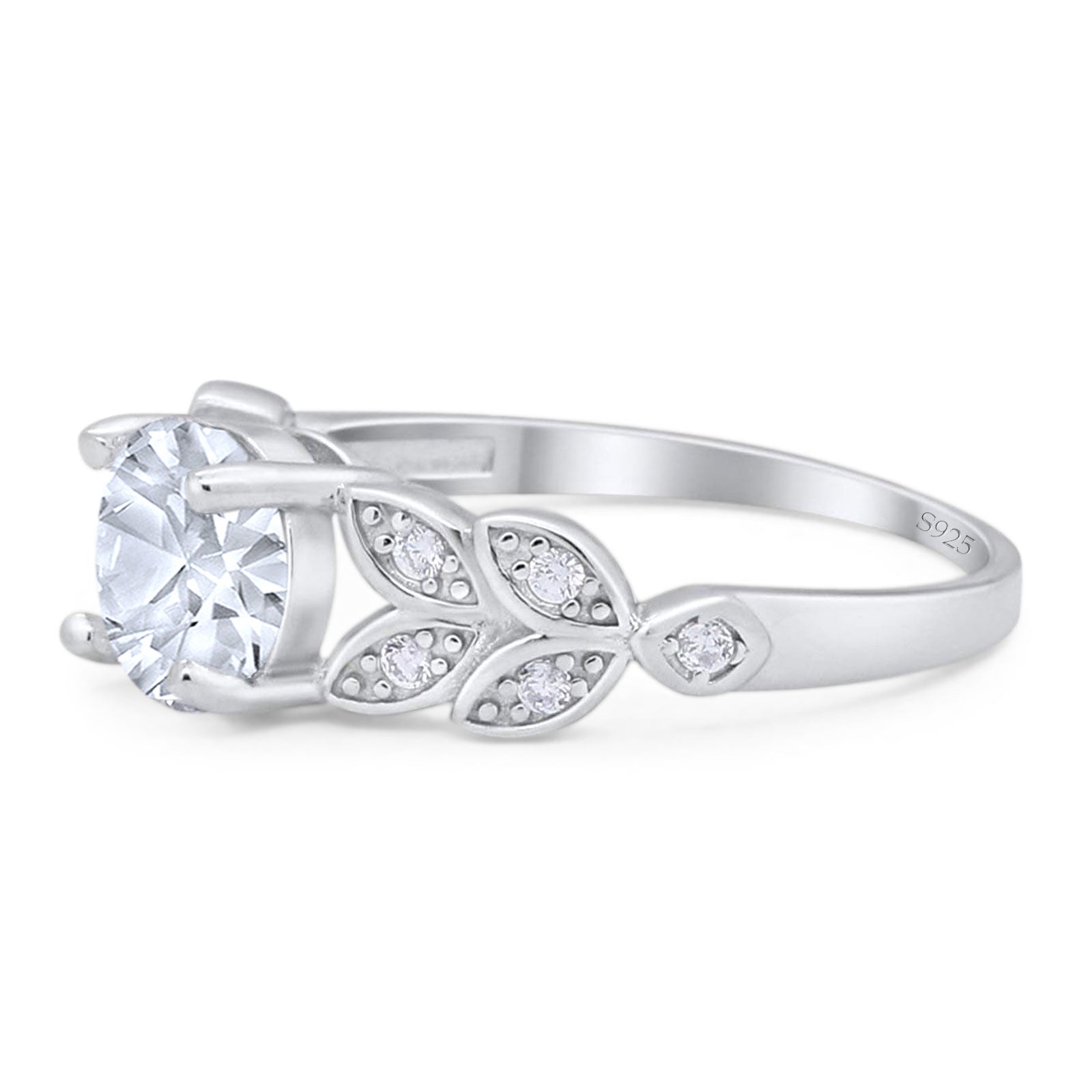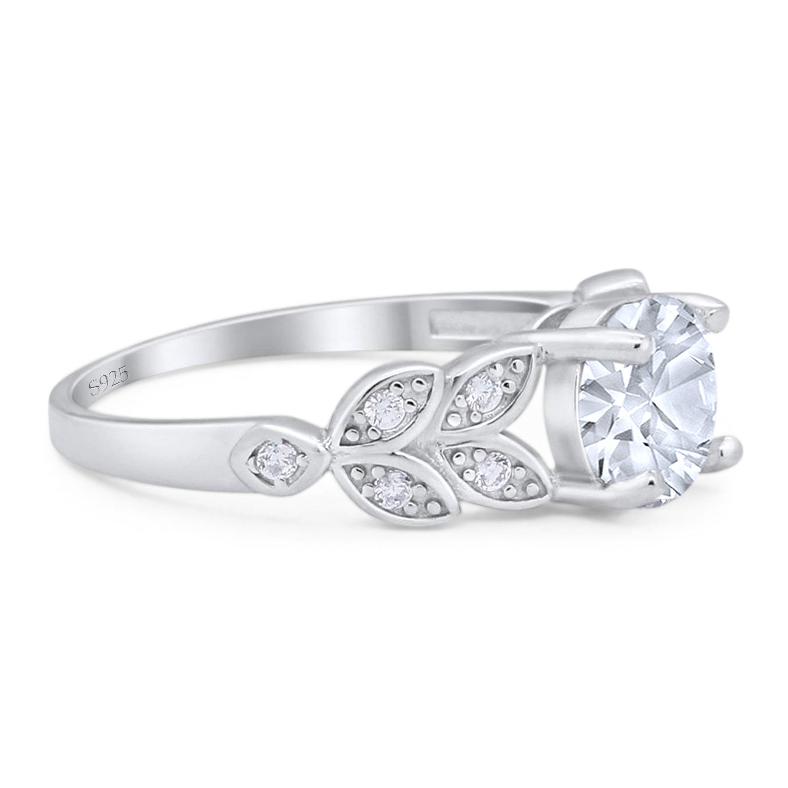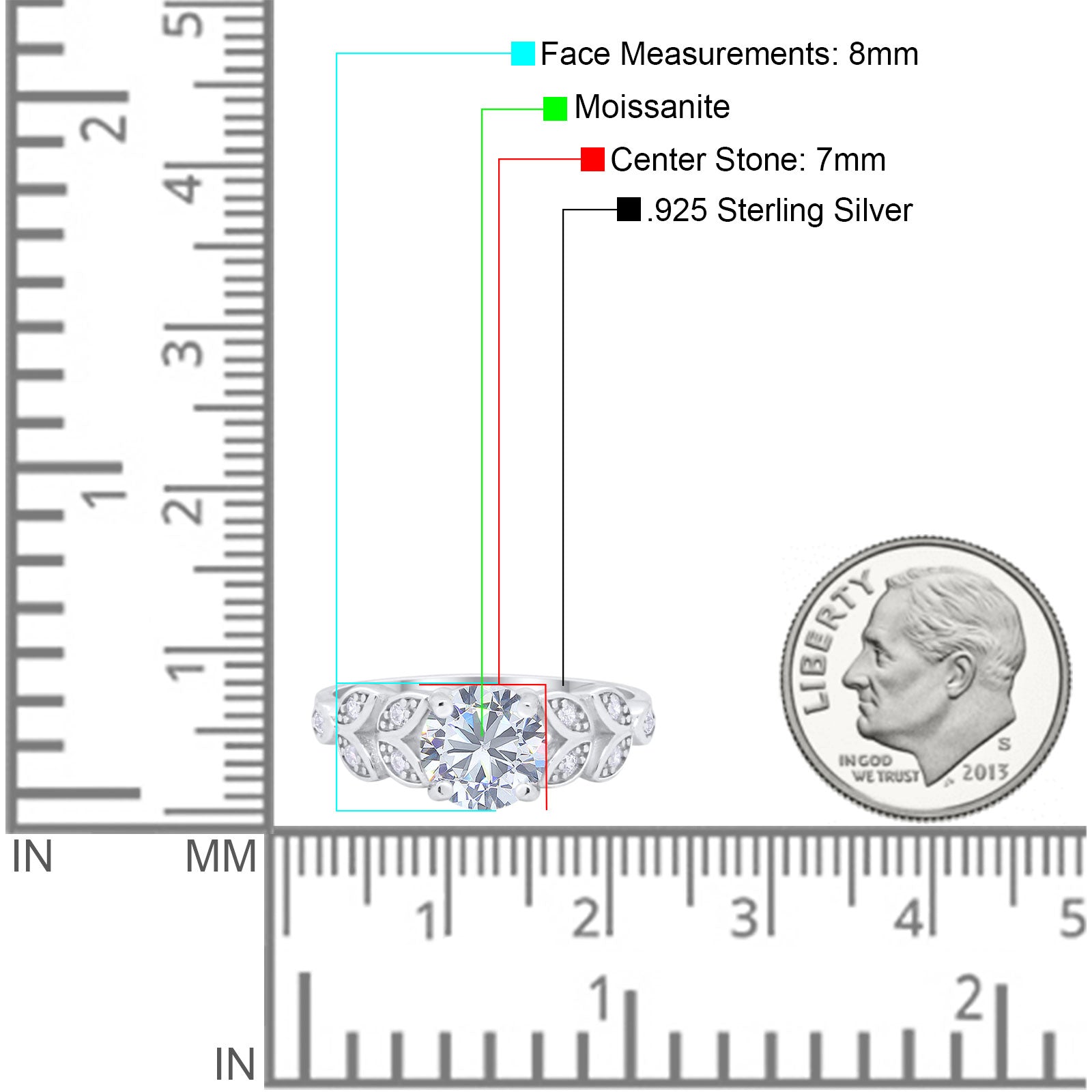 Floral Round Moissanite Leaf Design Ring 925 Sterling Silver