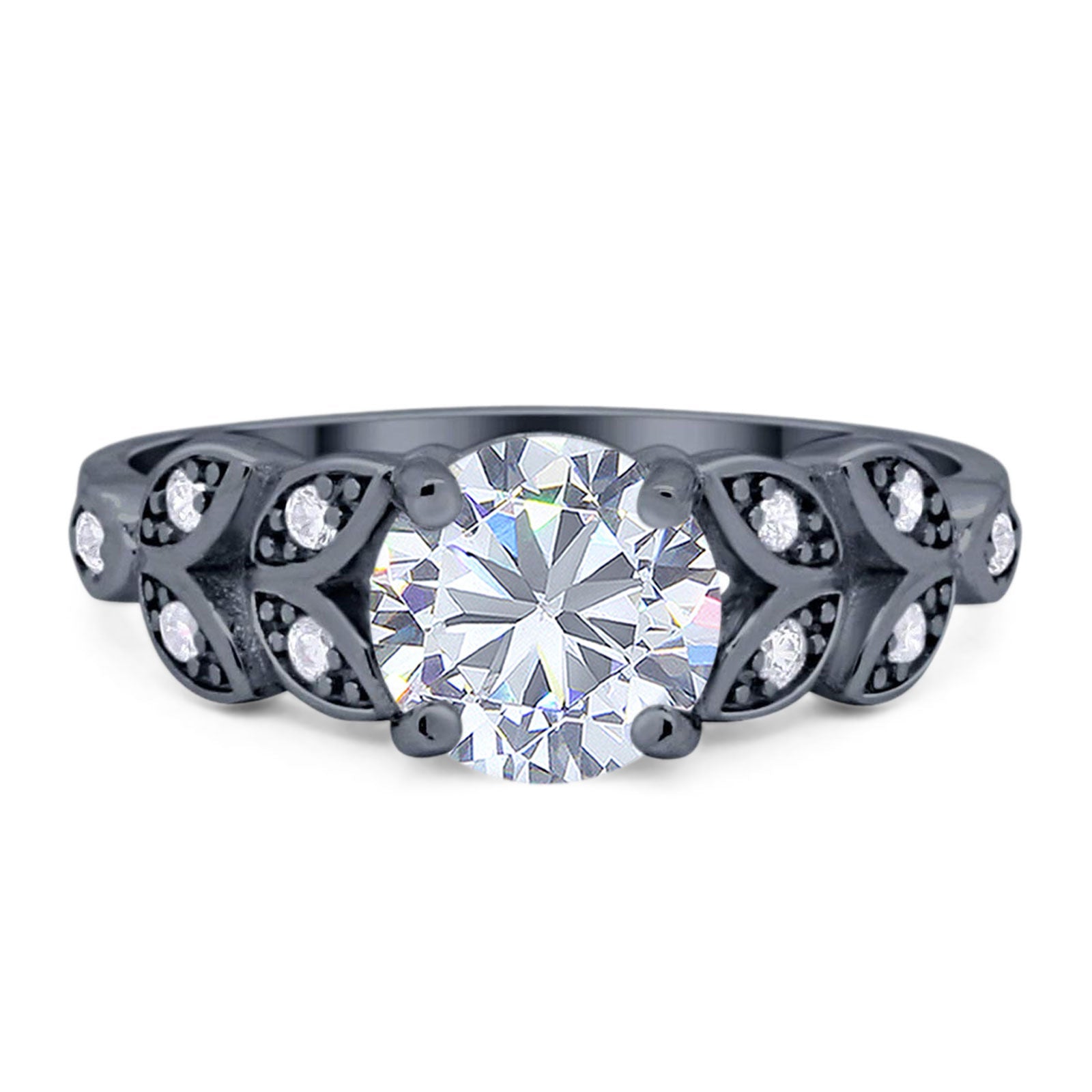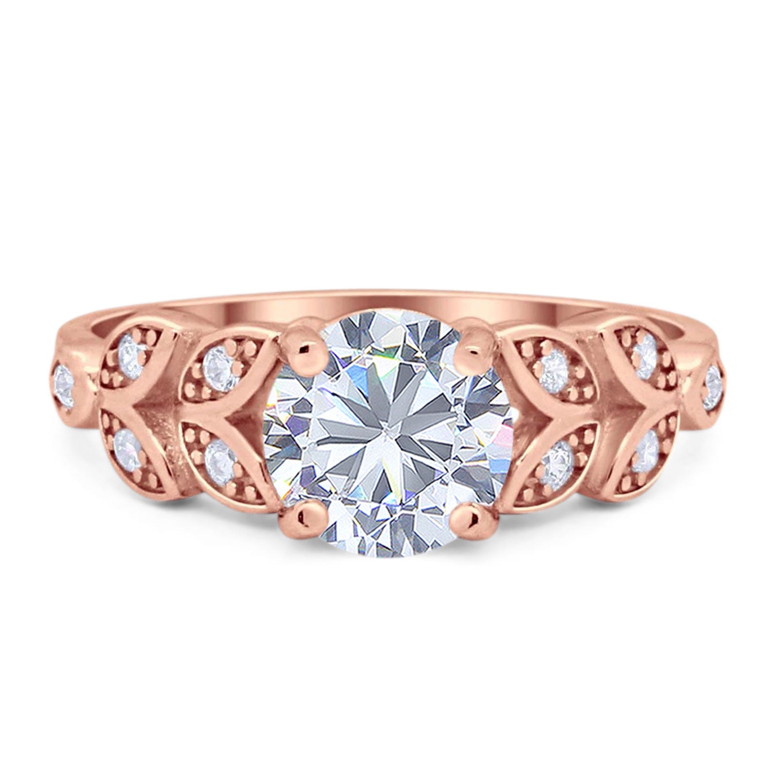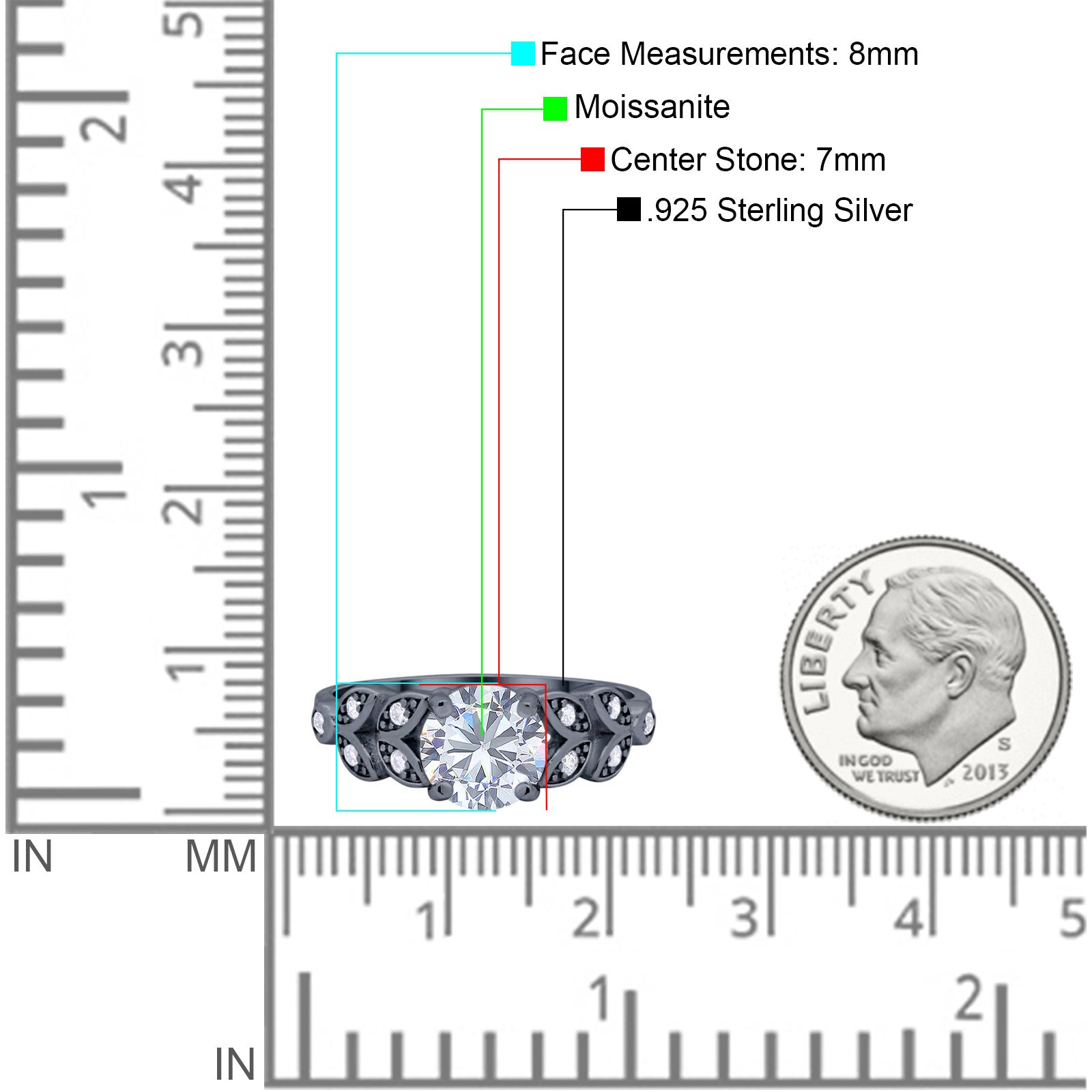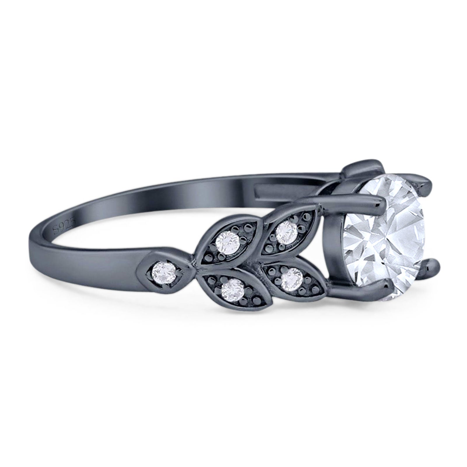 Floral Round Moissanite Leaf Design Ring 925 Sterling Silver