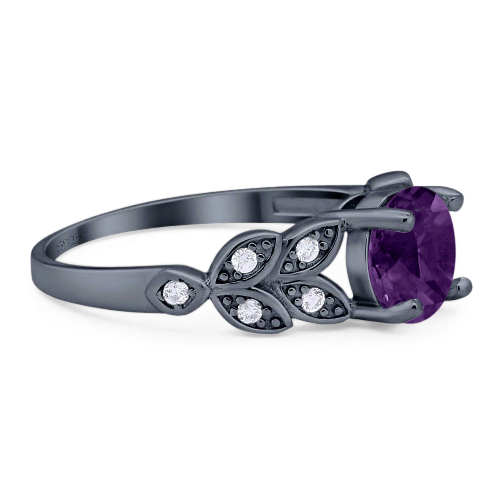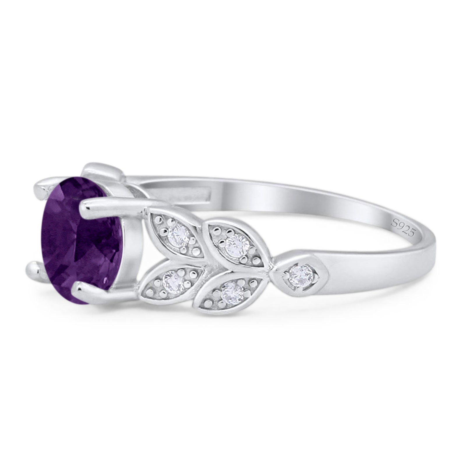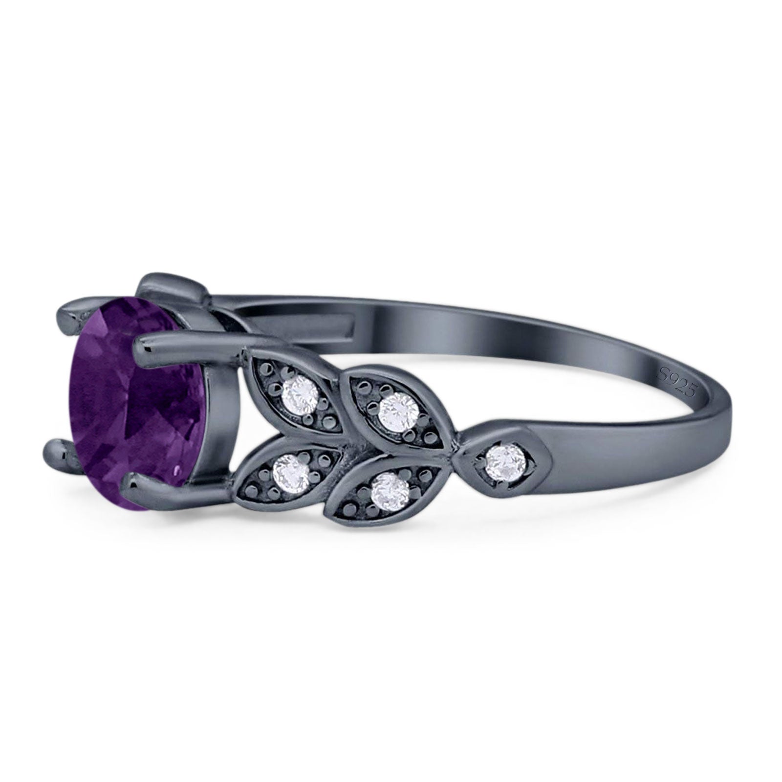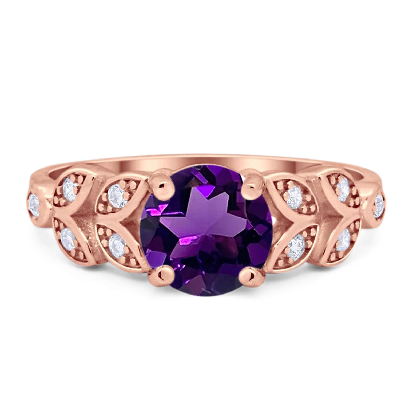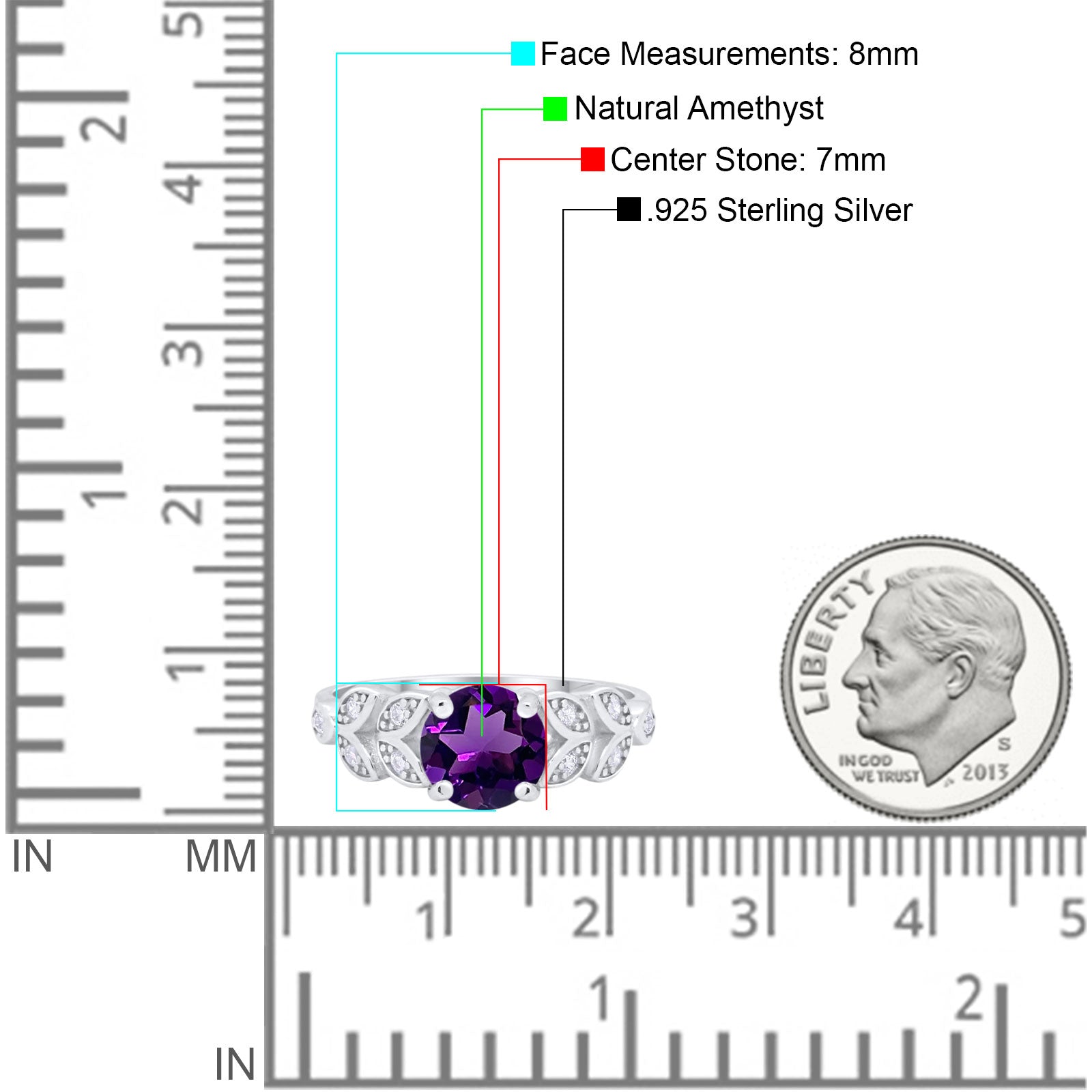 Floral Round Natural Amethyst Leaf Design Ring 925 Sterling Silver