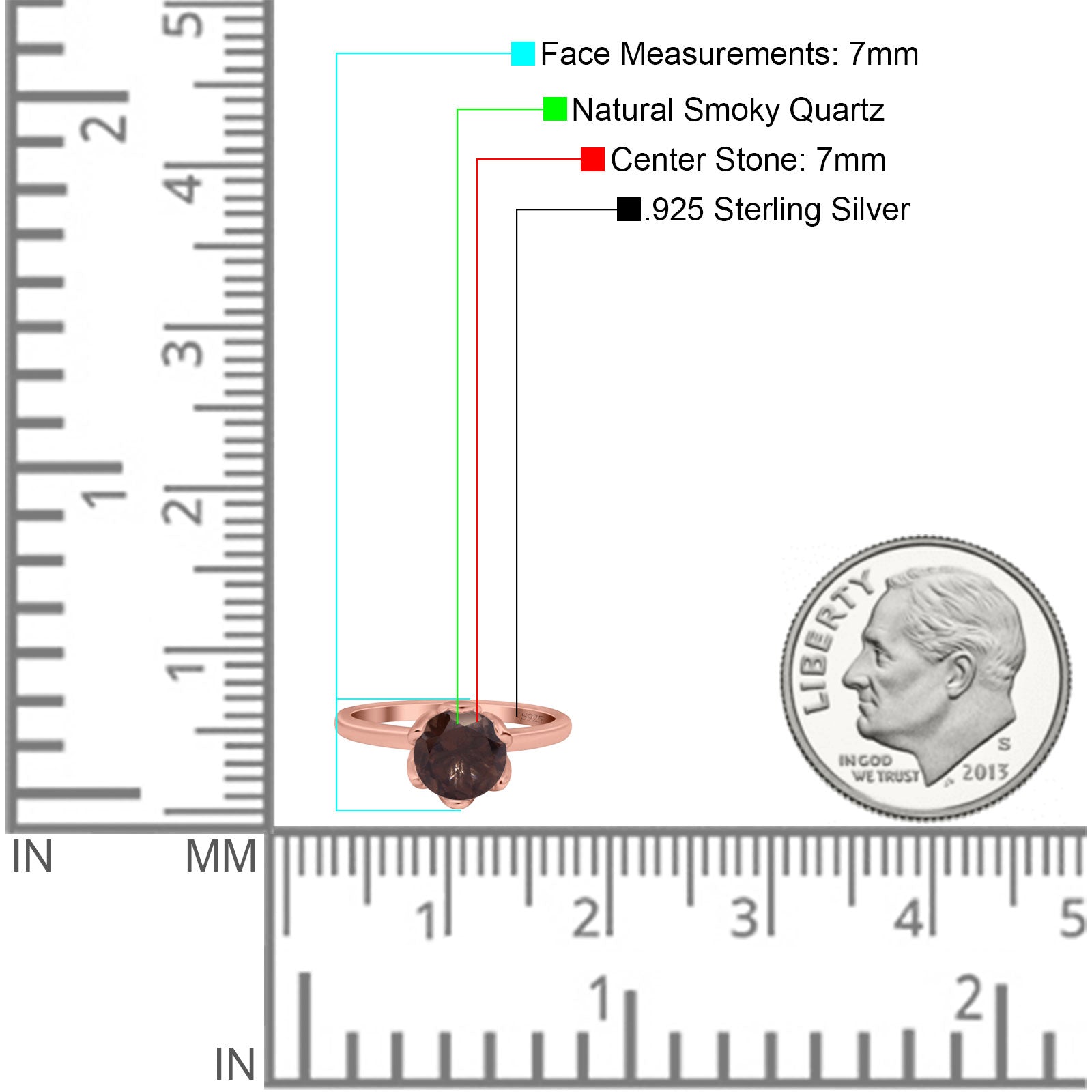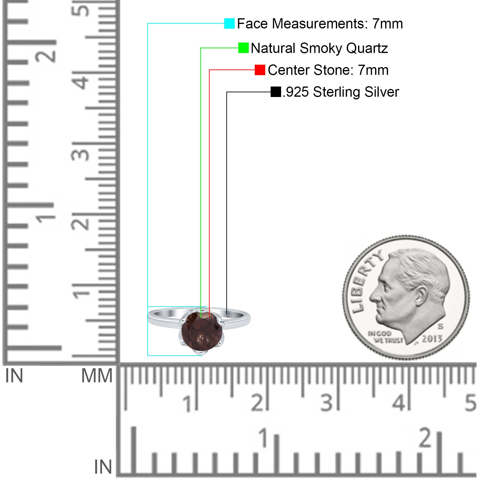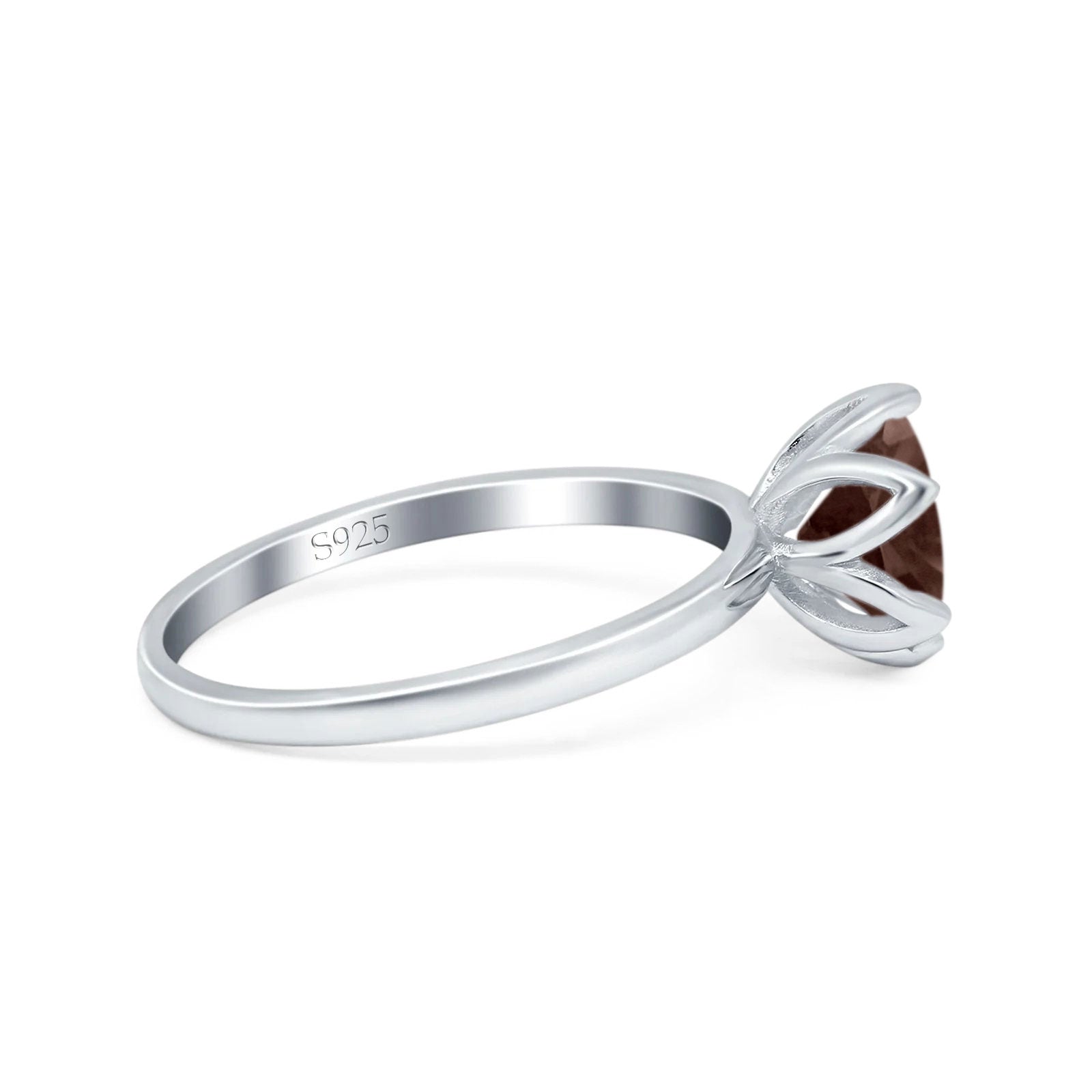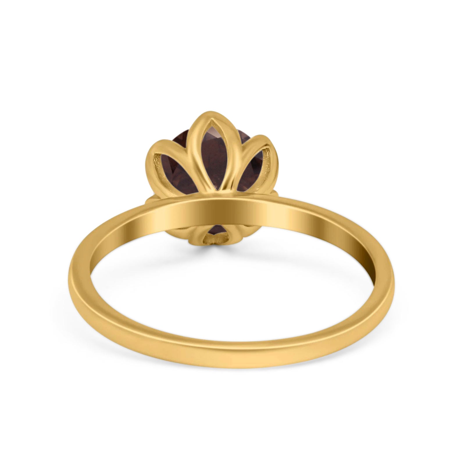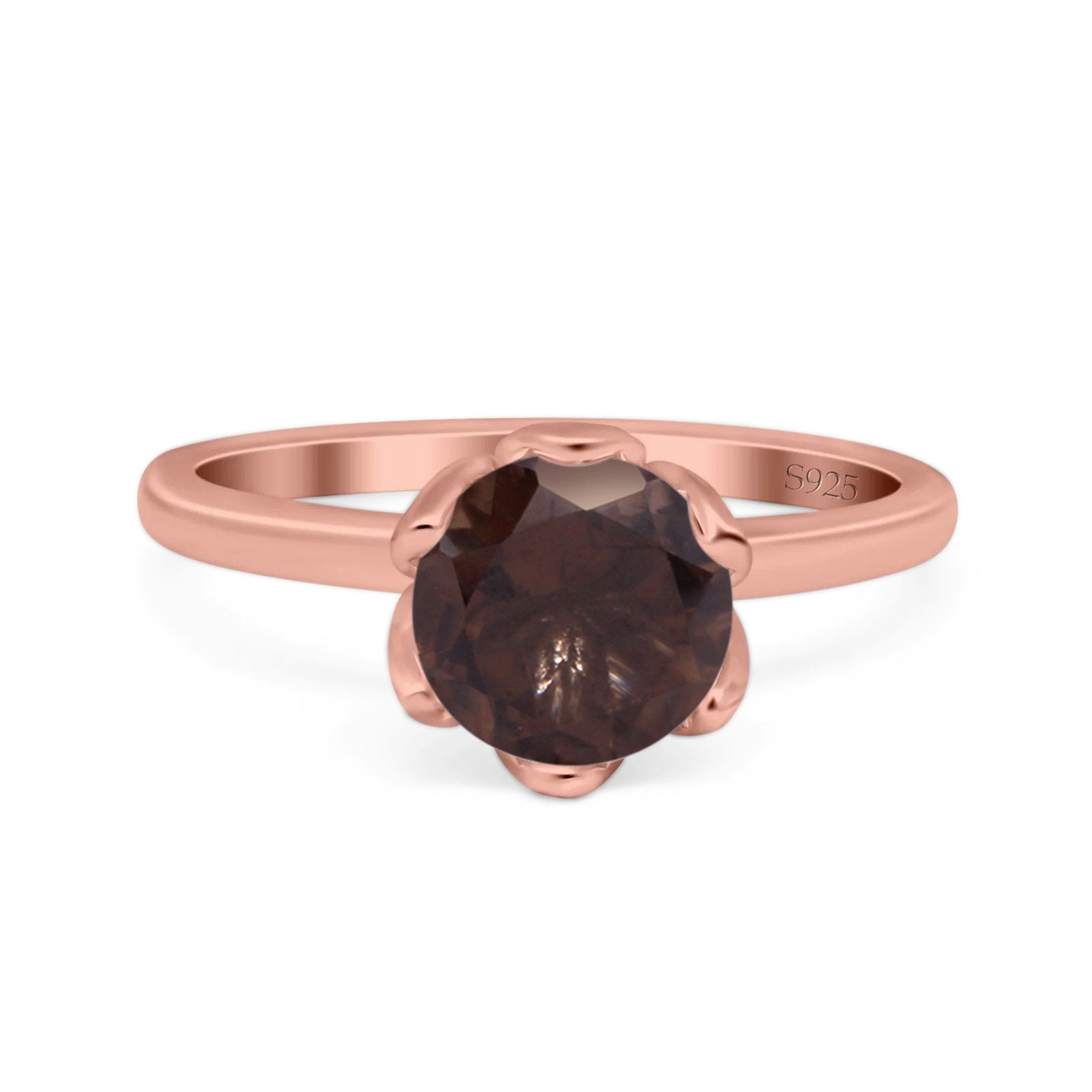 Floral Round Natural Chocolate Smoky Quartz Solitaire Ring 925 Sterling Silver