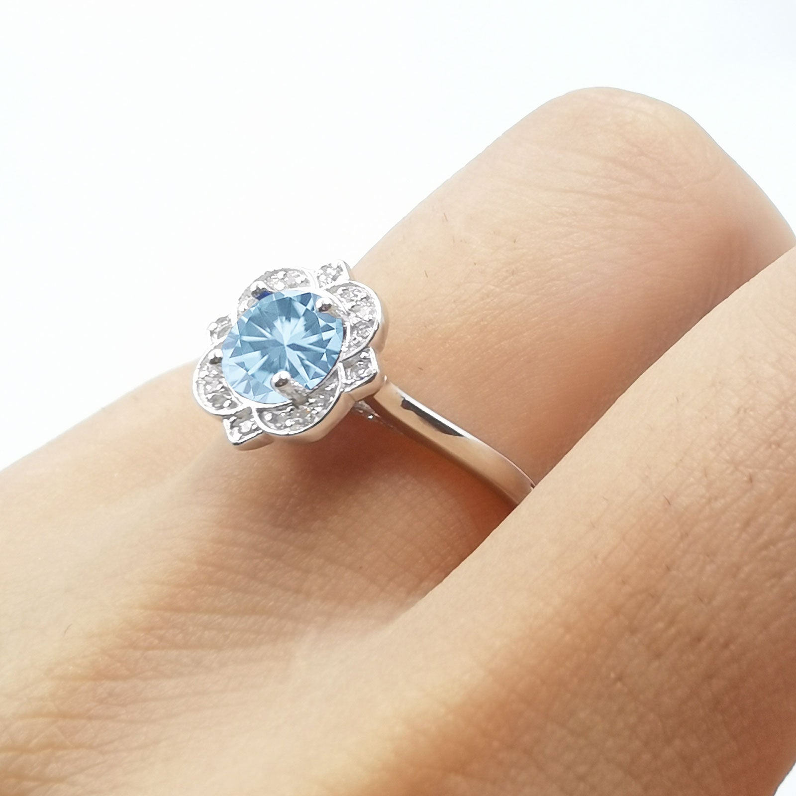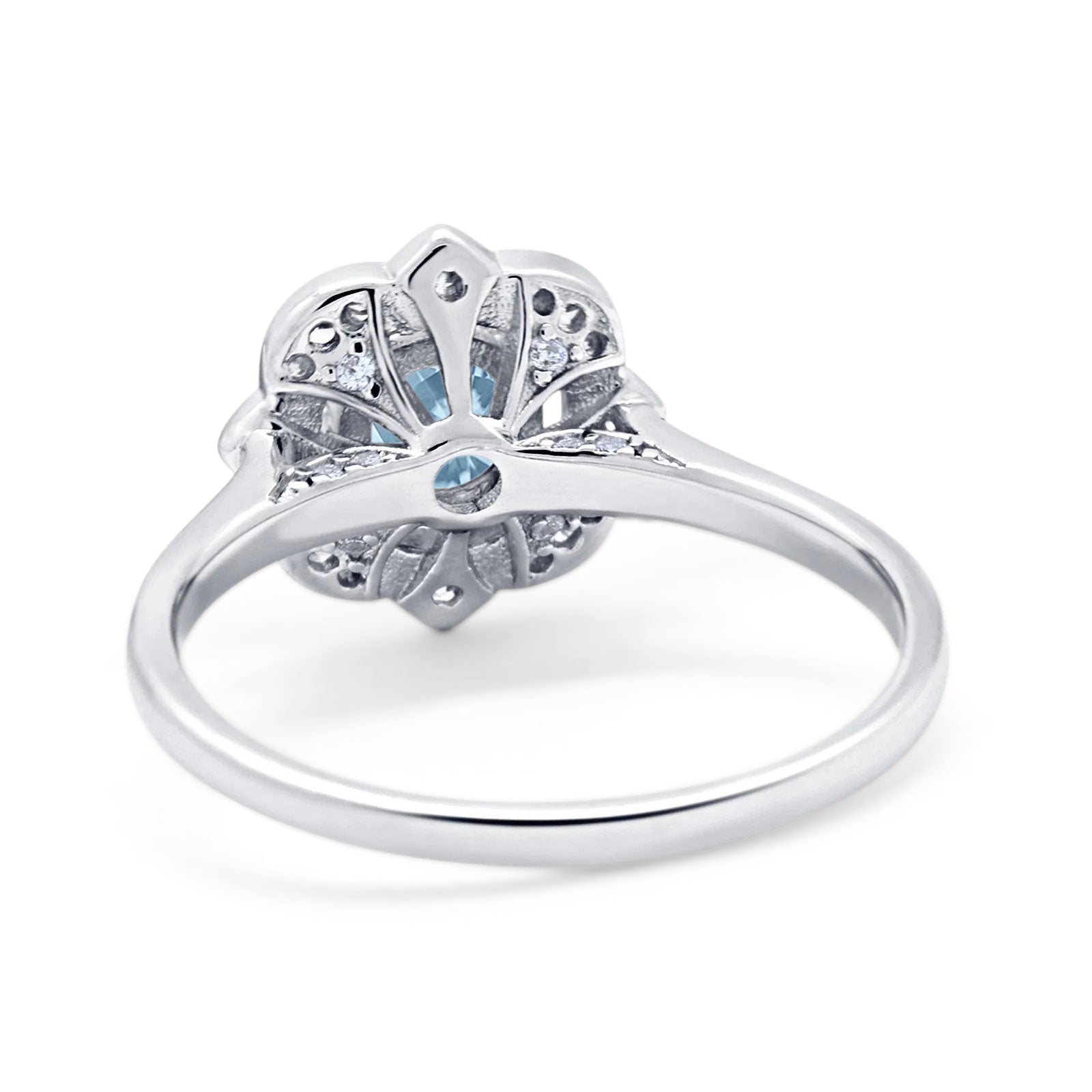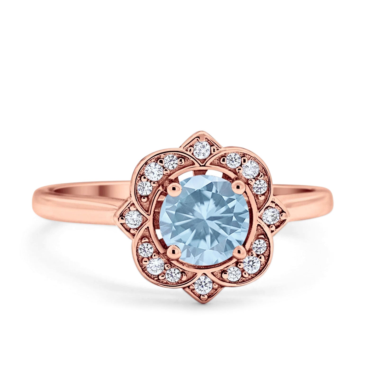 Floral Vintage Style Round Natural Aquamarine Ring 925 Sterling Silver