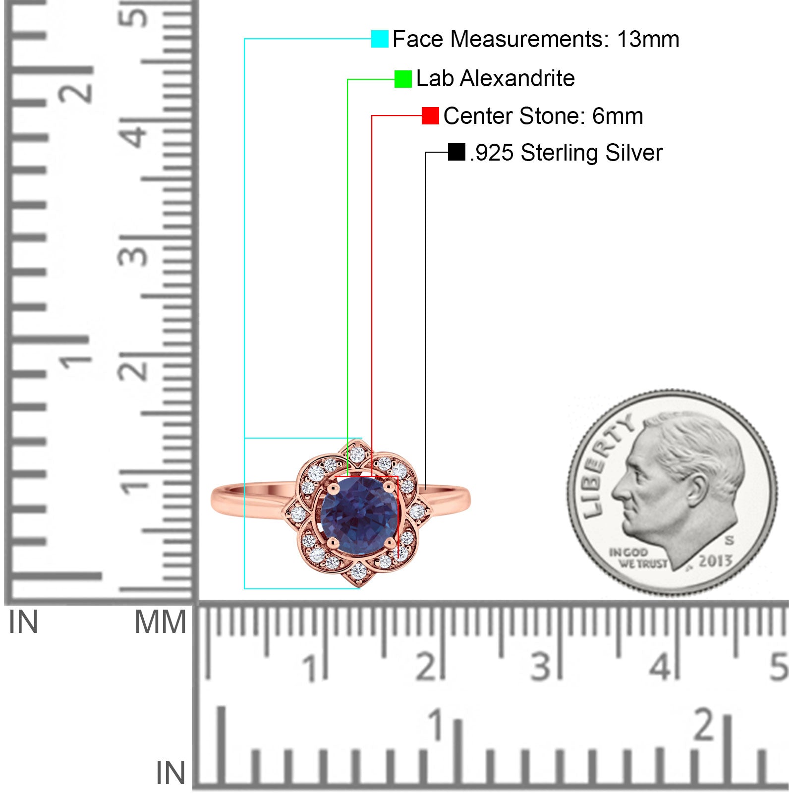 Floral Vintage Style Round Lab Alexandrite Ring 925 Sterling Silver