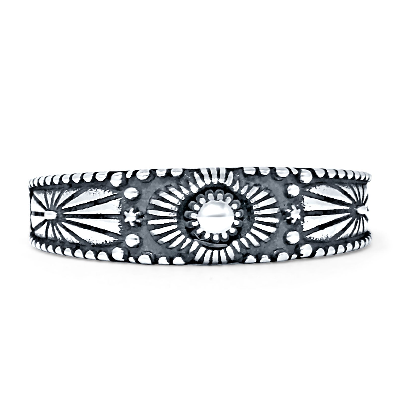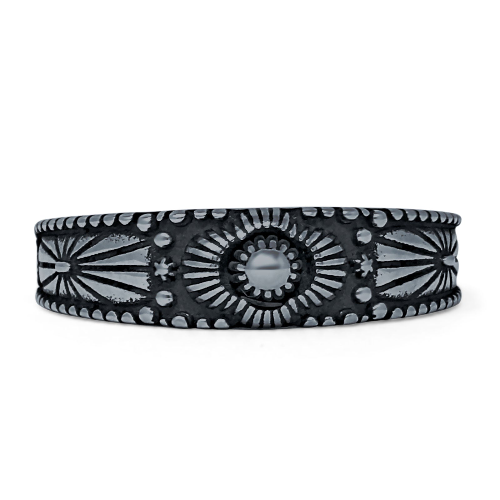 Design: Flower 5.5mm Oxidized Boho Ring Beaded Band.
