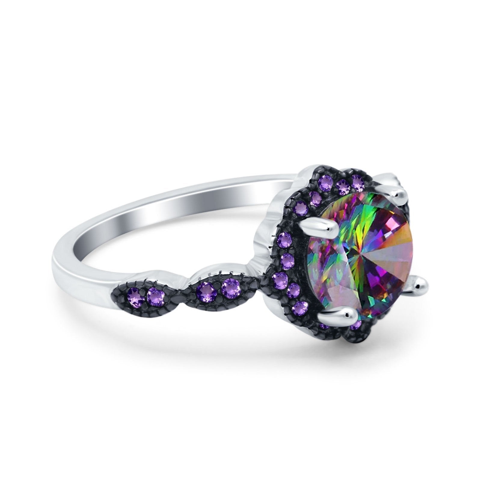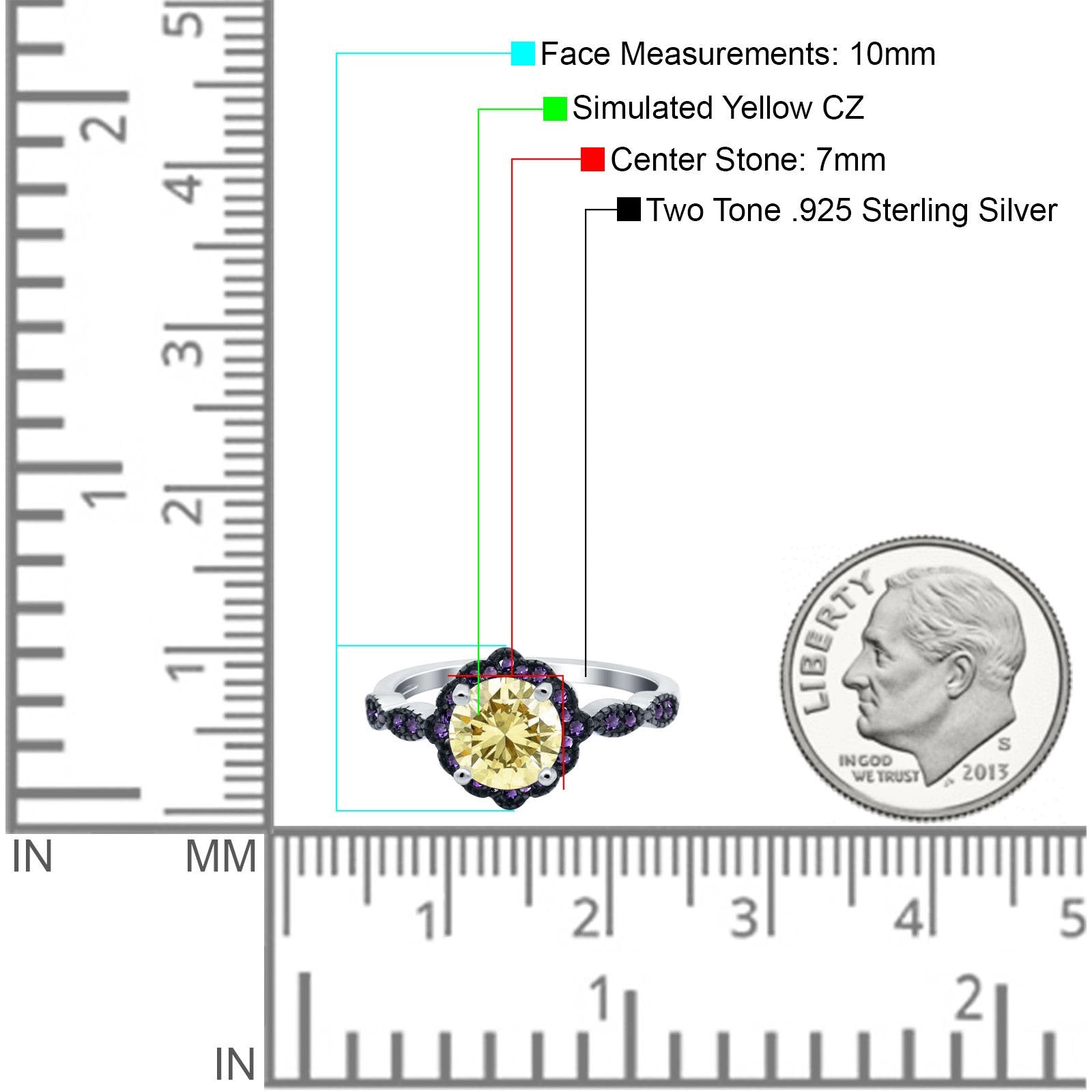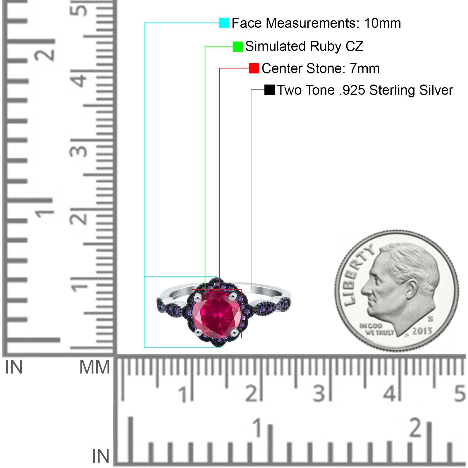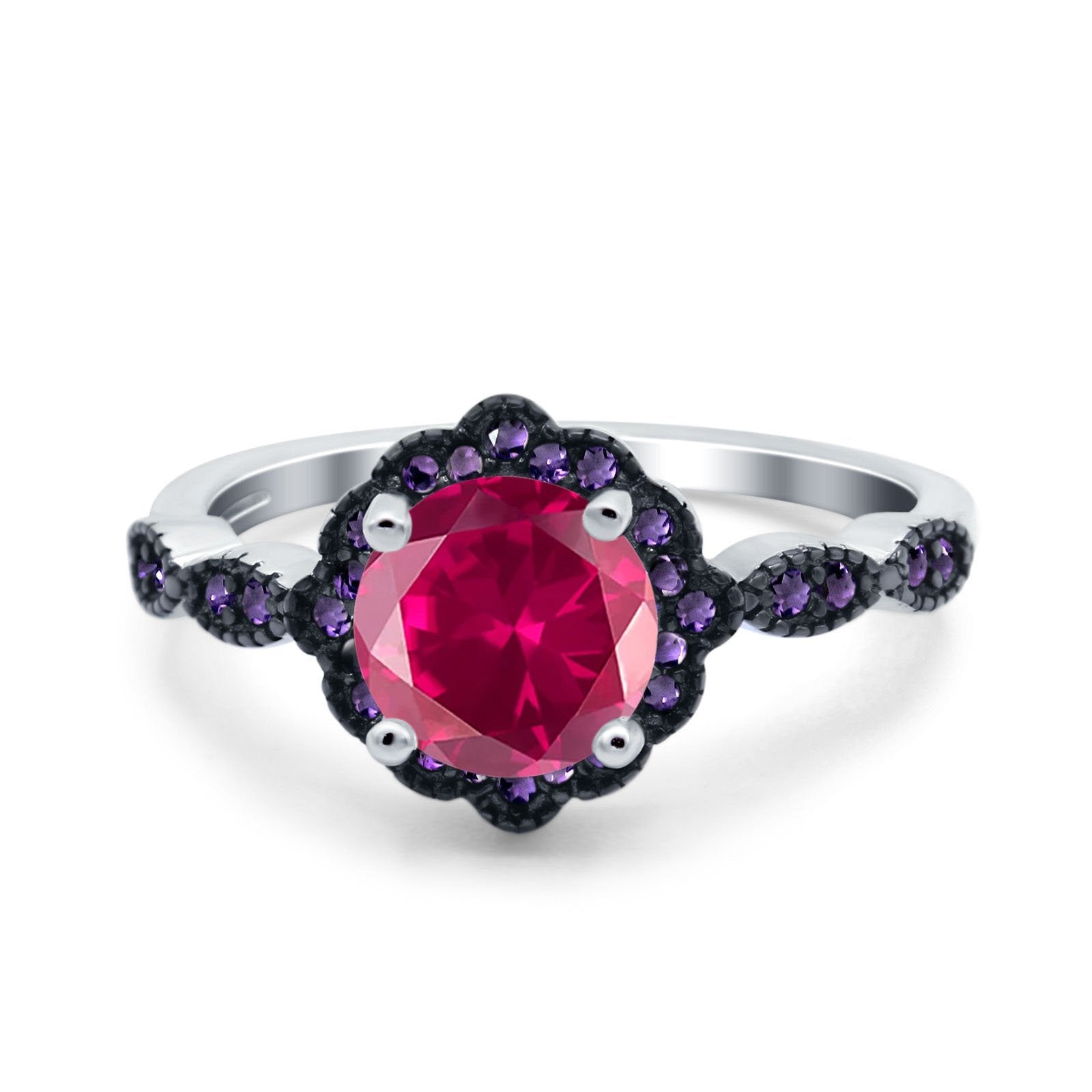 Flower Art Deco Engagement Ring Round Amethyst Simulated Cubic Zirconia 925 Sterling Silver