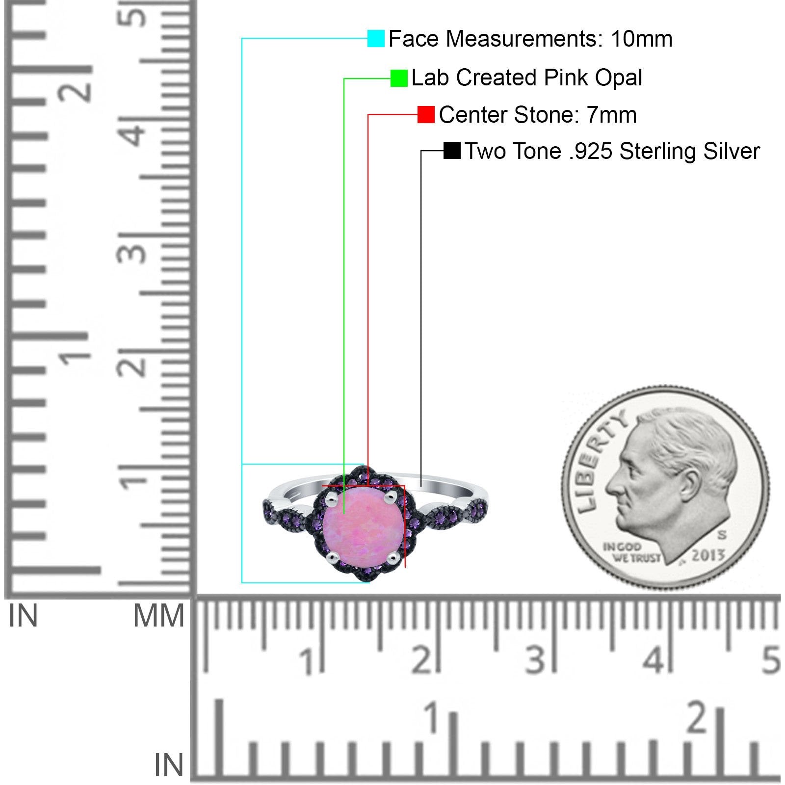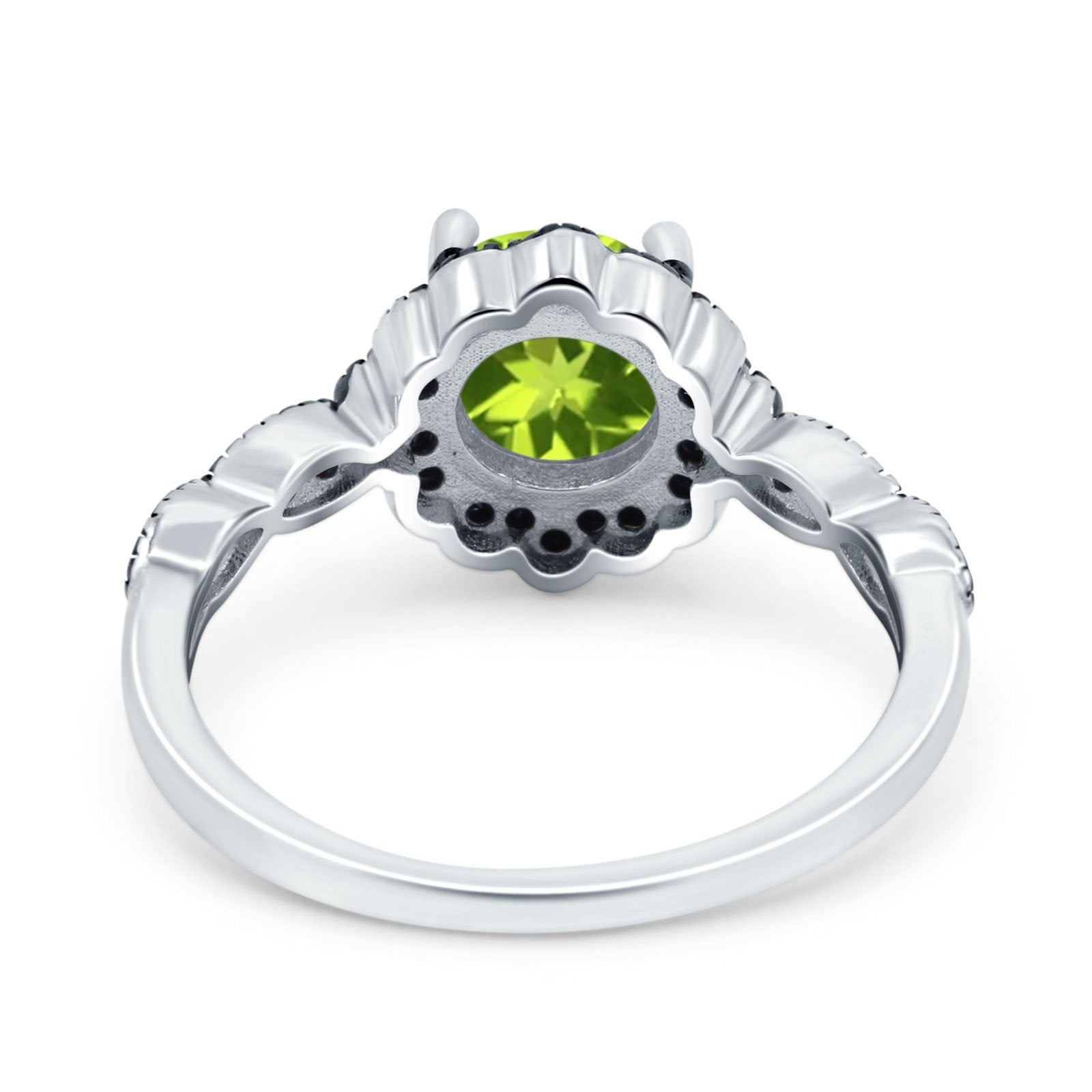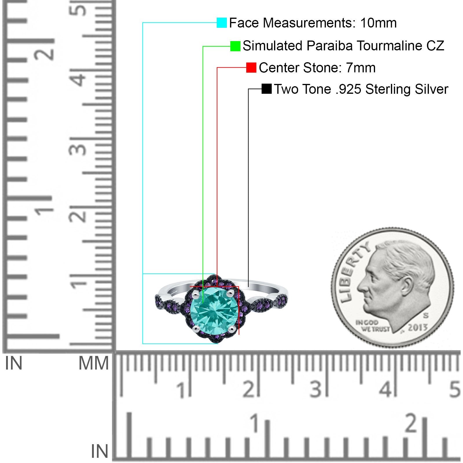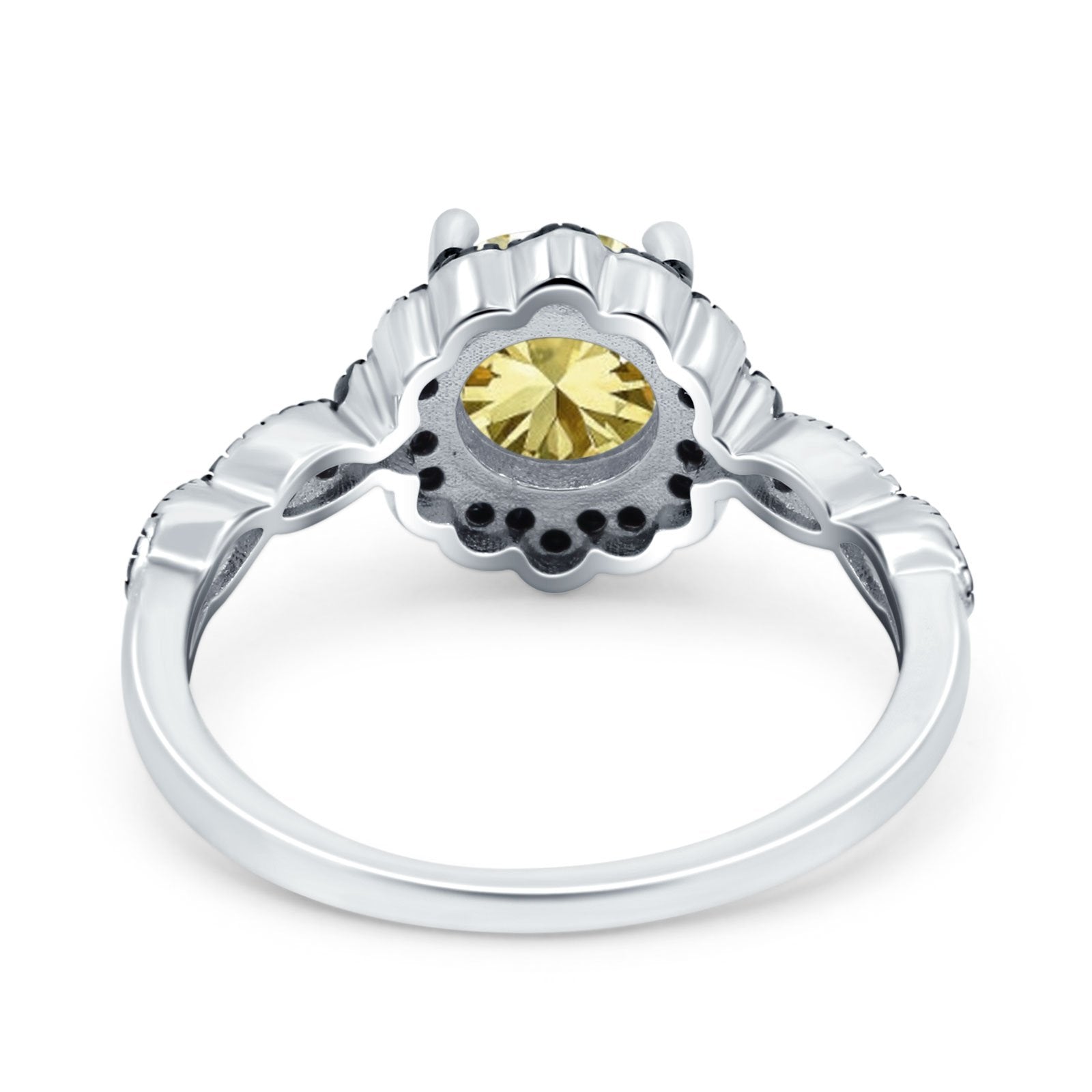 Flower Art Deco Engagement Ring Round Amethyst Simulated Cubic Zirconia 925 Sterling Silver