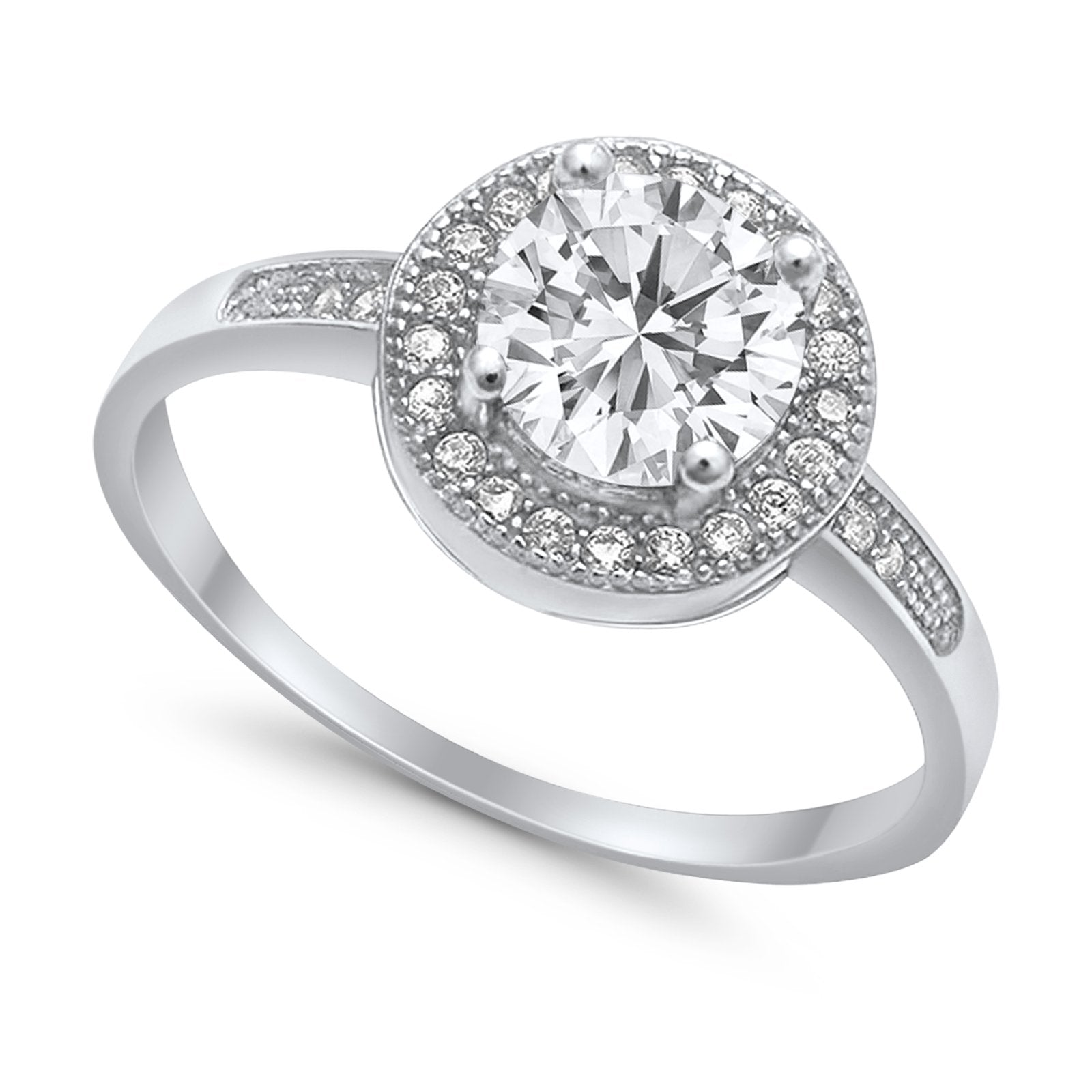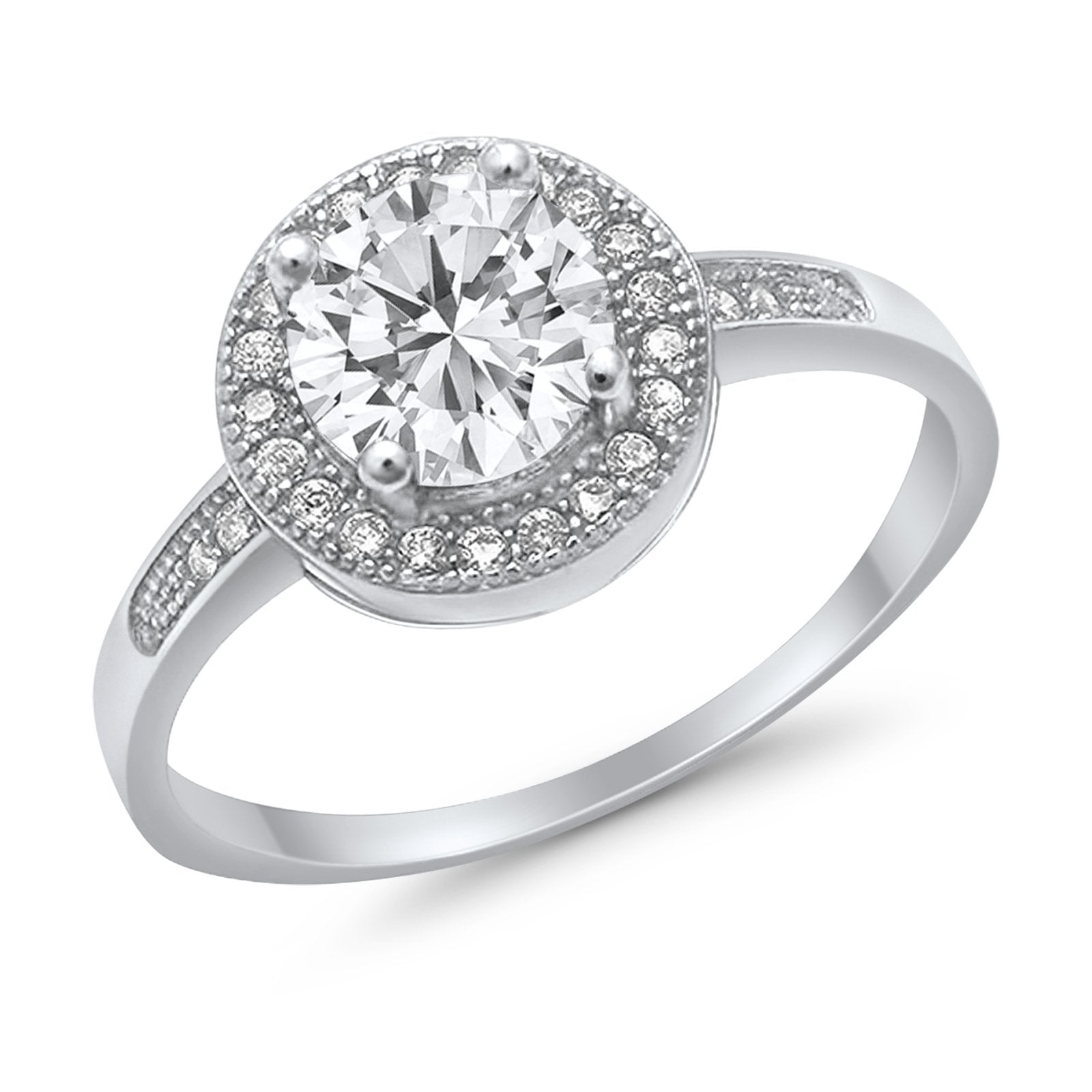 Halo Art Deco Engagement Ring Simulated Cubic Zirconia 925 Sterling Silver