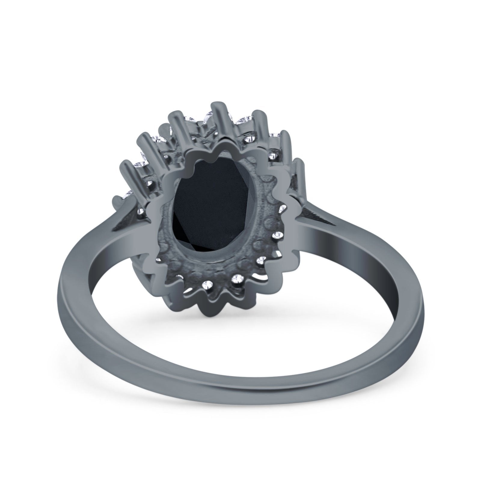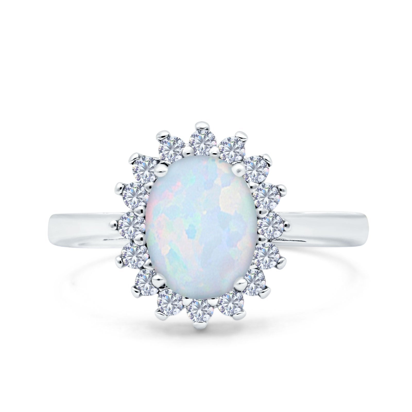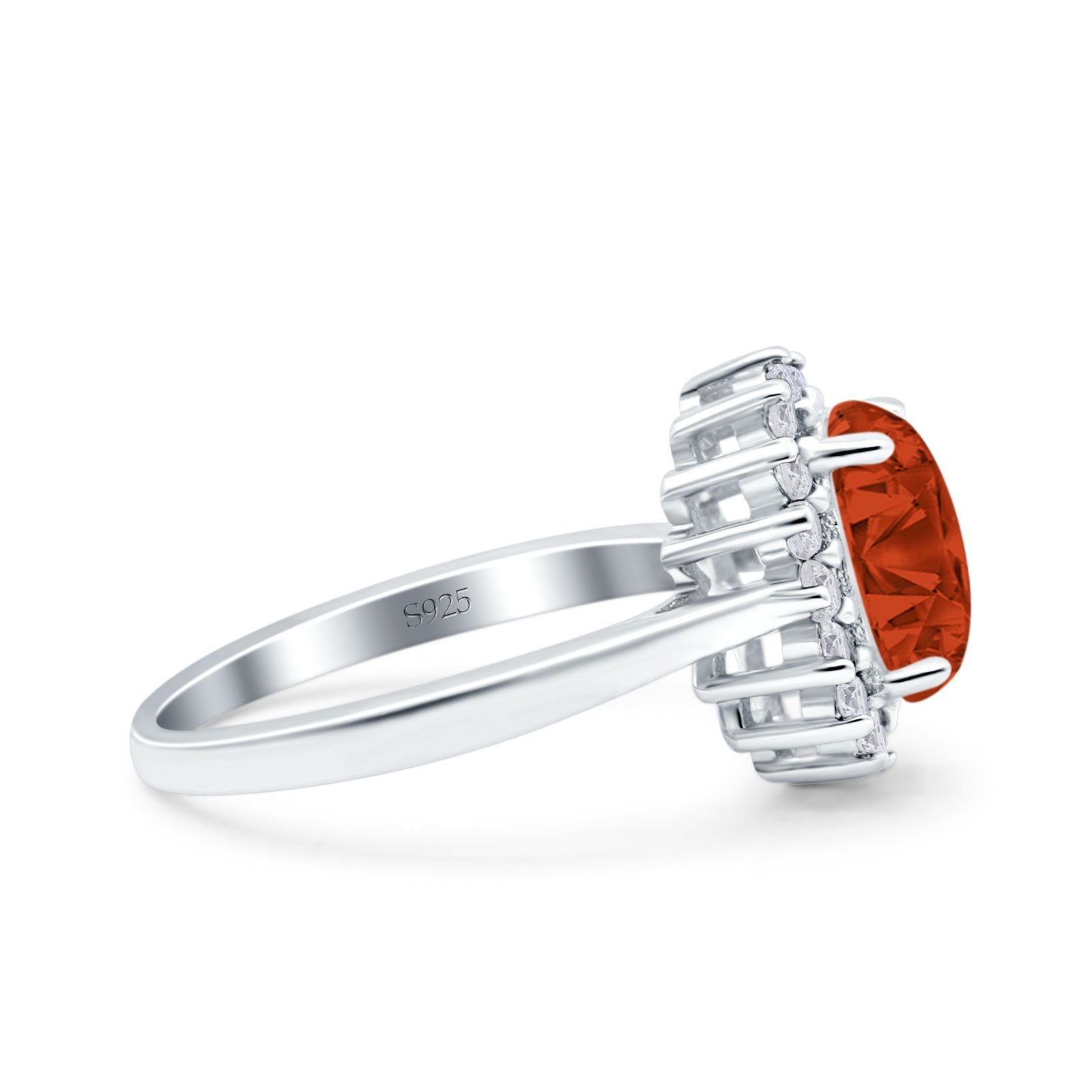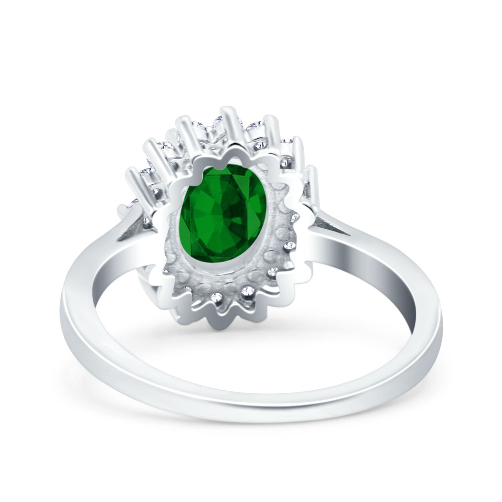 Halo Art Deco Oval Wedding Engagement Bridal Ring Round Simulated Cubic Zirconia 925 Sterling Silver